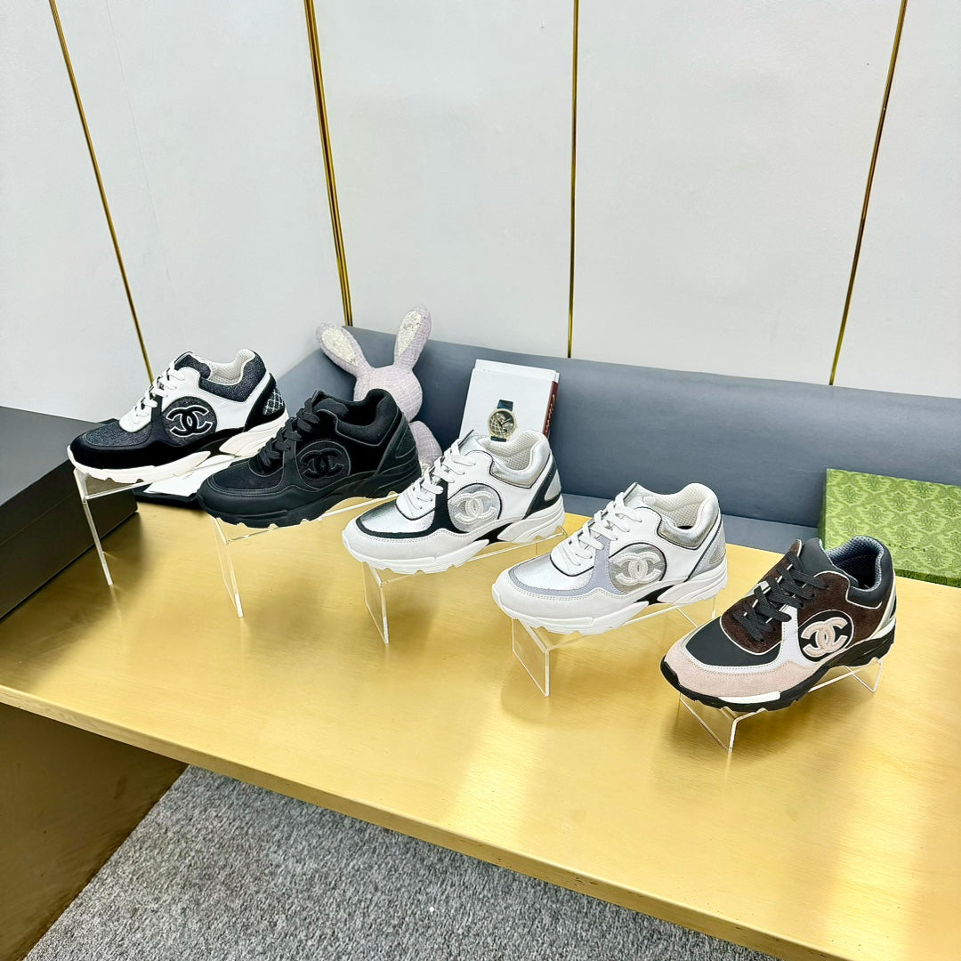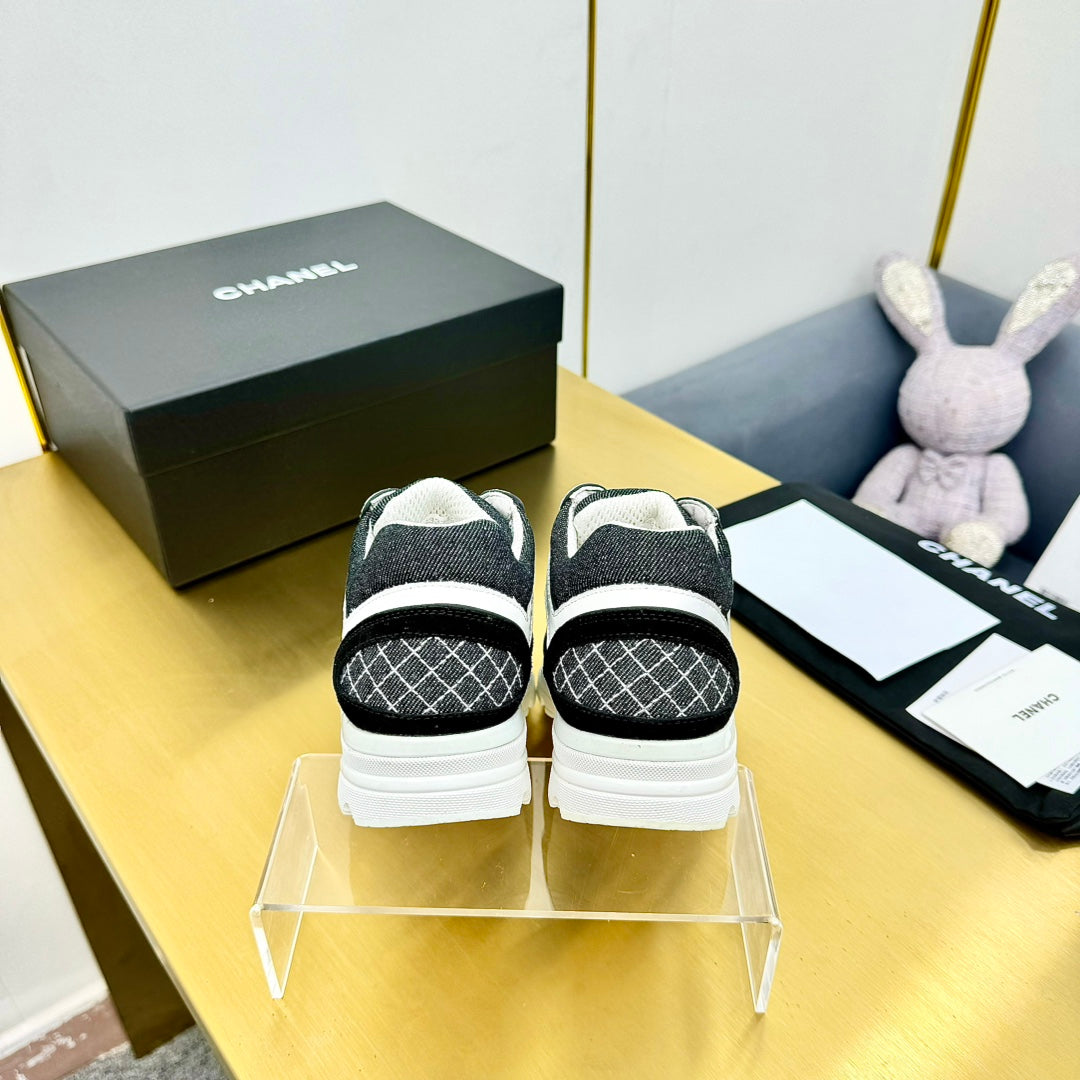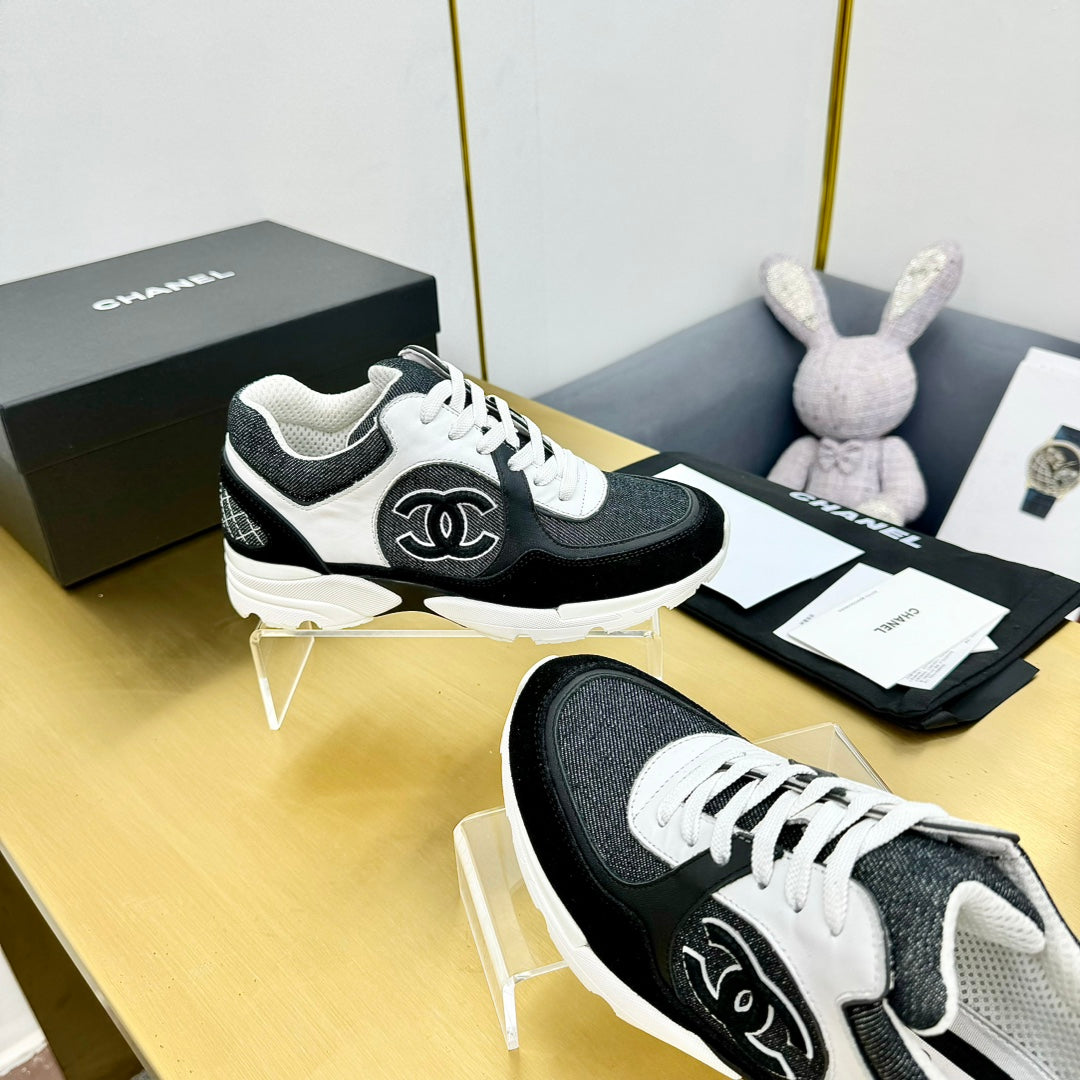 cc womens sneaker in white black wool tweed and black suede calfskin 137606