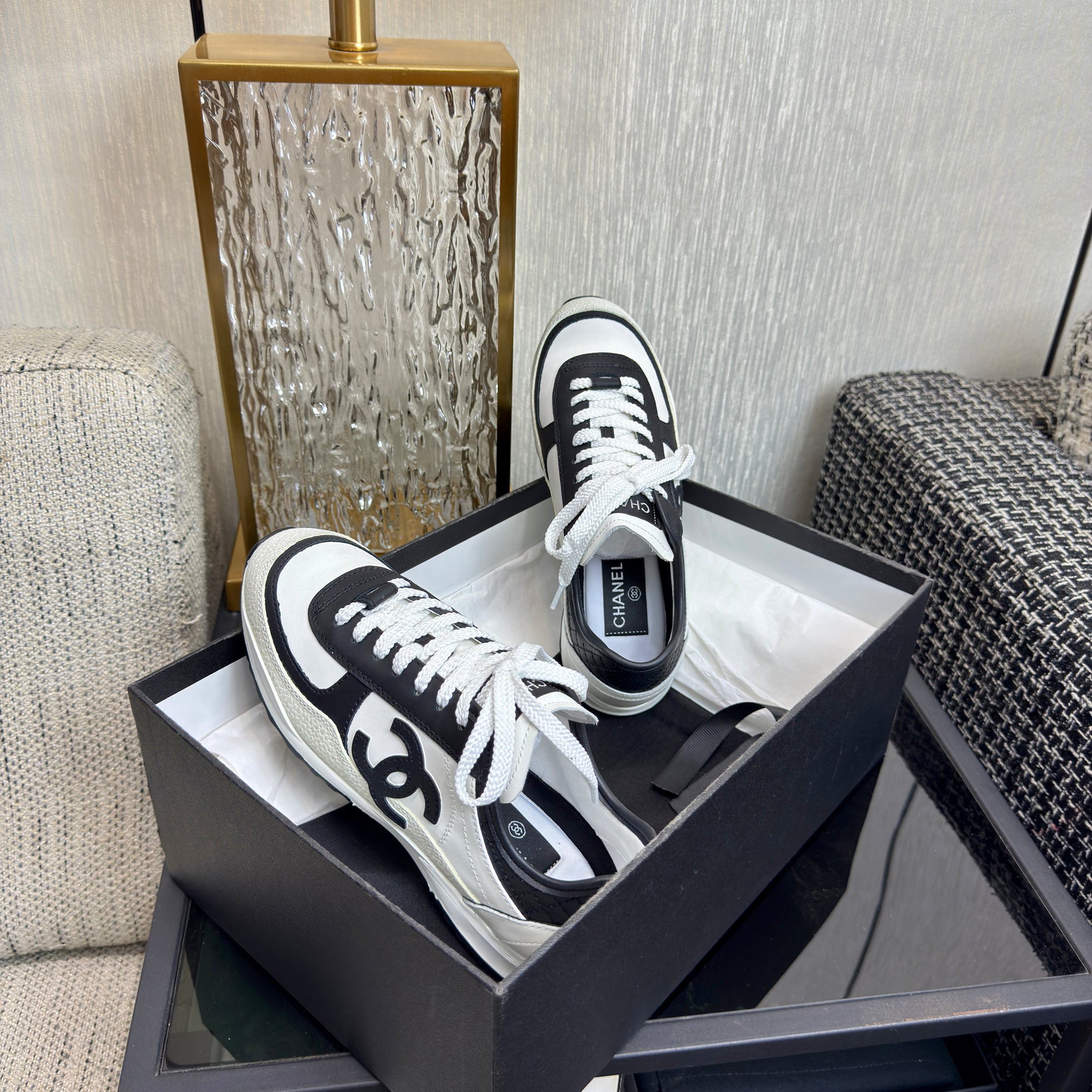 Chanel 2025 Sneaker Black and White Cowhite & Suede 507456