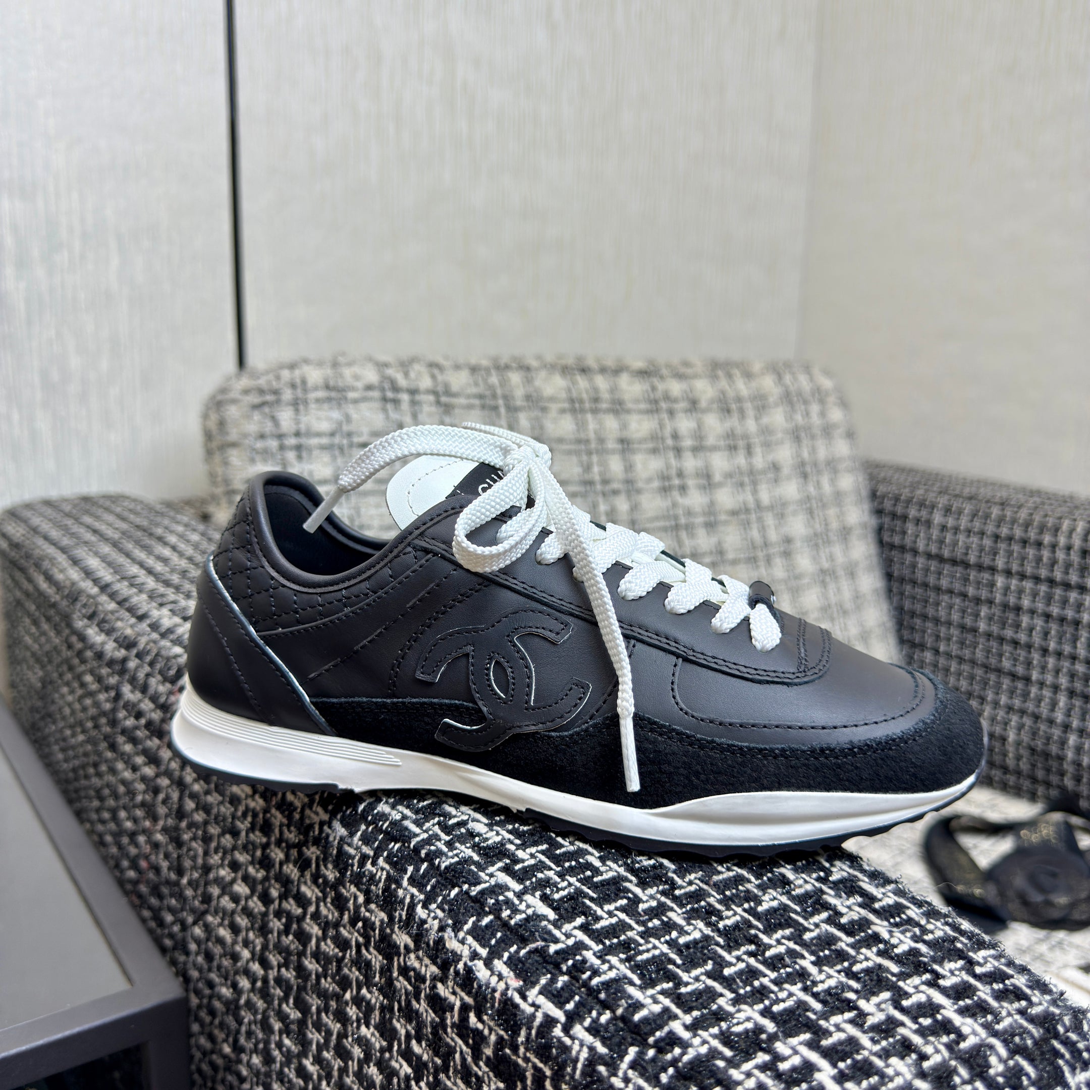 Chanel 2025 Sneaker Black Cowhite & Suede 507457
