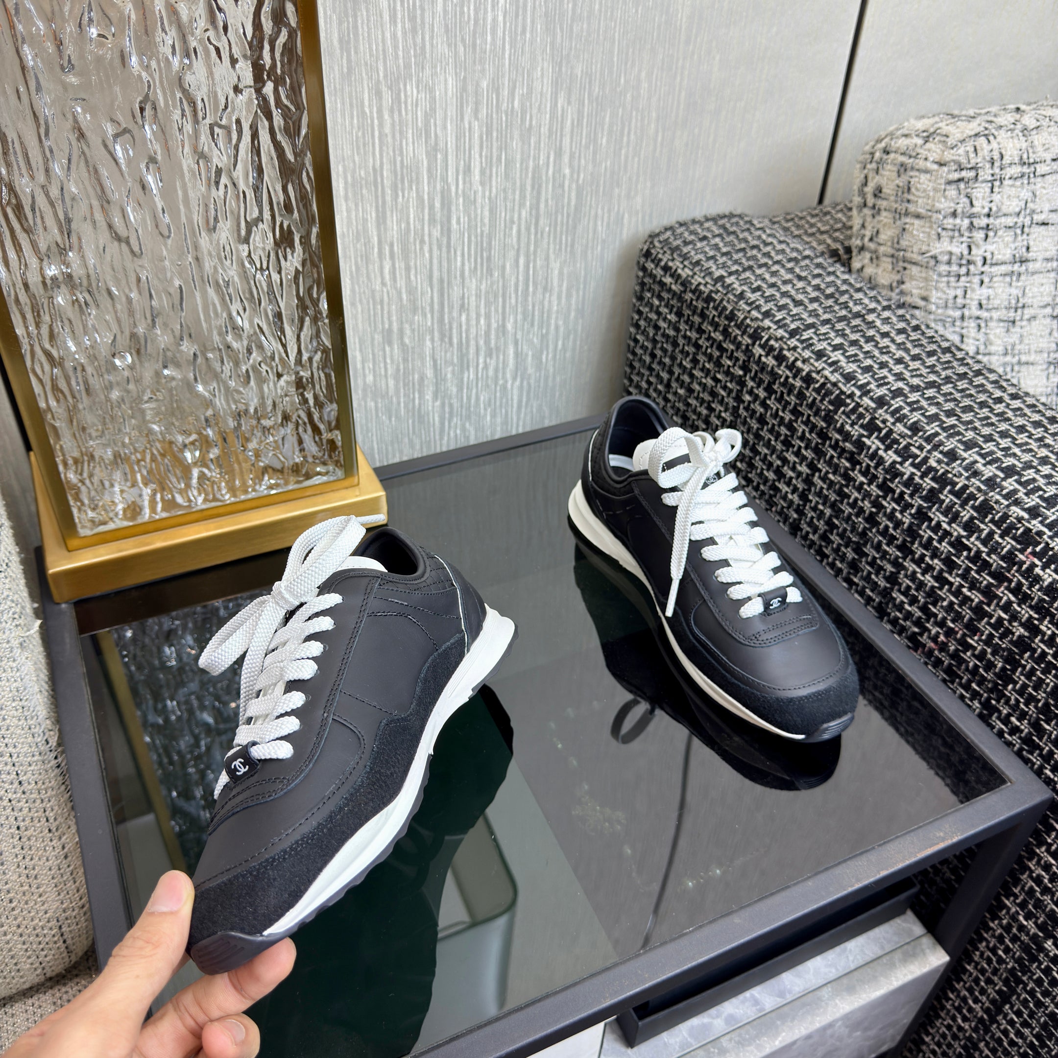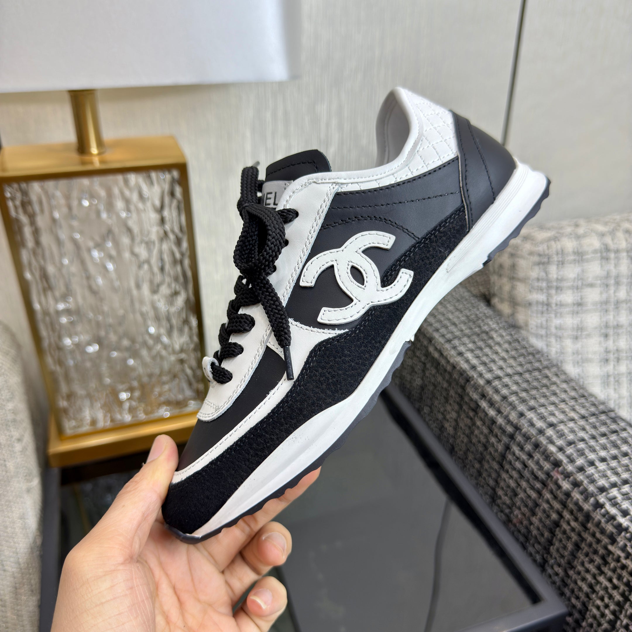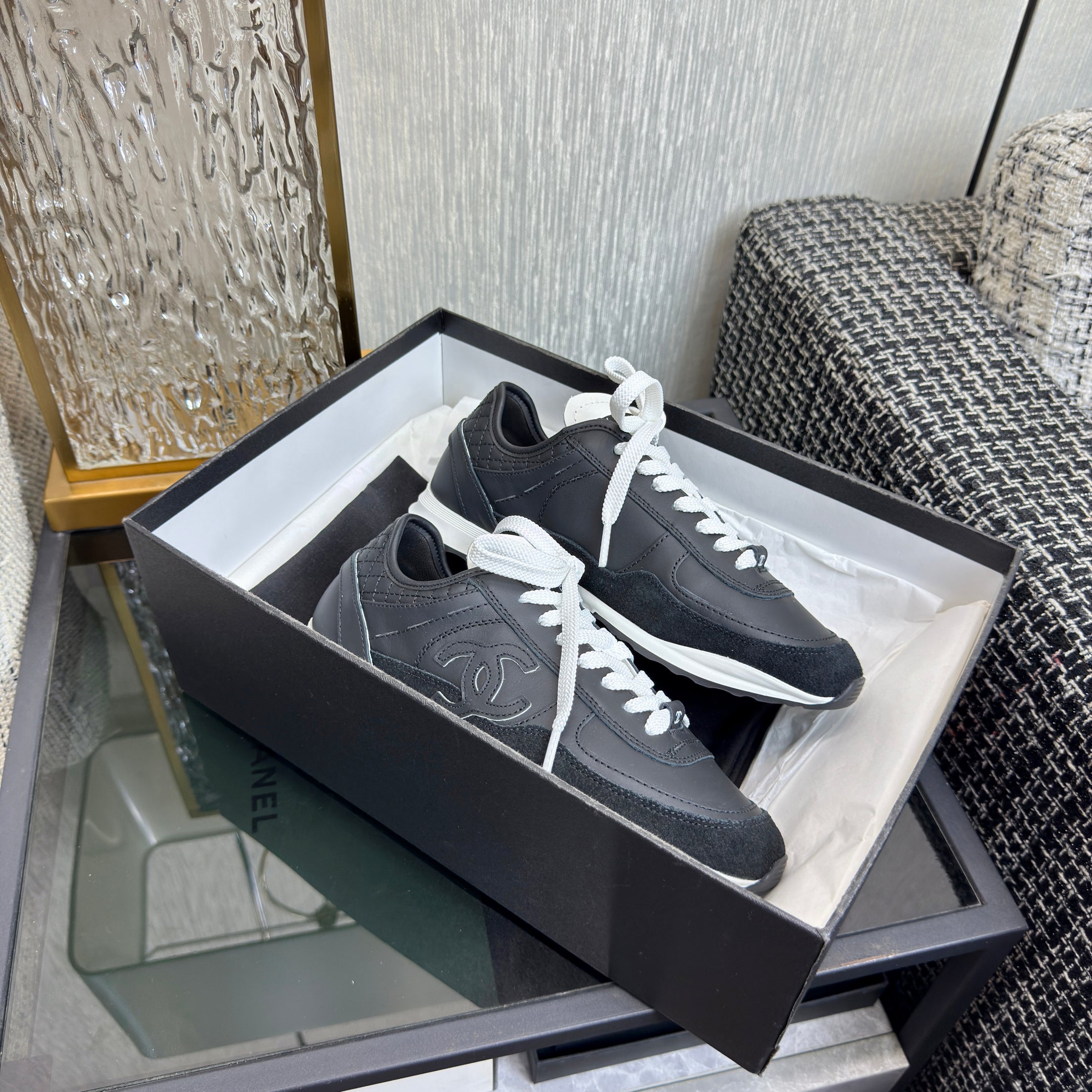 CC Métiers d’art Trainers Black Sliver Laminated & Suede Calfskin