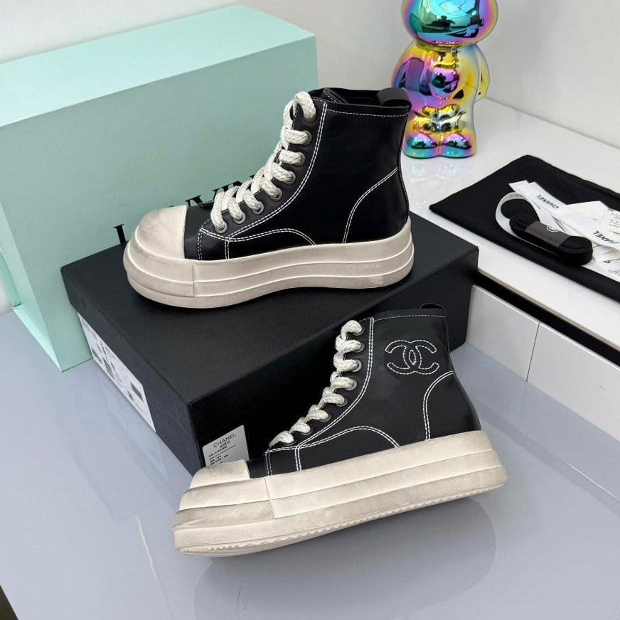 Chanel 2025 High-Top Sneakers Black White Cowhide 469786