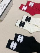 • Classic letter logo double-needle knitted pure cotton mid-calf socks.