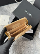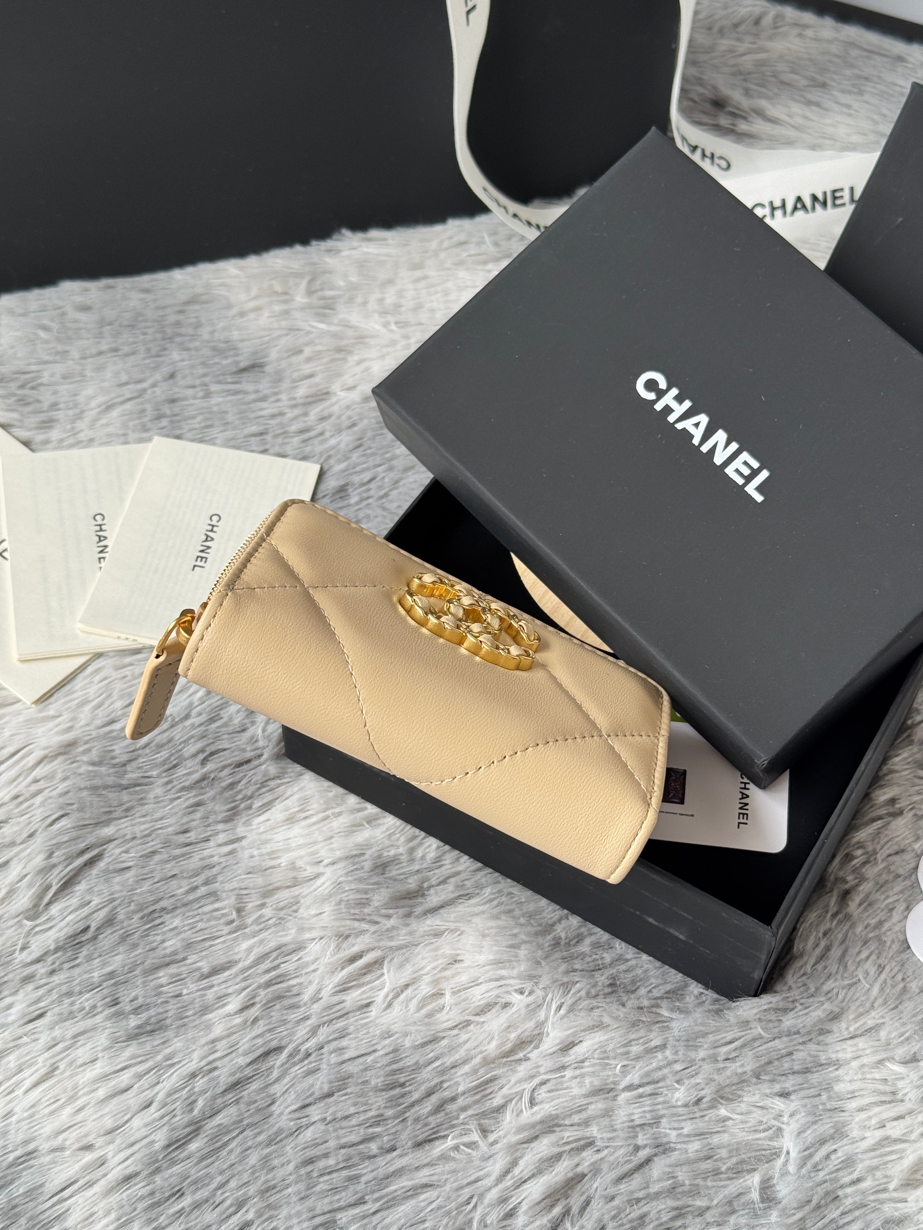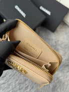 CC 19 Quilted Zipper Coin Purse Beige Gold-Tone Sheepskin 242798