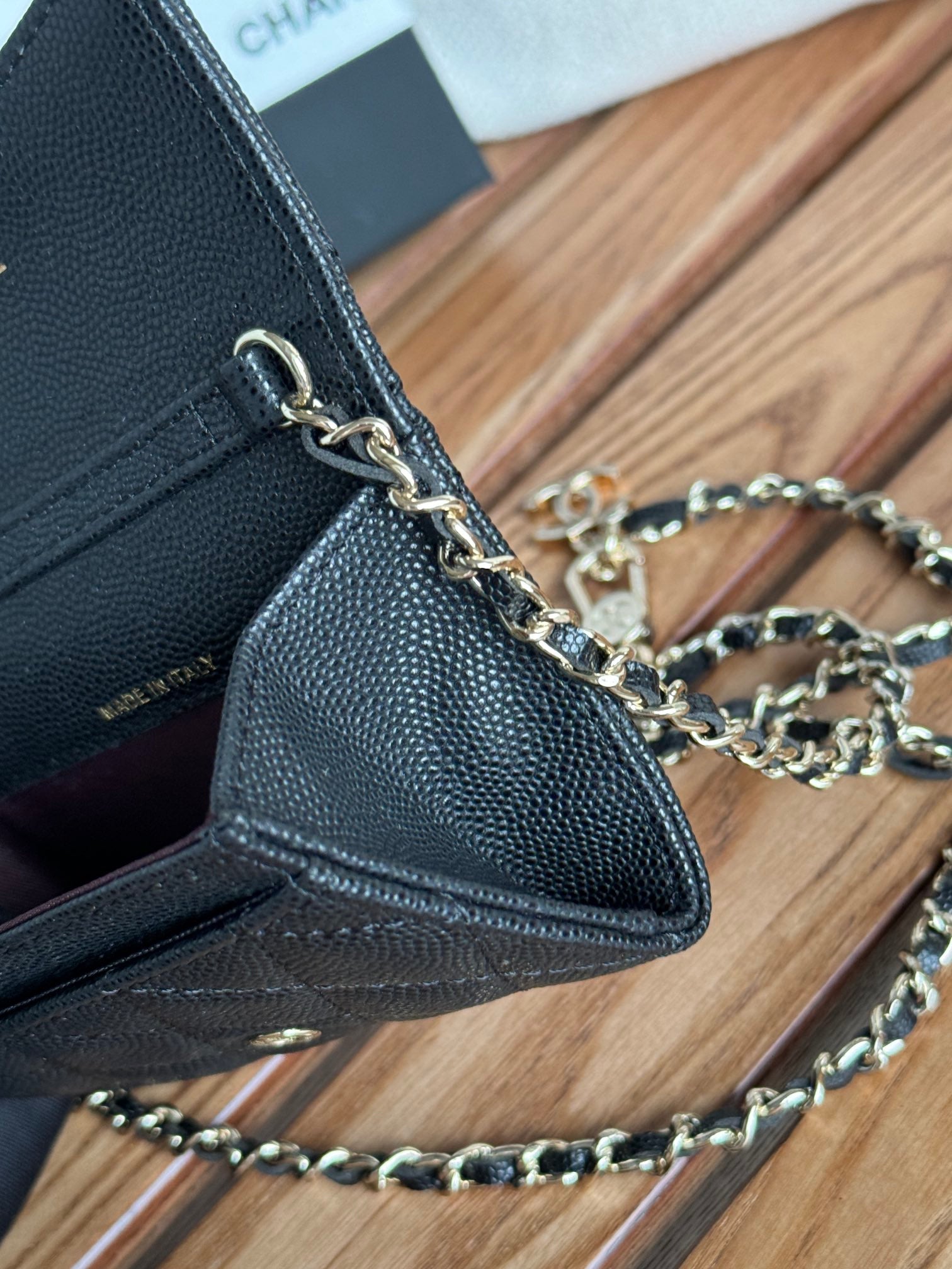 CC 24 Classic Wallet On Chain 11cm Black Gold Metal Caviar 240666