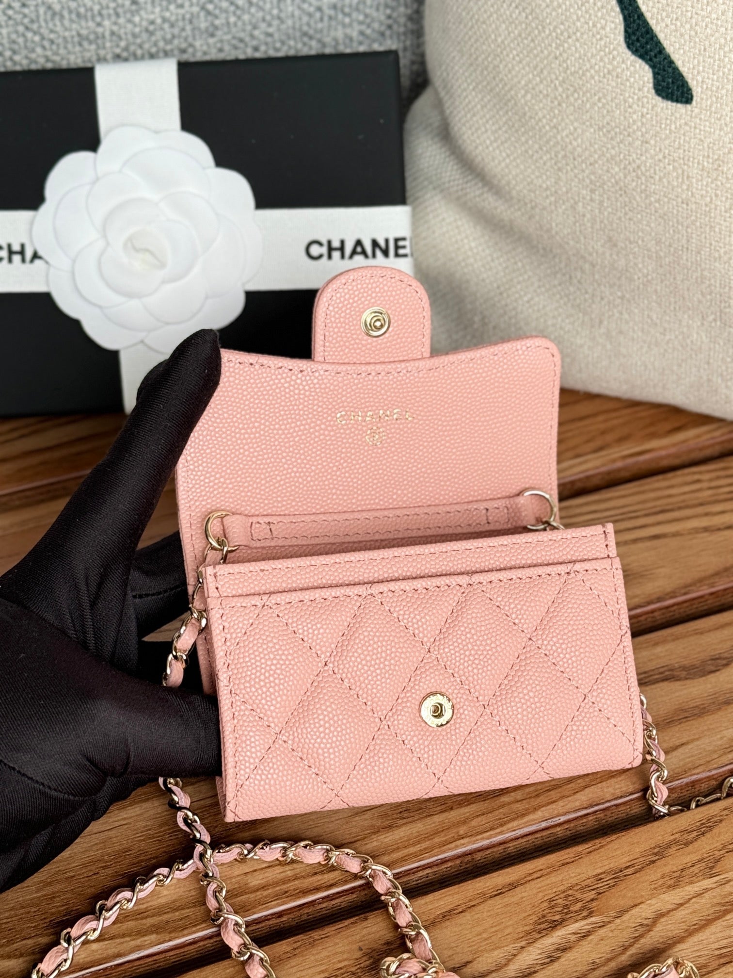 CC 24 Classic Wallet On Chain 11cm Pink Caviar Leather 240678