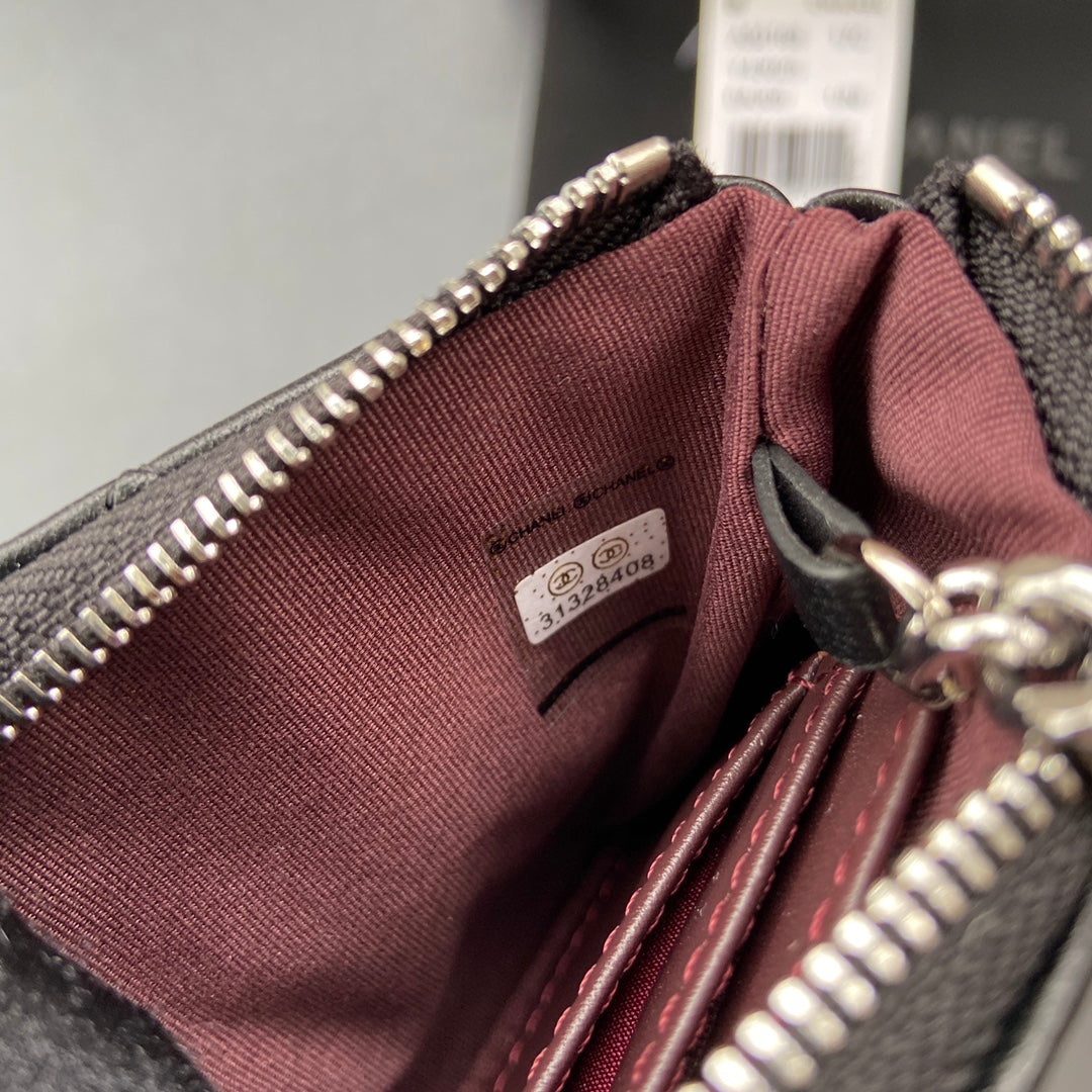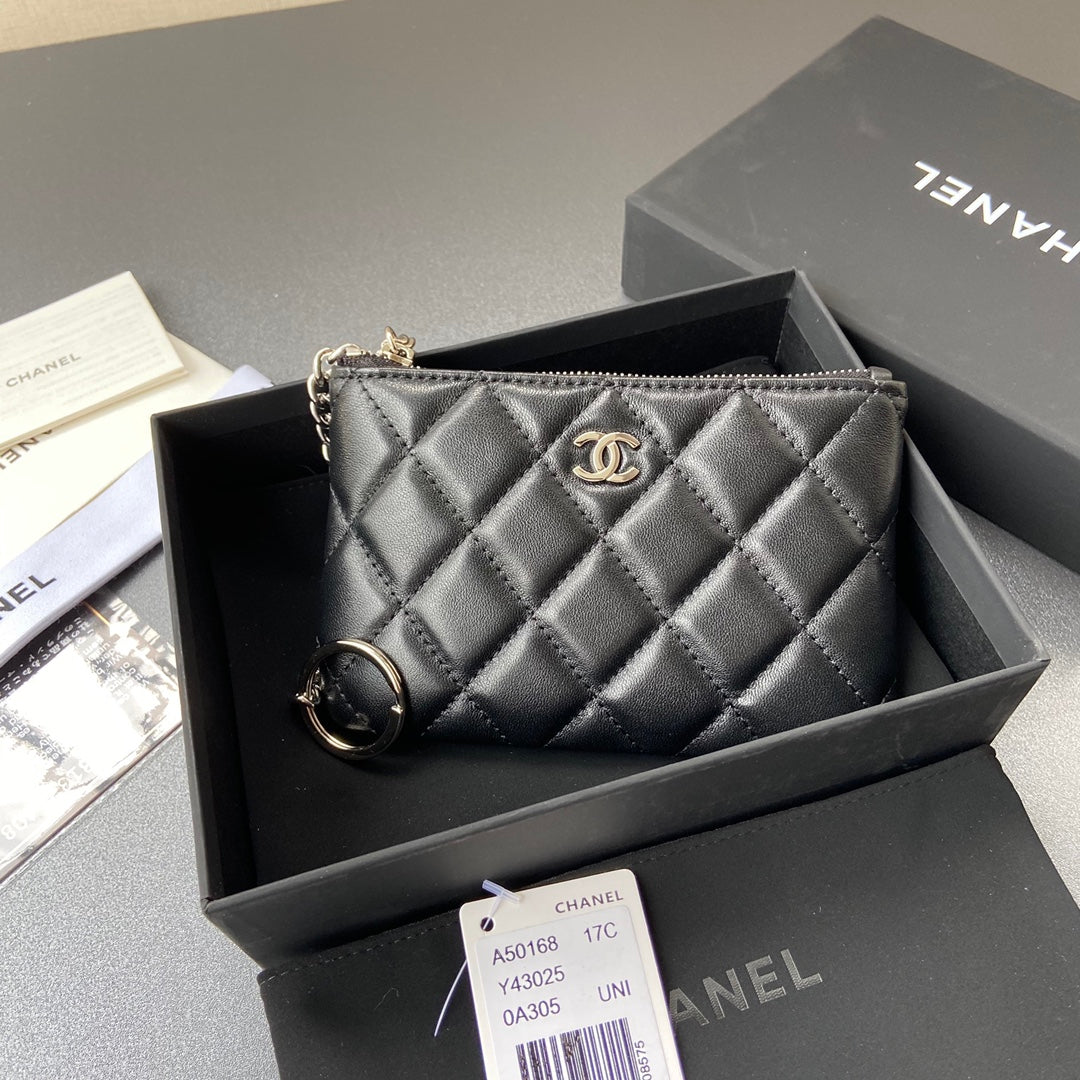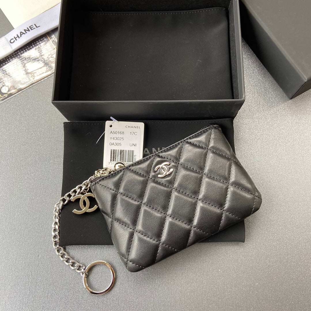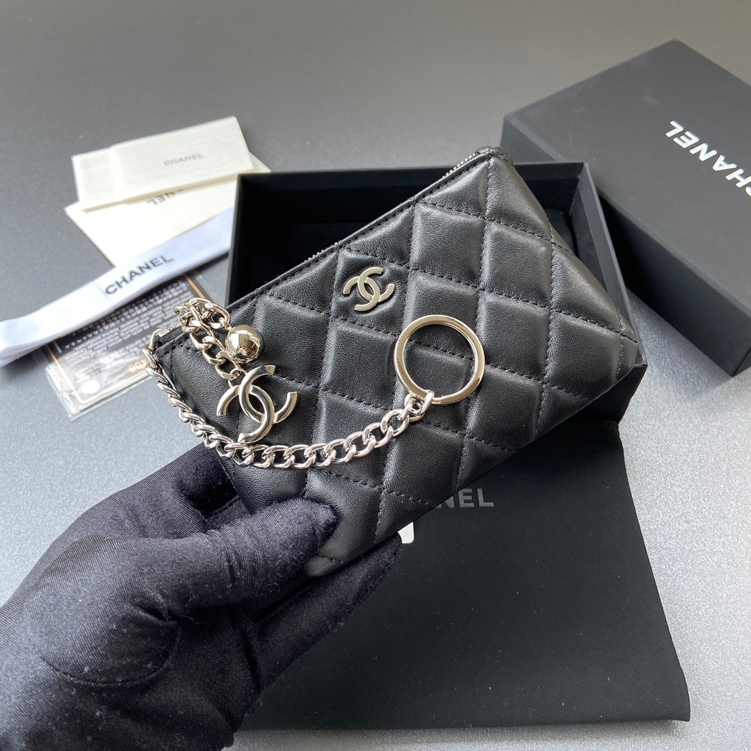 CC A50168 Keyring Cardholder Black Sheepskin Sliver Steel 229703