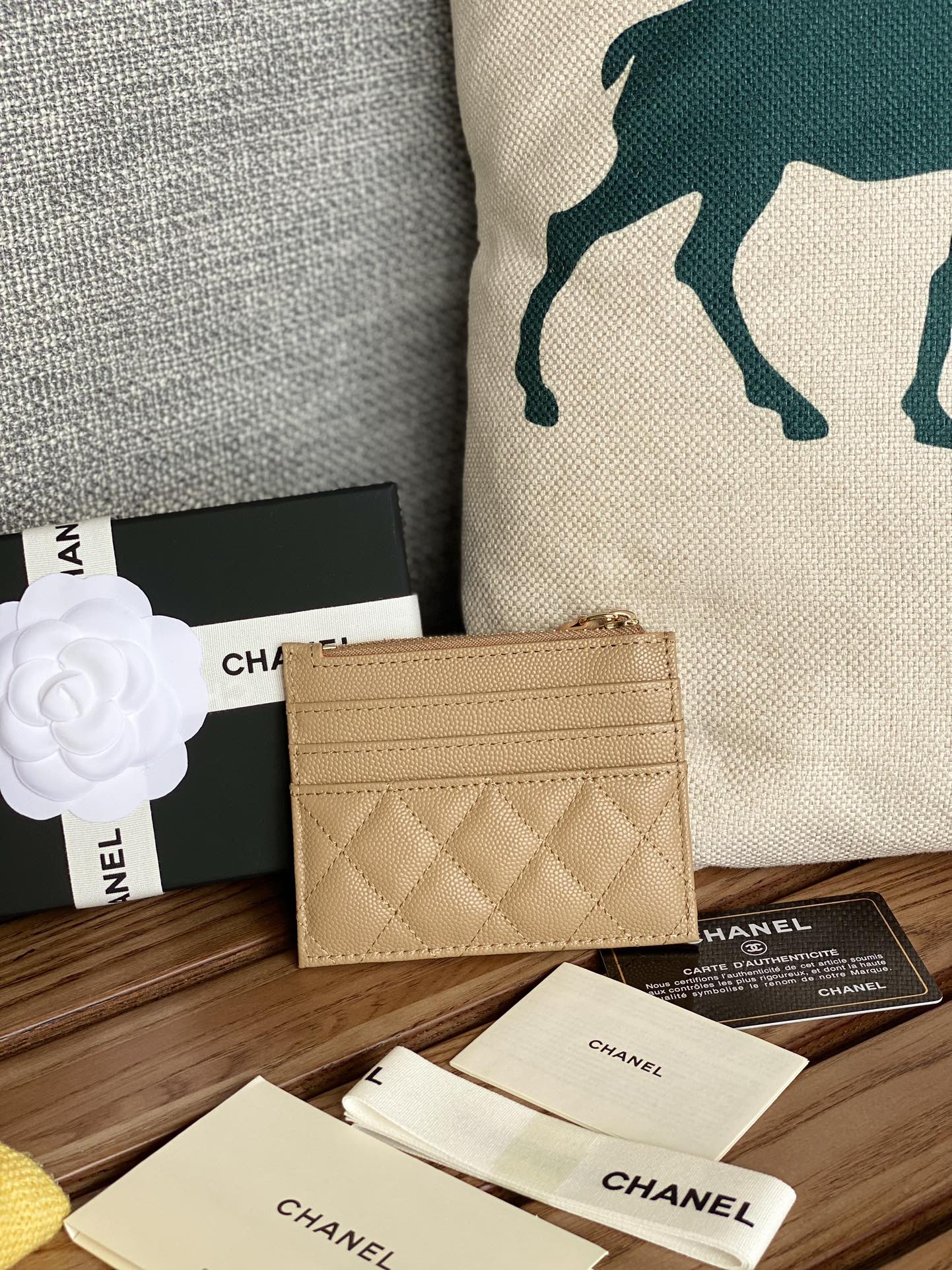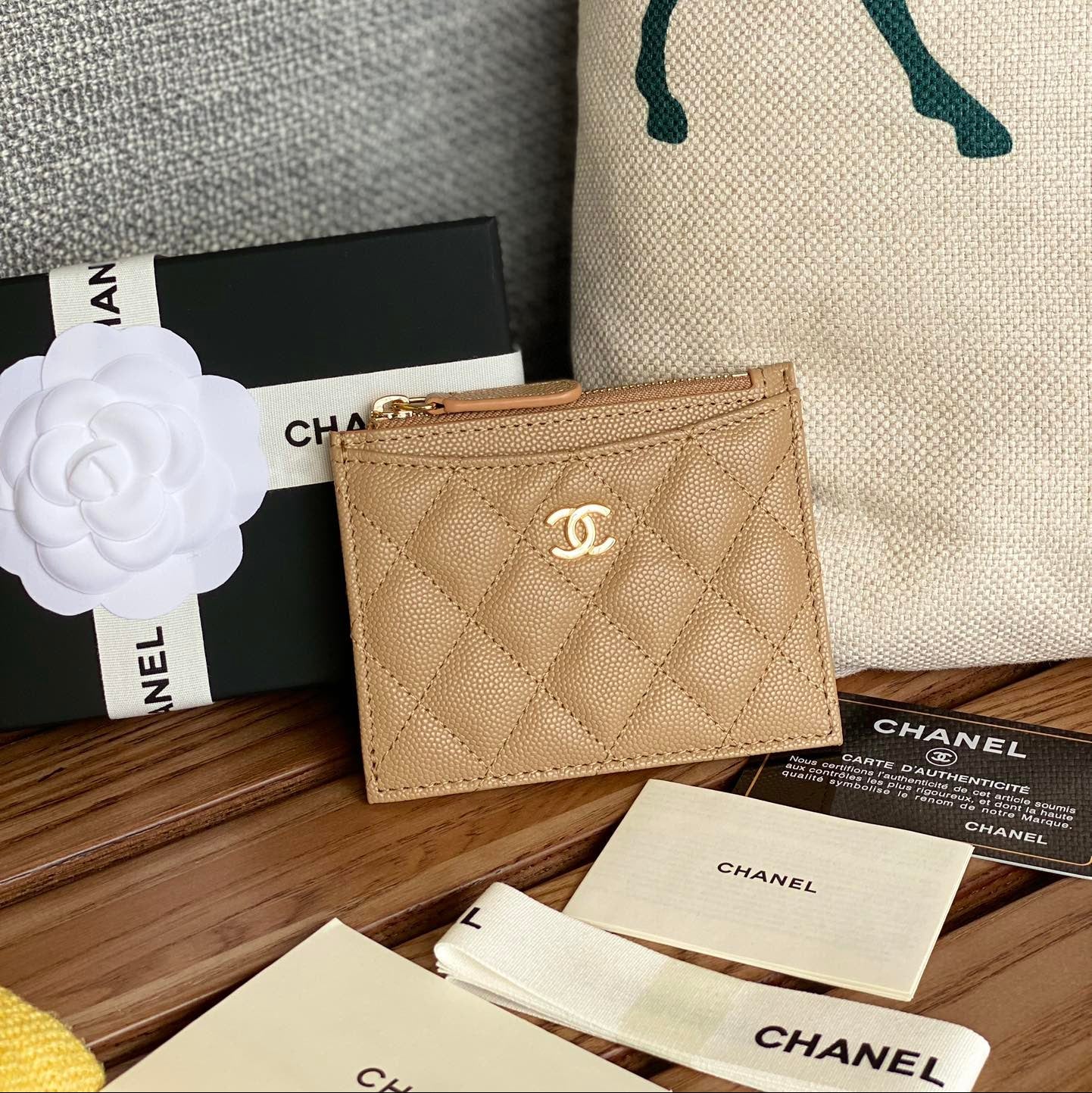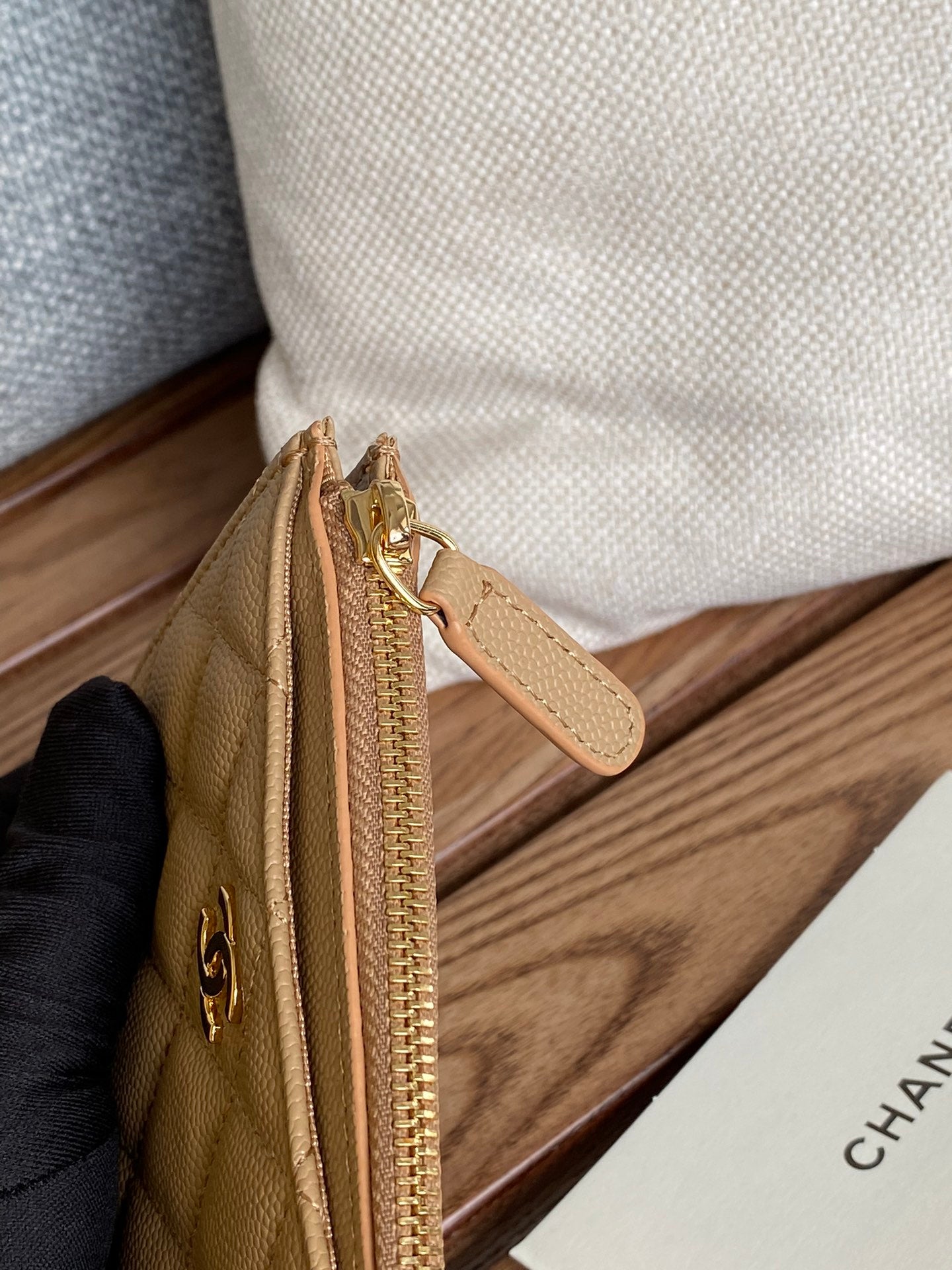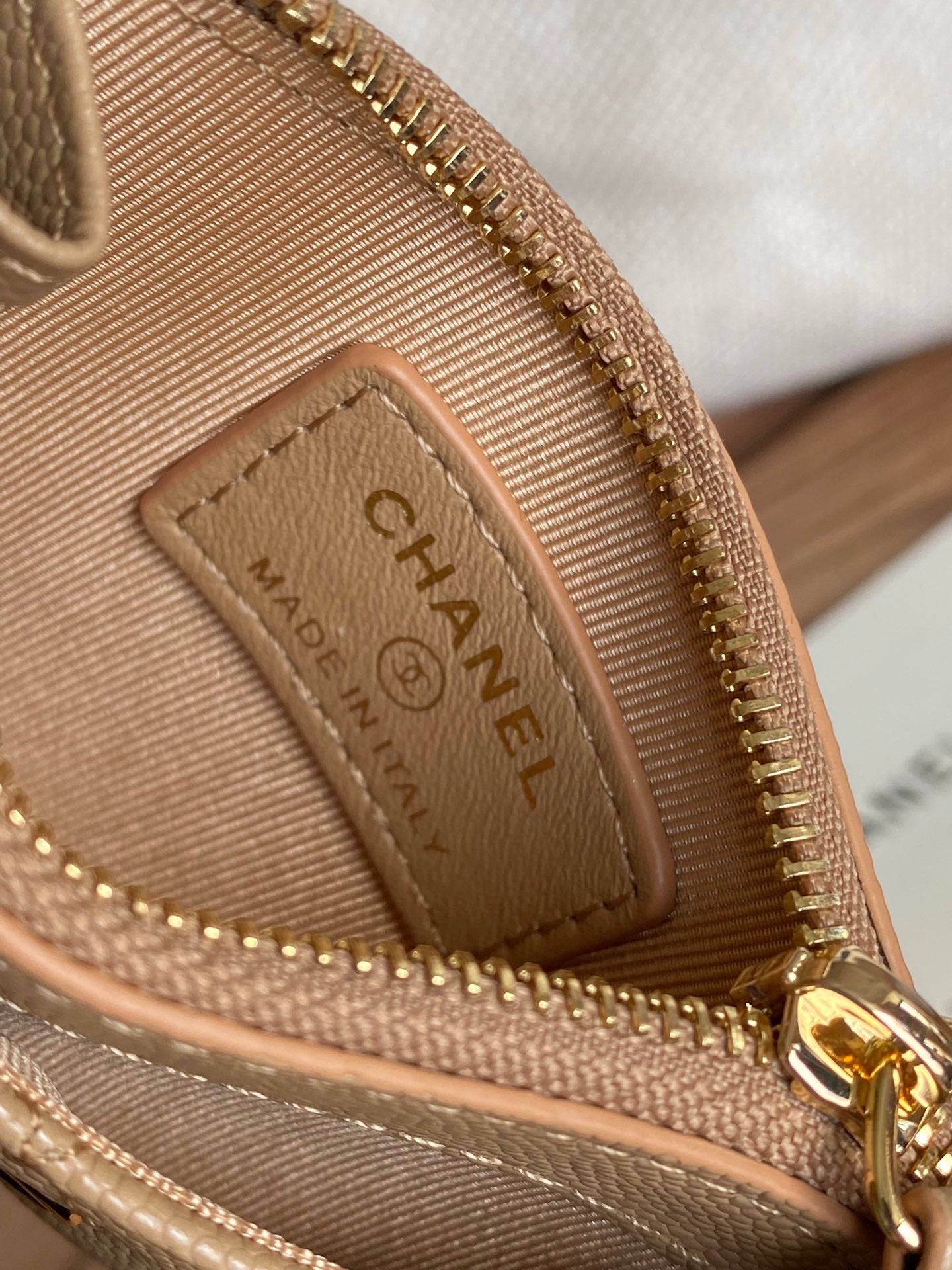 CC A84105 Coin Case Beige Gold Metal Caviar 240737