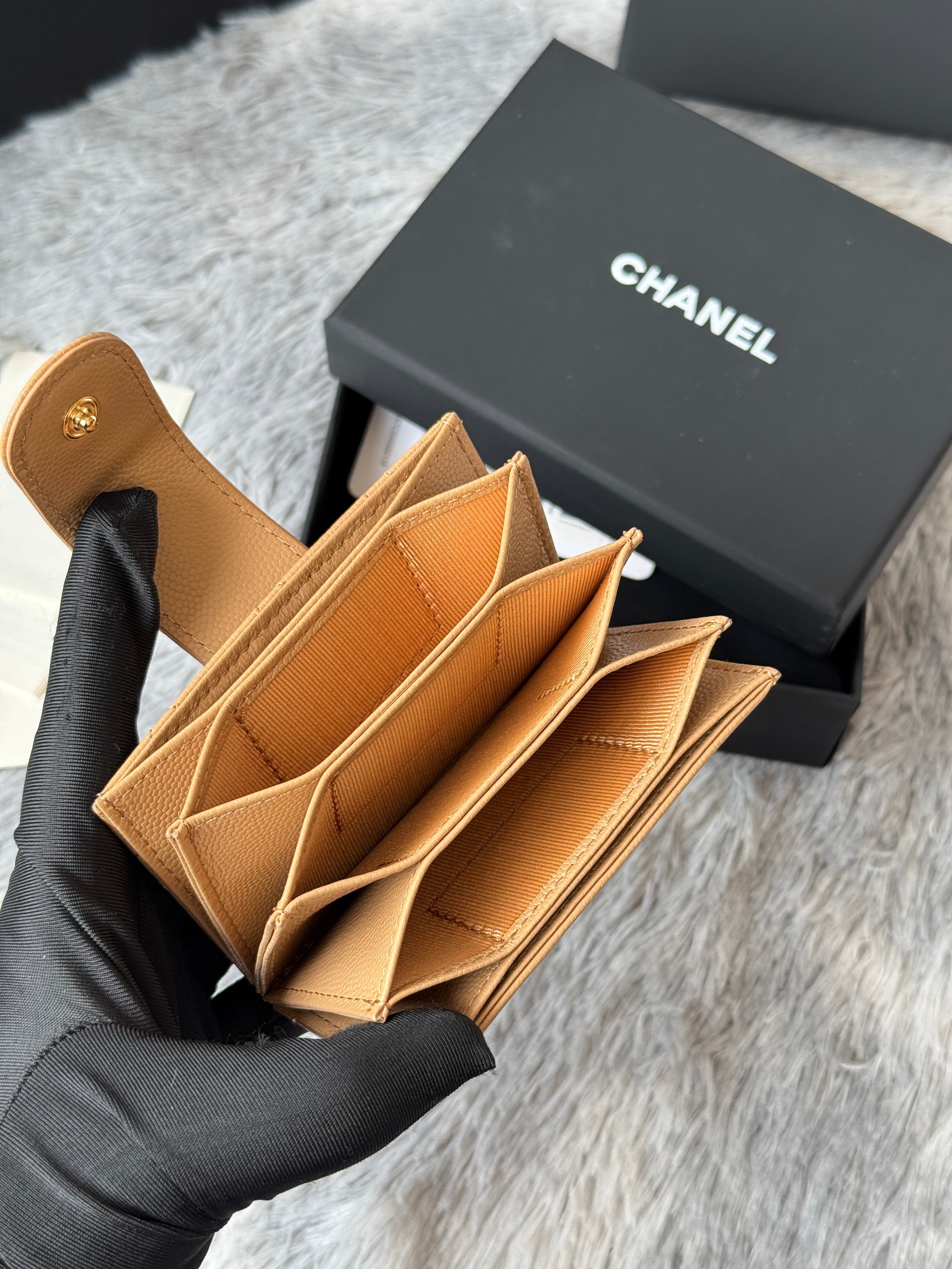 CC Accordion Card Holder Beige Gold-tone Metal Caviar 242661
