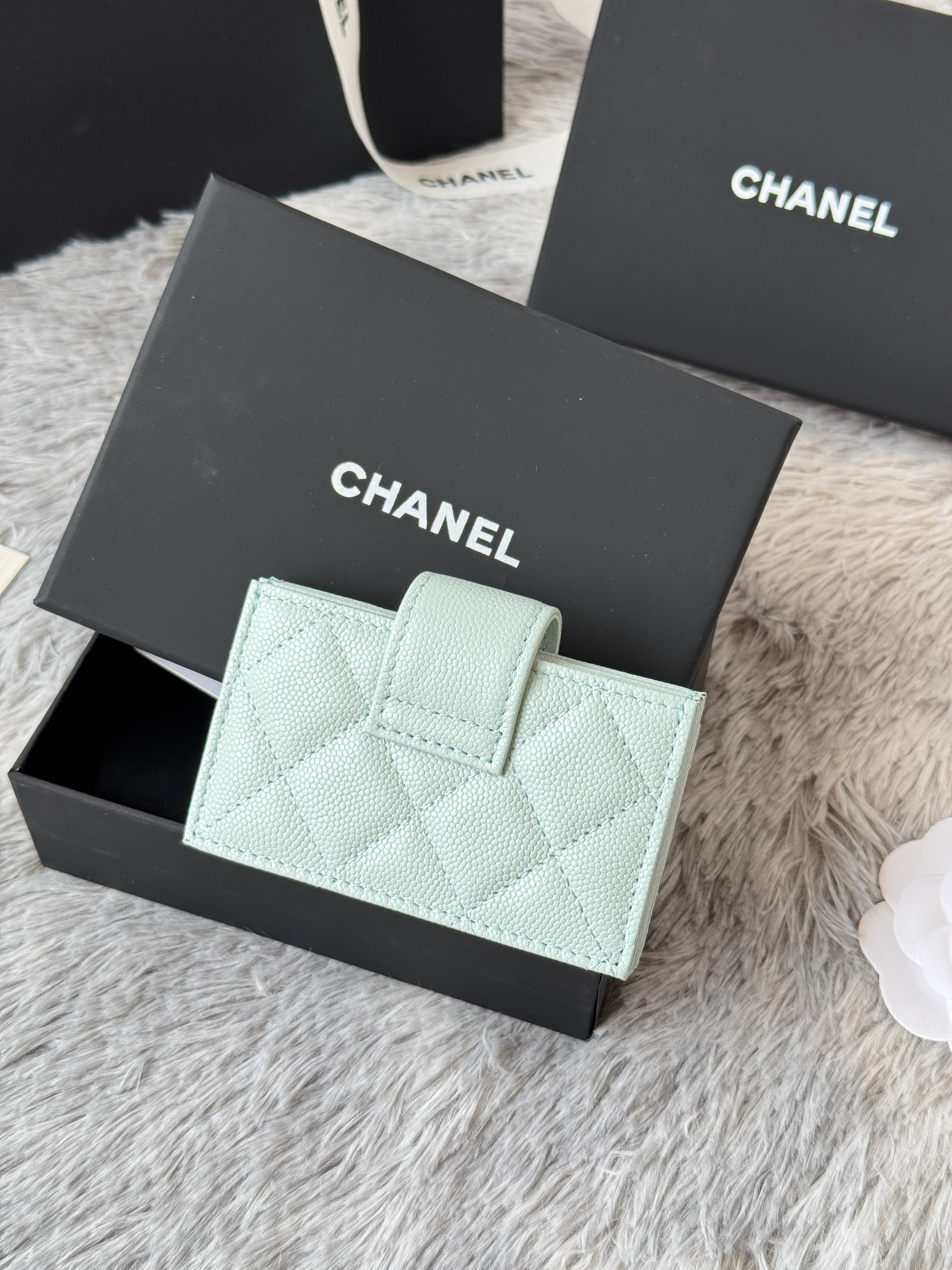 CC Accordion Card Holder Light Blue Gold-tone Metal Caviar 242663