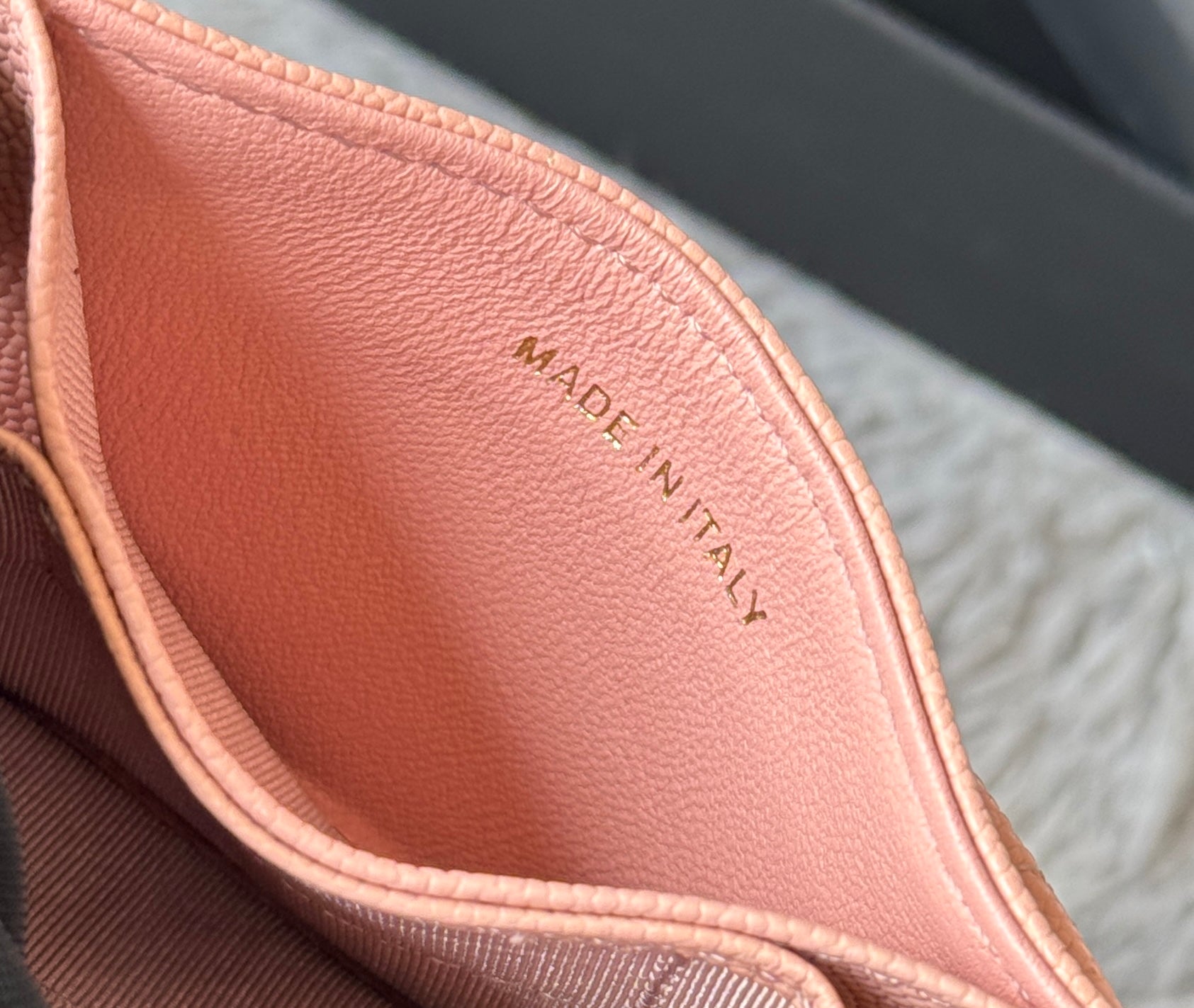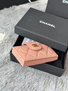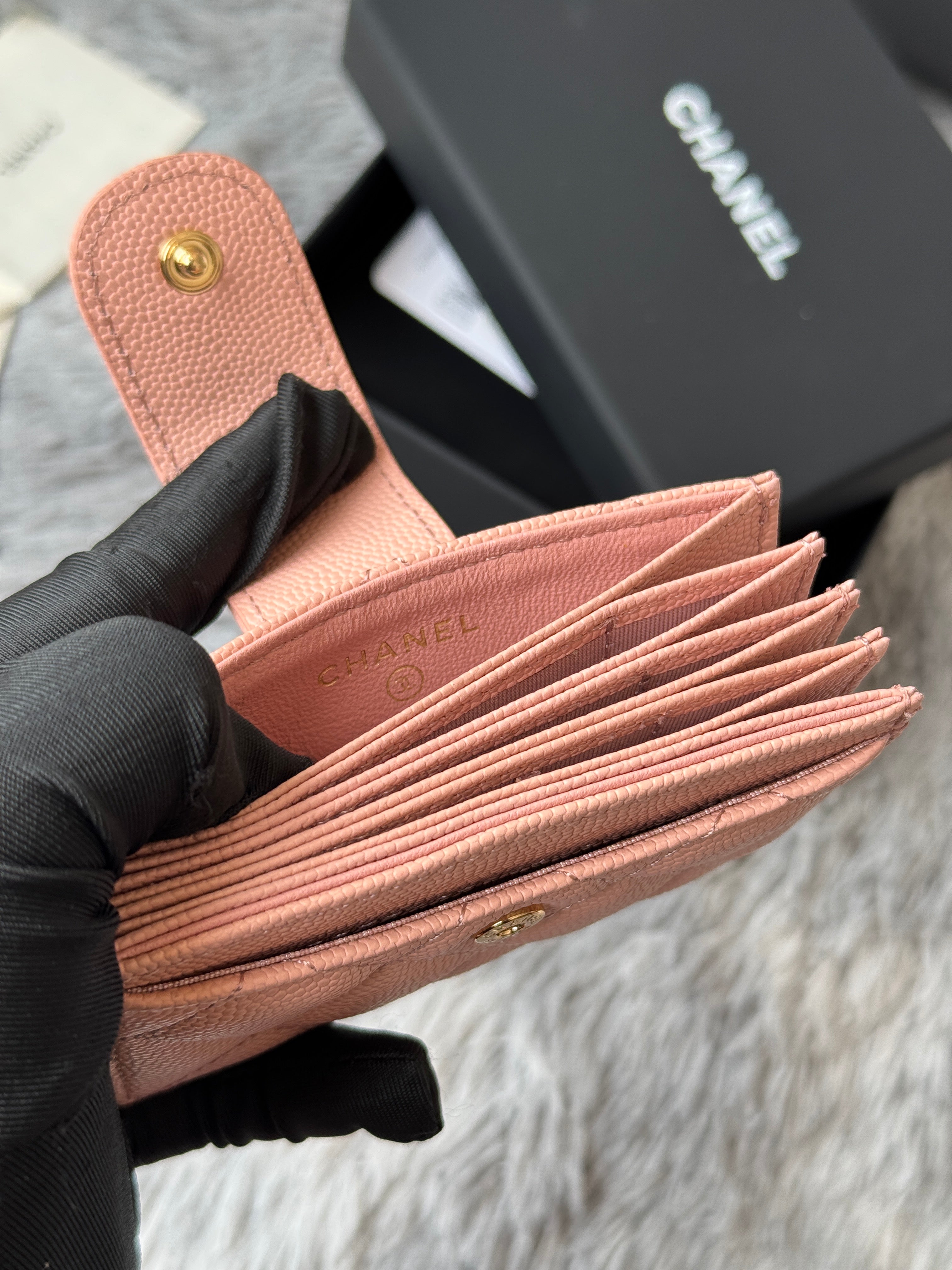 CC Accordion Card Holder Pink Gold-tone Metal Caviar 242667