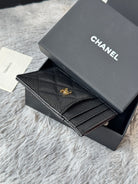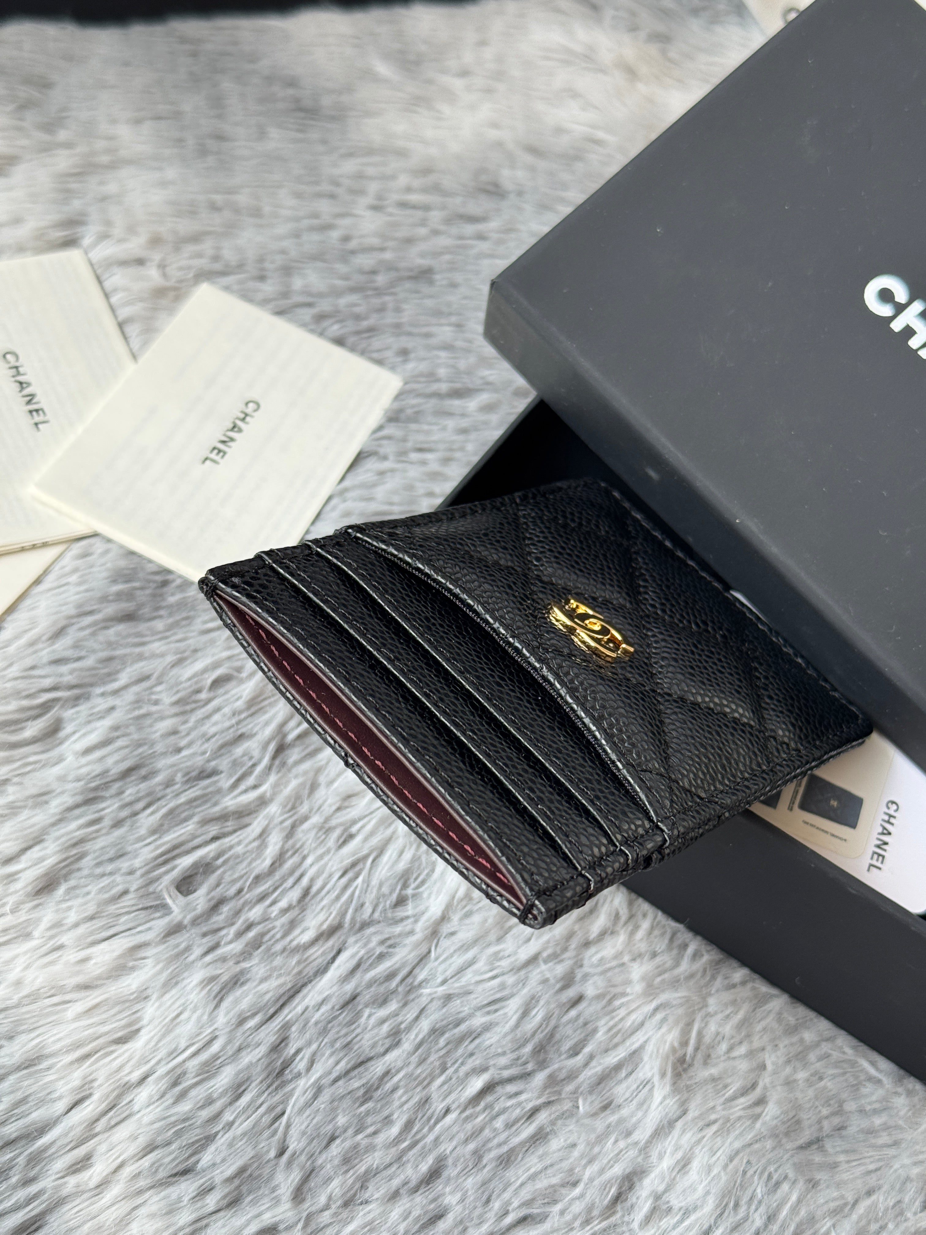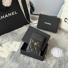 CC Carld Holder Black Gold-tone Metal Grain Calfskin 242682