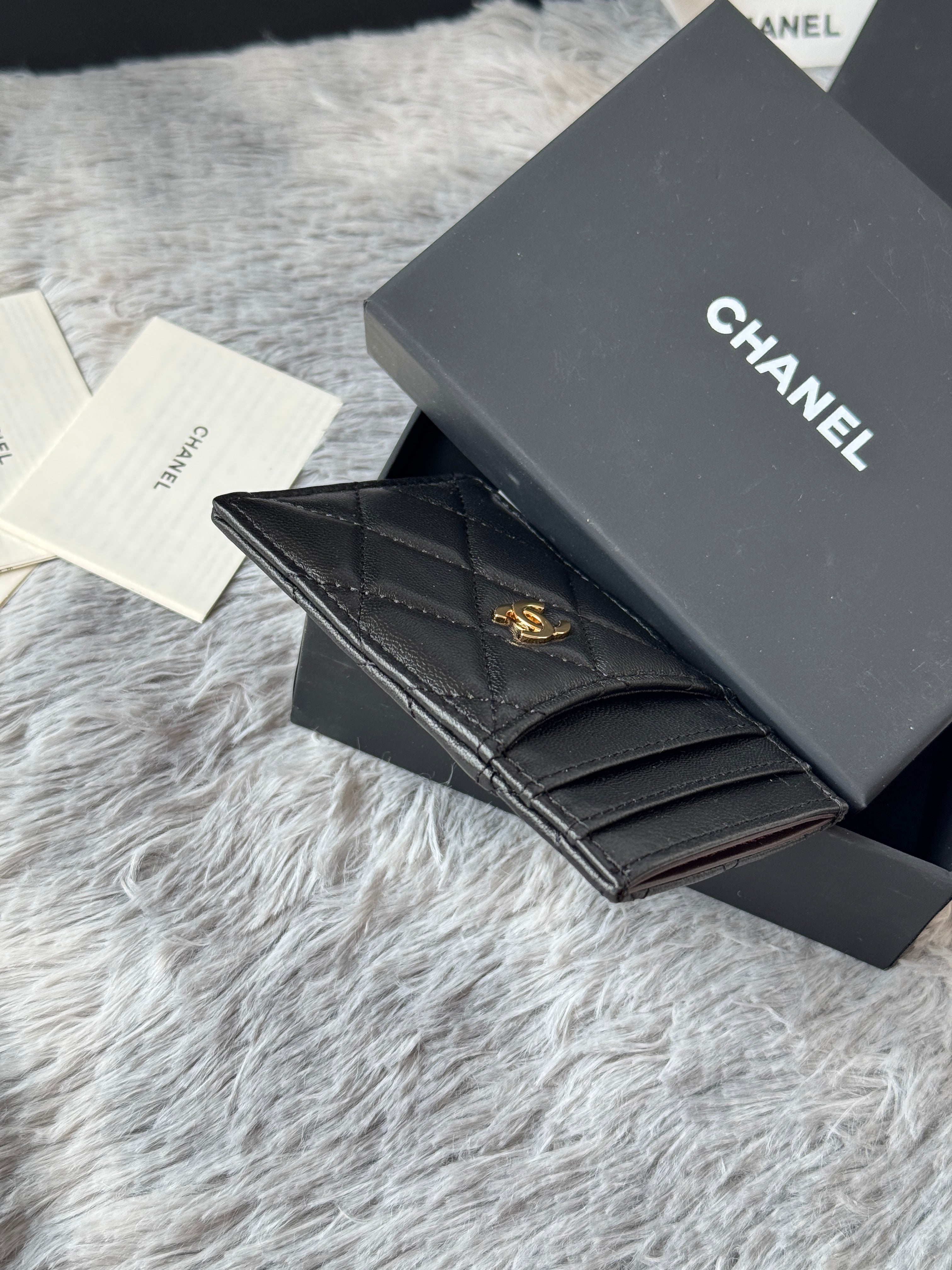 CC Carld Holder Black Gold-tone Metal Lamskin 242672