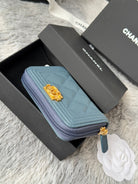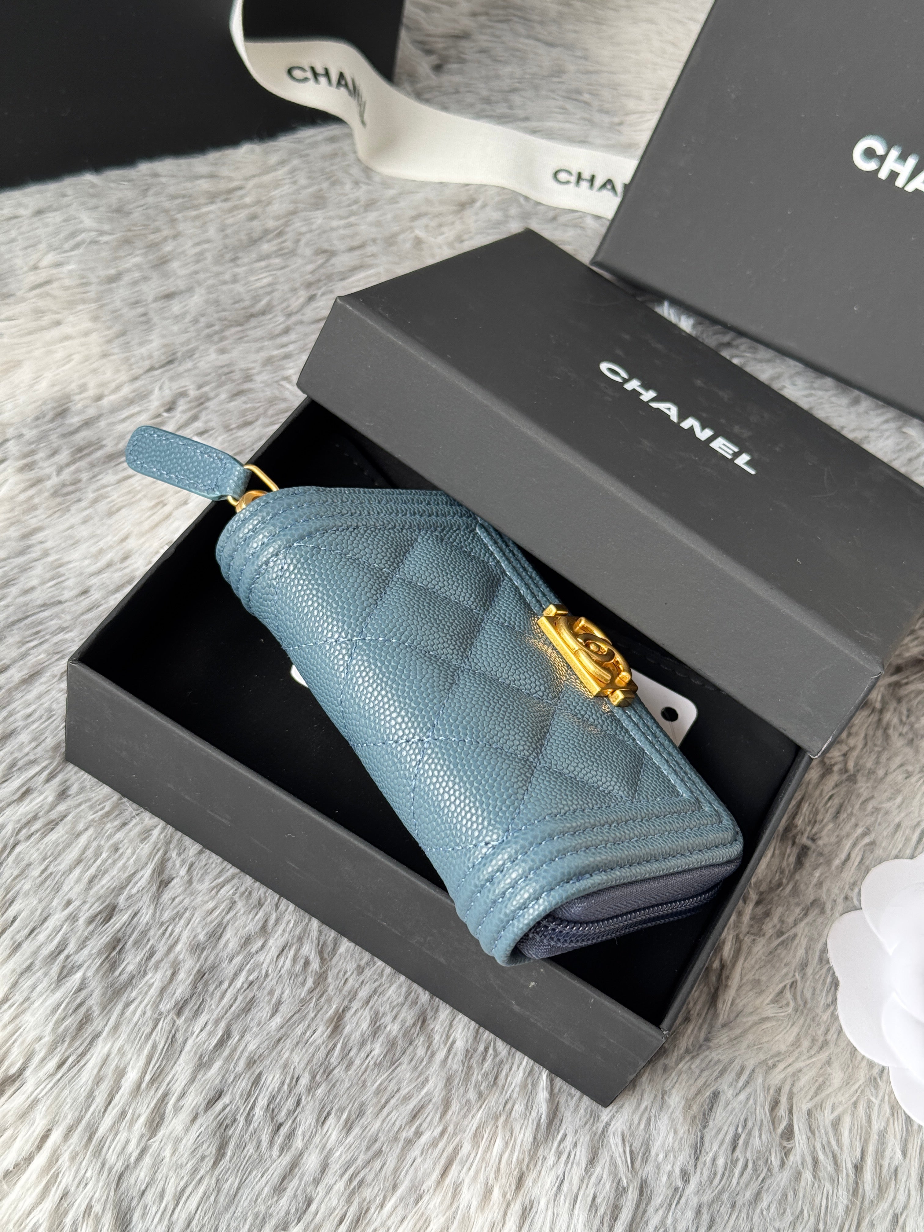 CC Classic Boy Coin Purse Muted Teal Gold-tone Grained Calfskin 242878