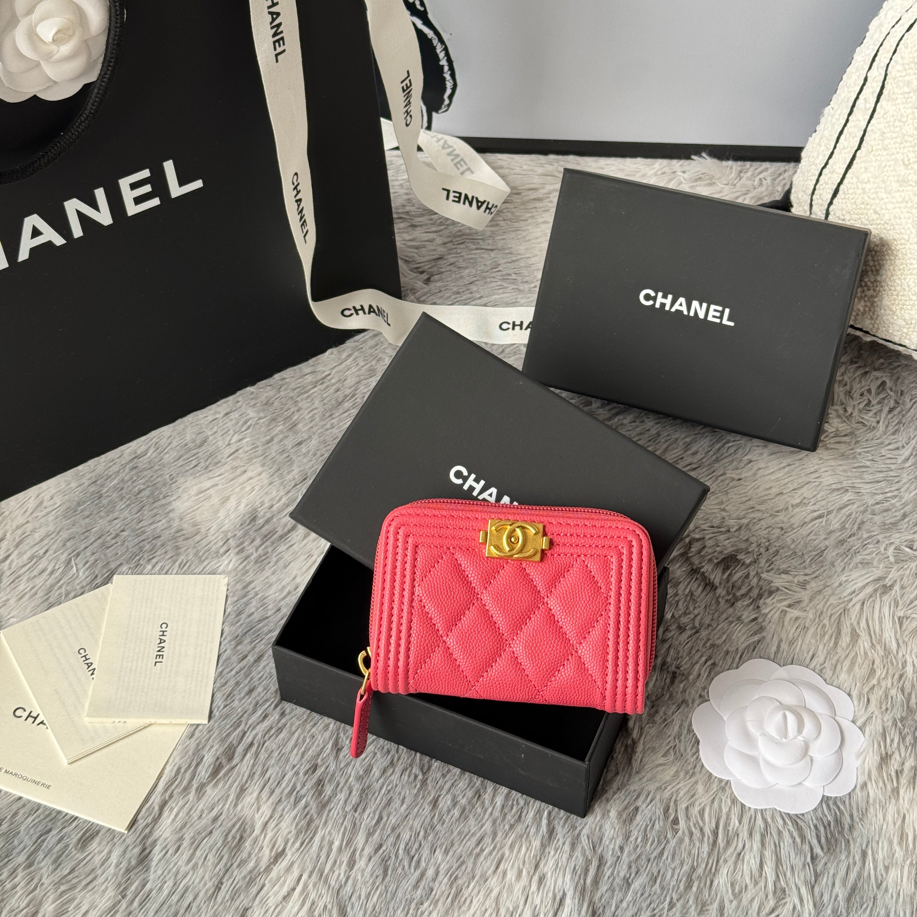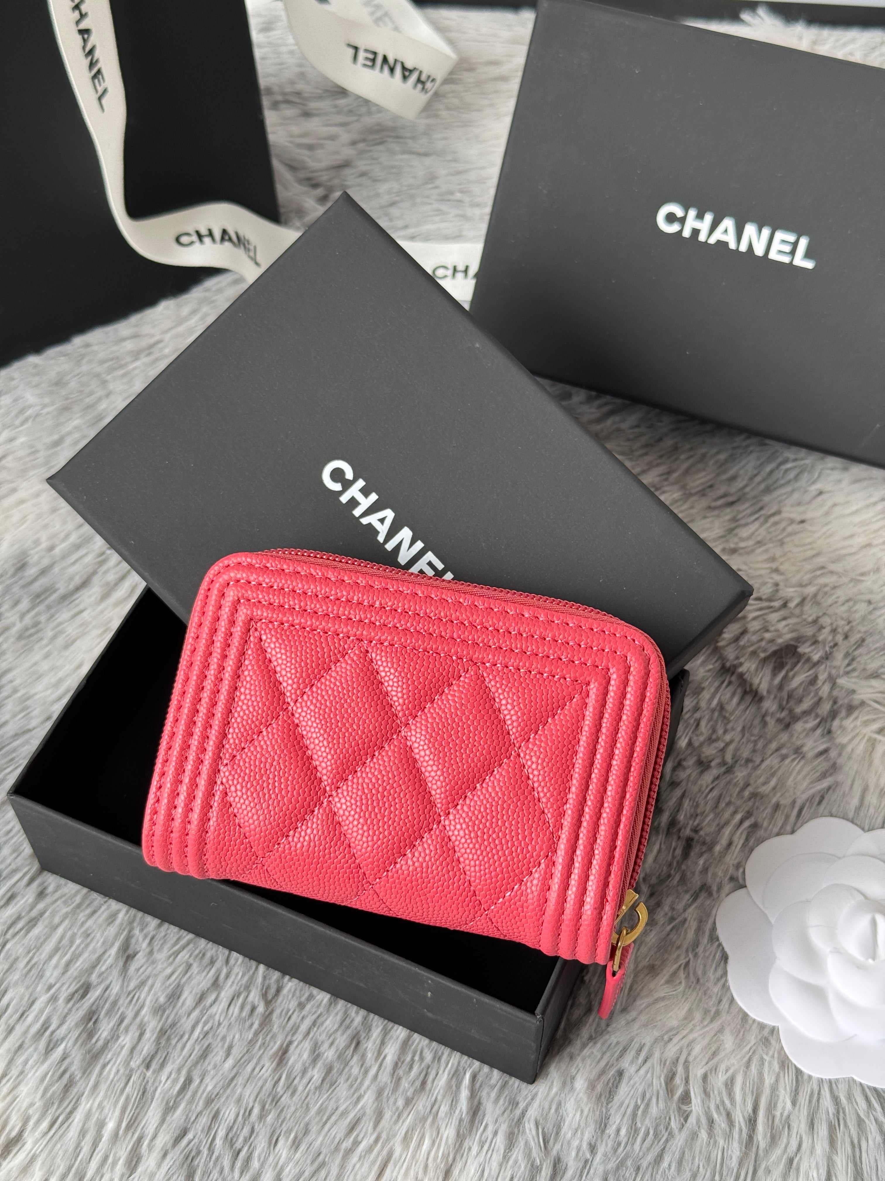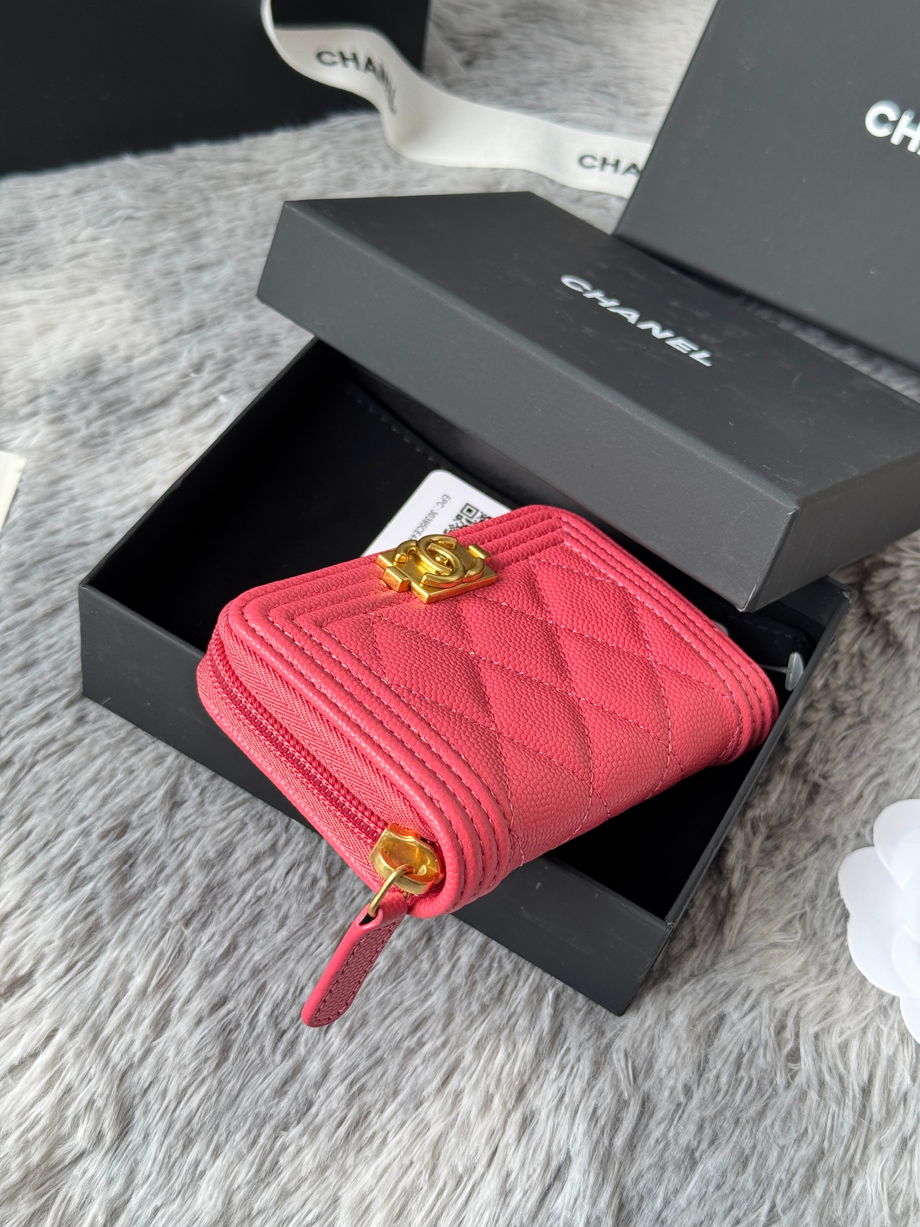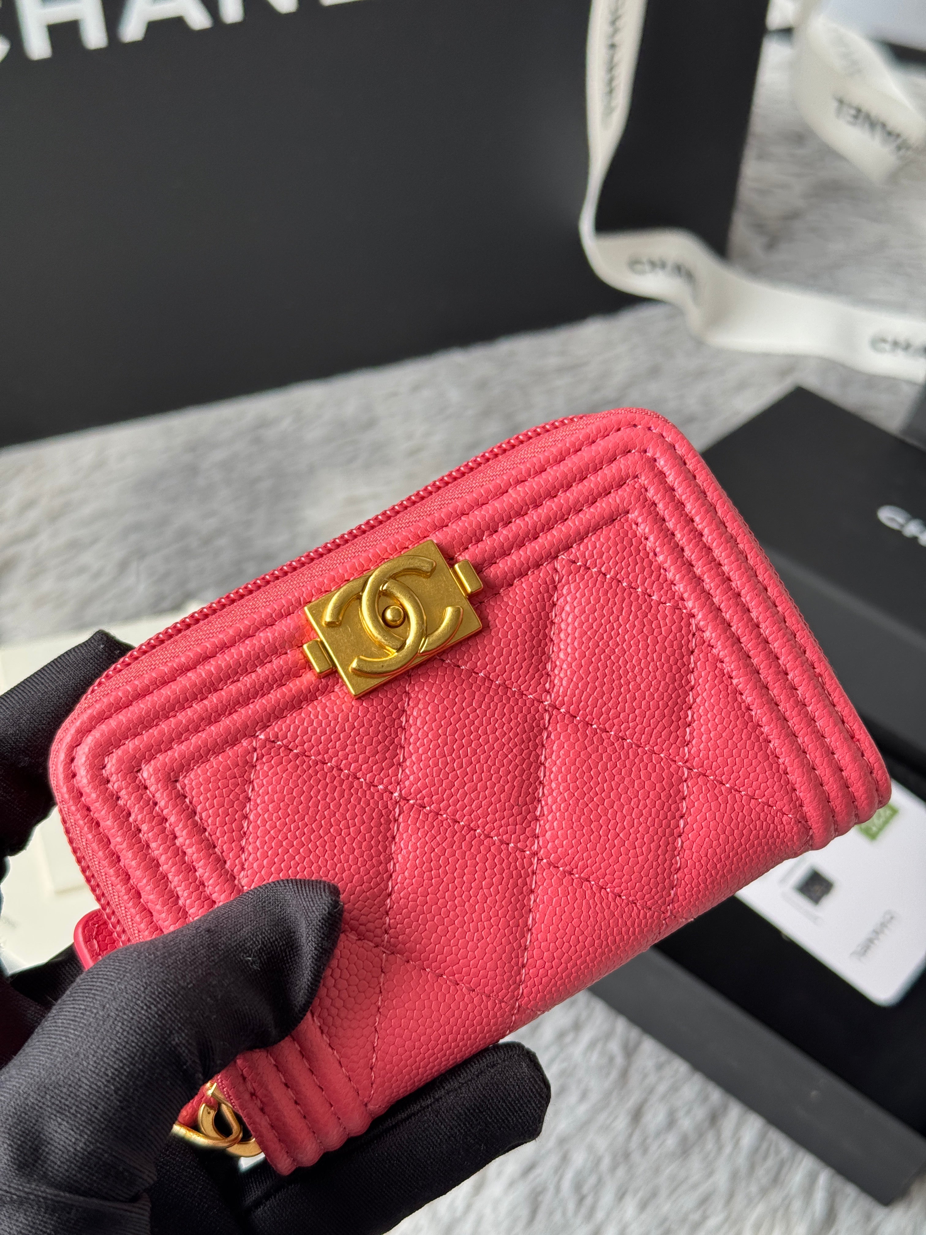 CC Classic Boy Coin Purse Pink Gold-tone Grained Calfskin 242880