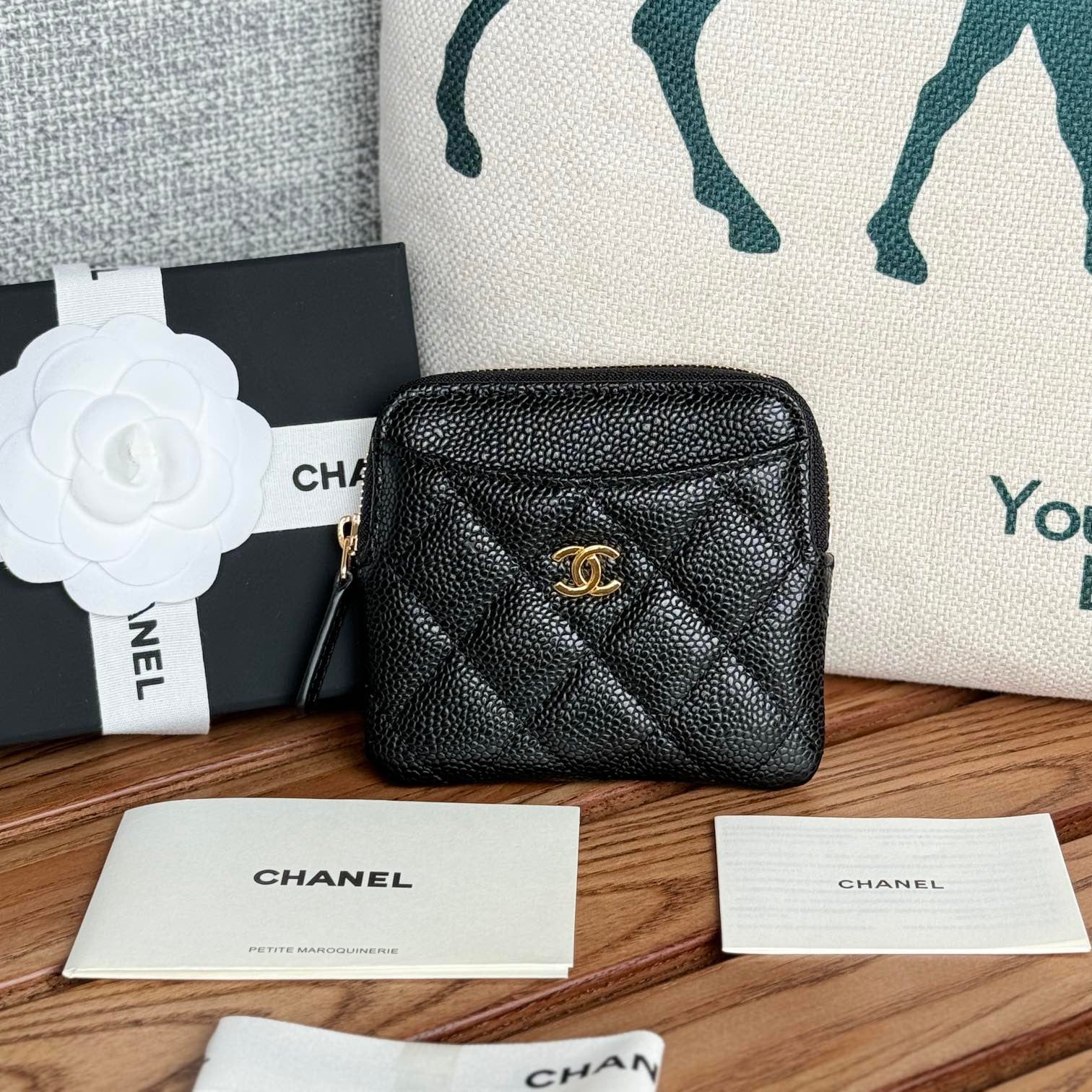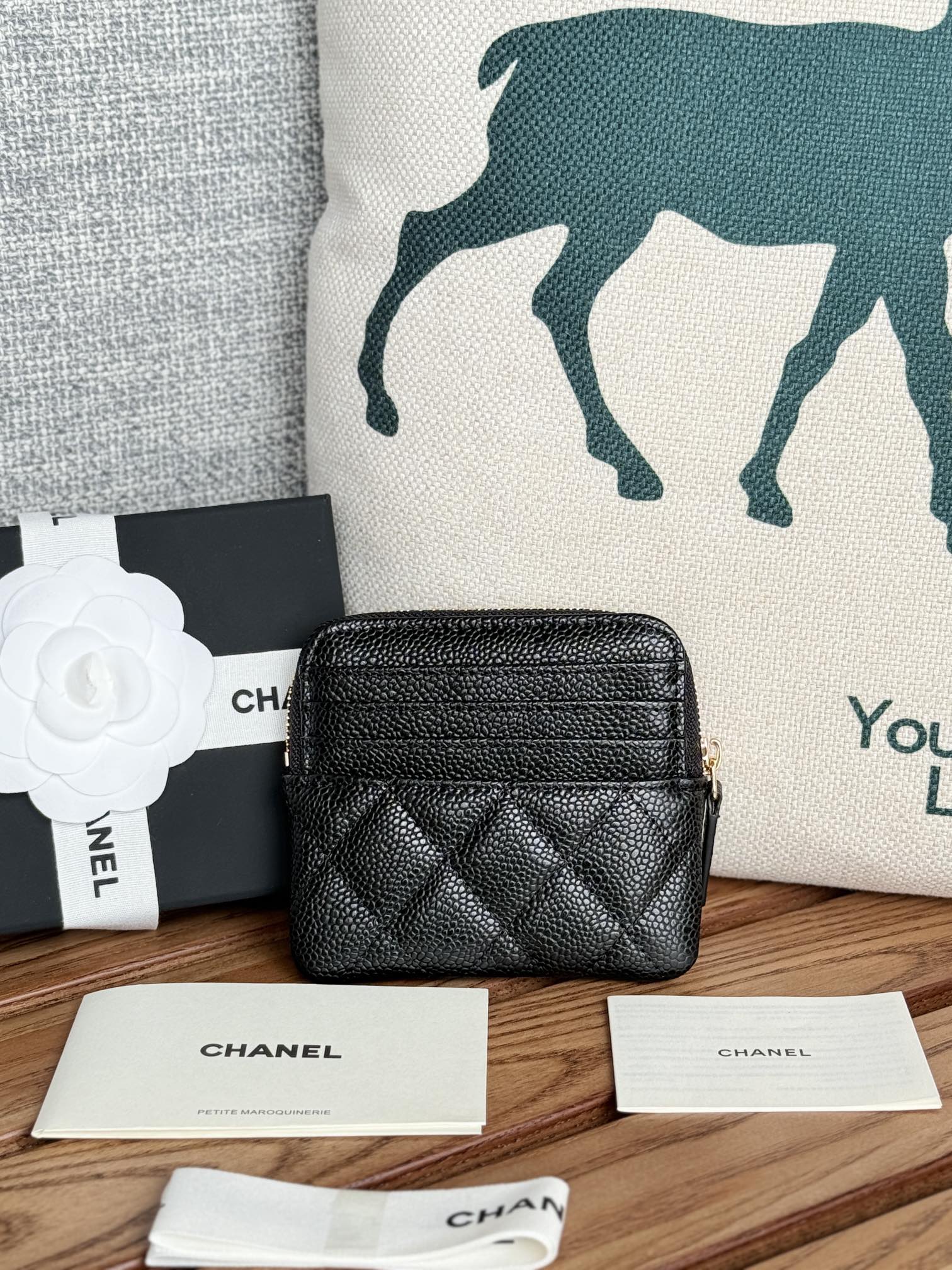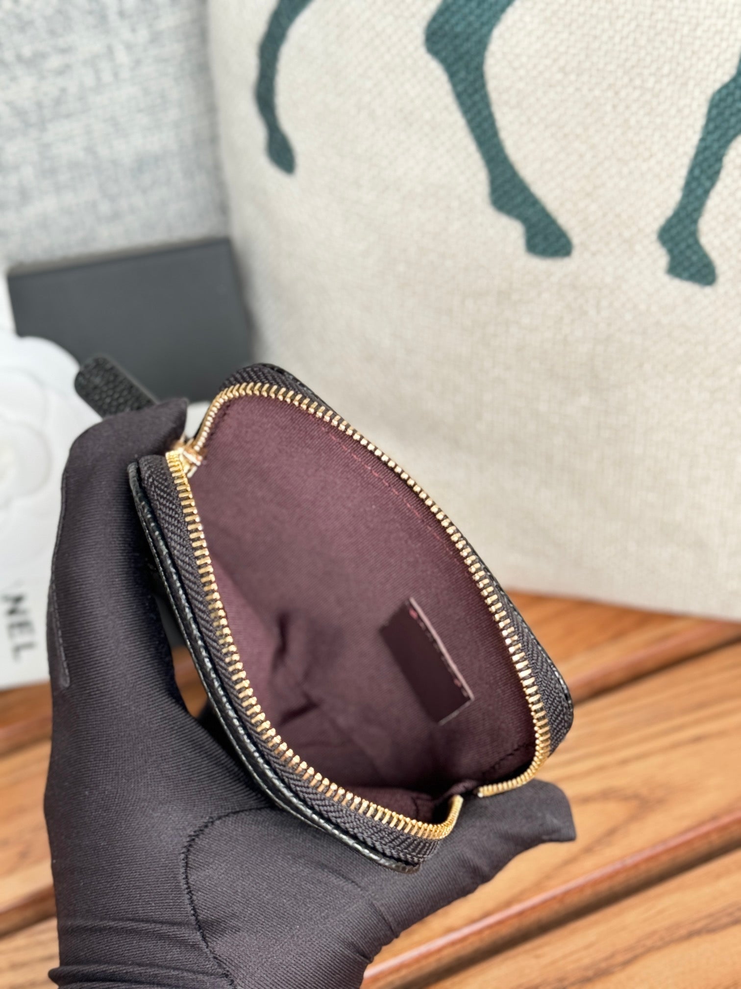 CC Zip Card Holder Wallet Black Gold Metal Caviar 240620