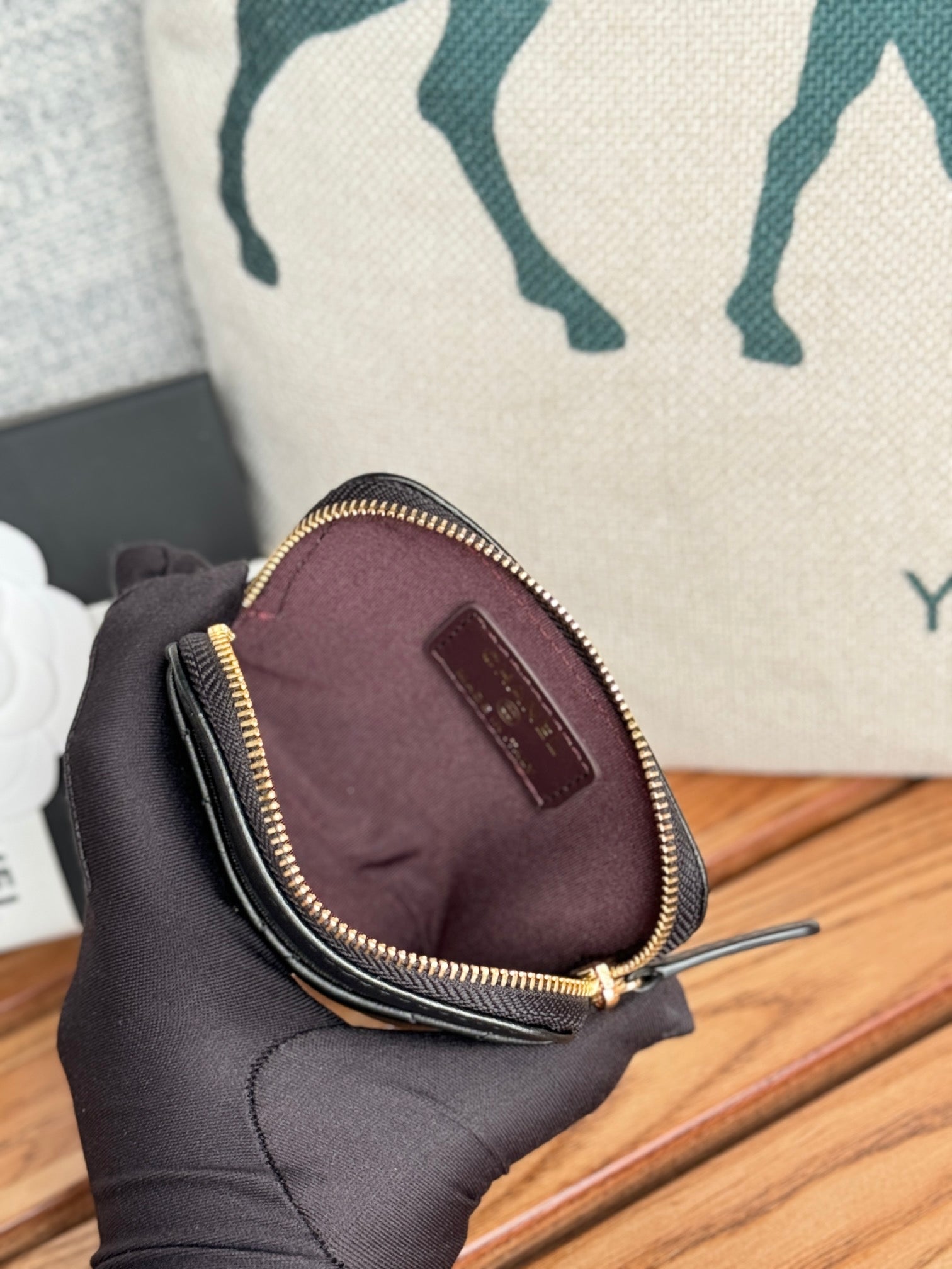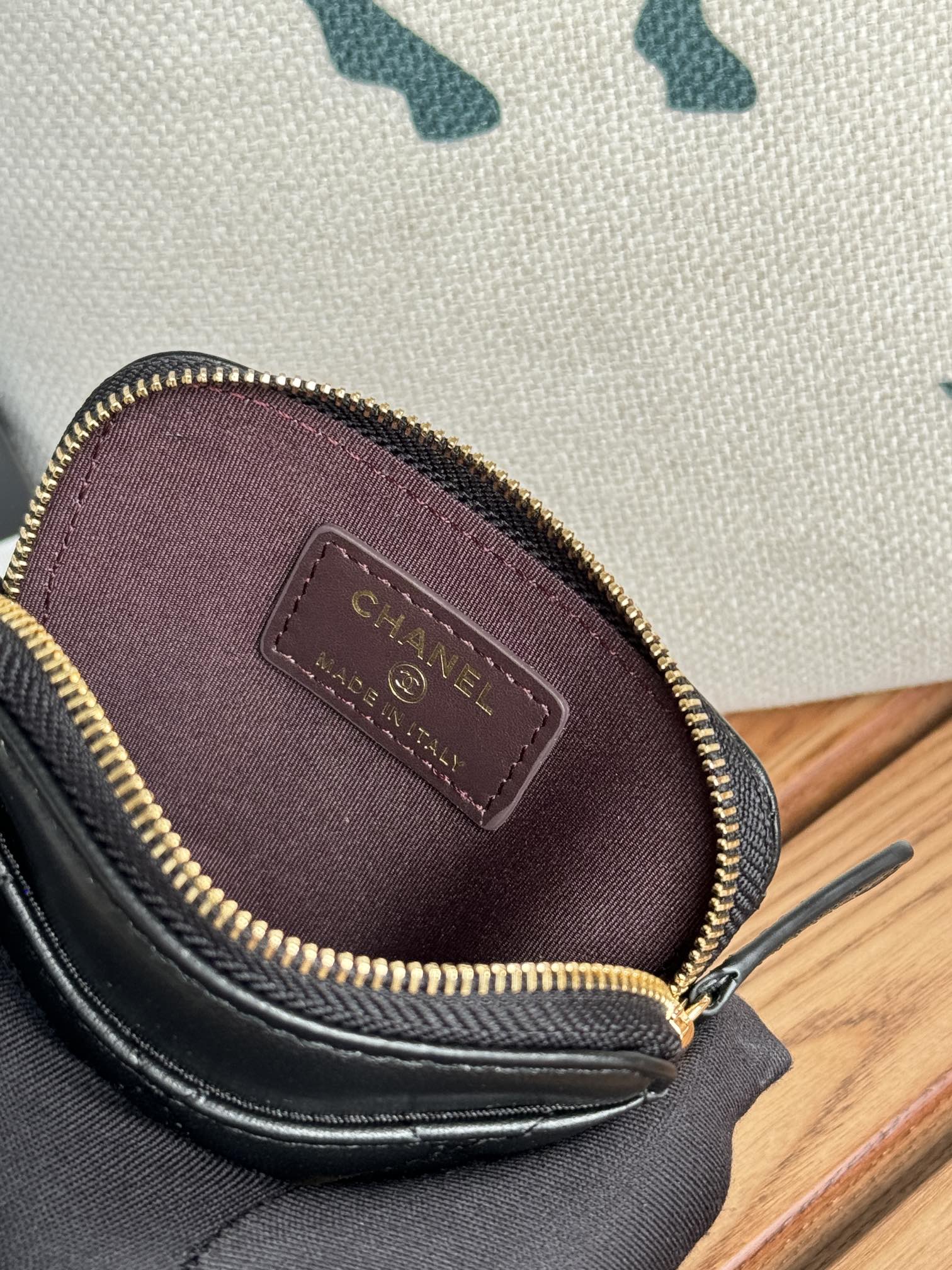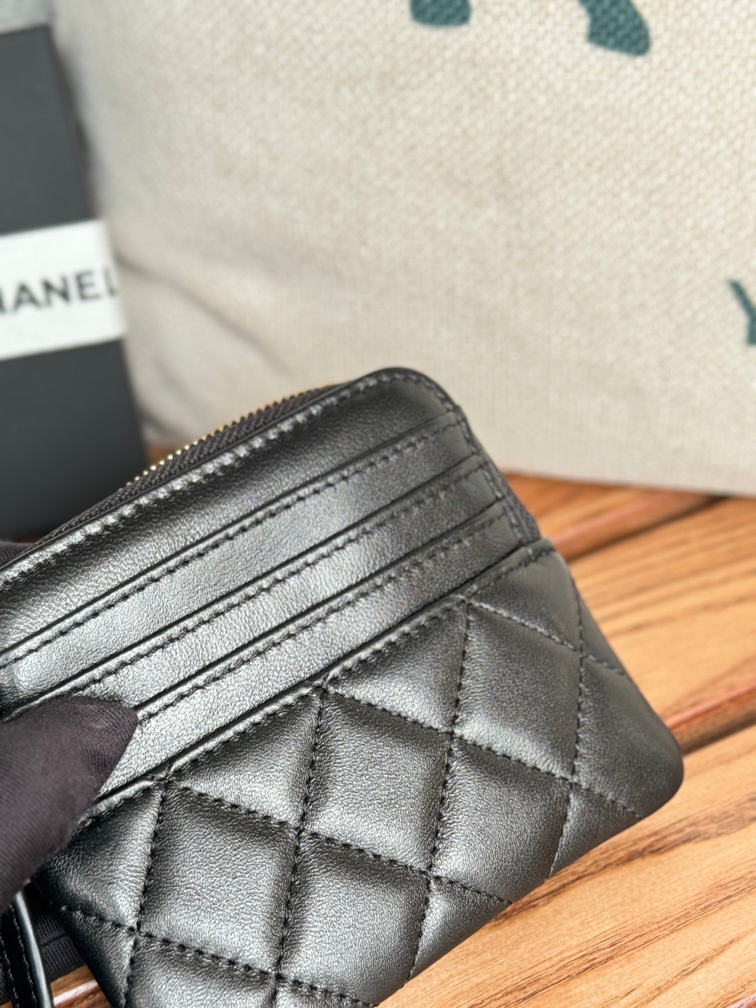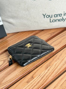 CC Zip Card Holder Wallet Black Gold Metal Lamskin 240617