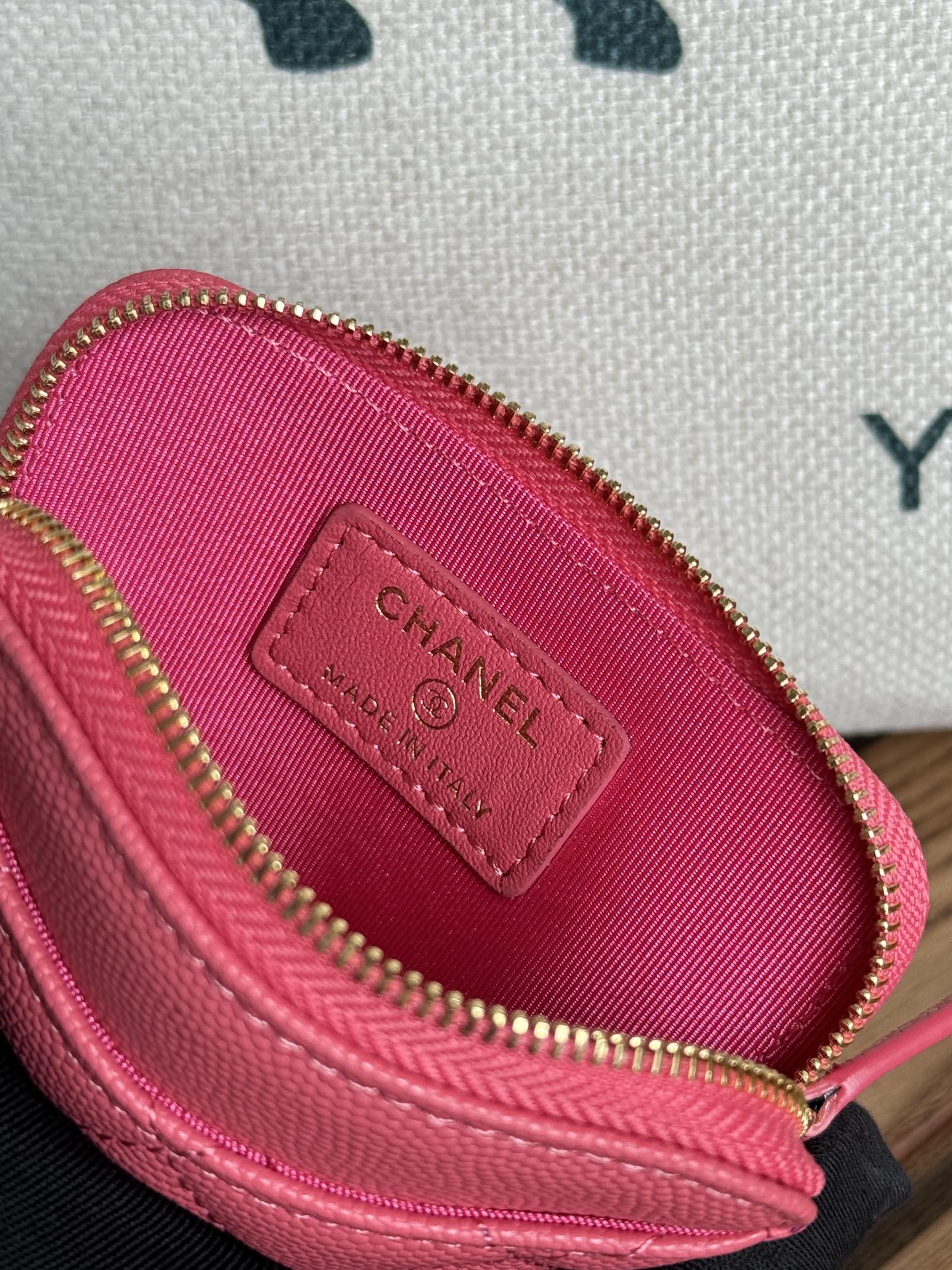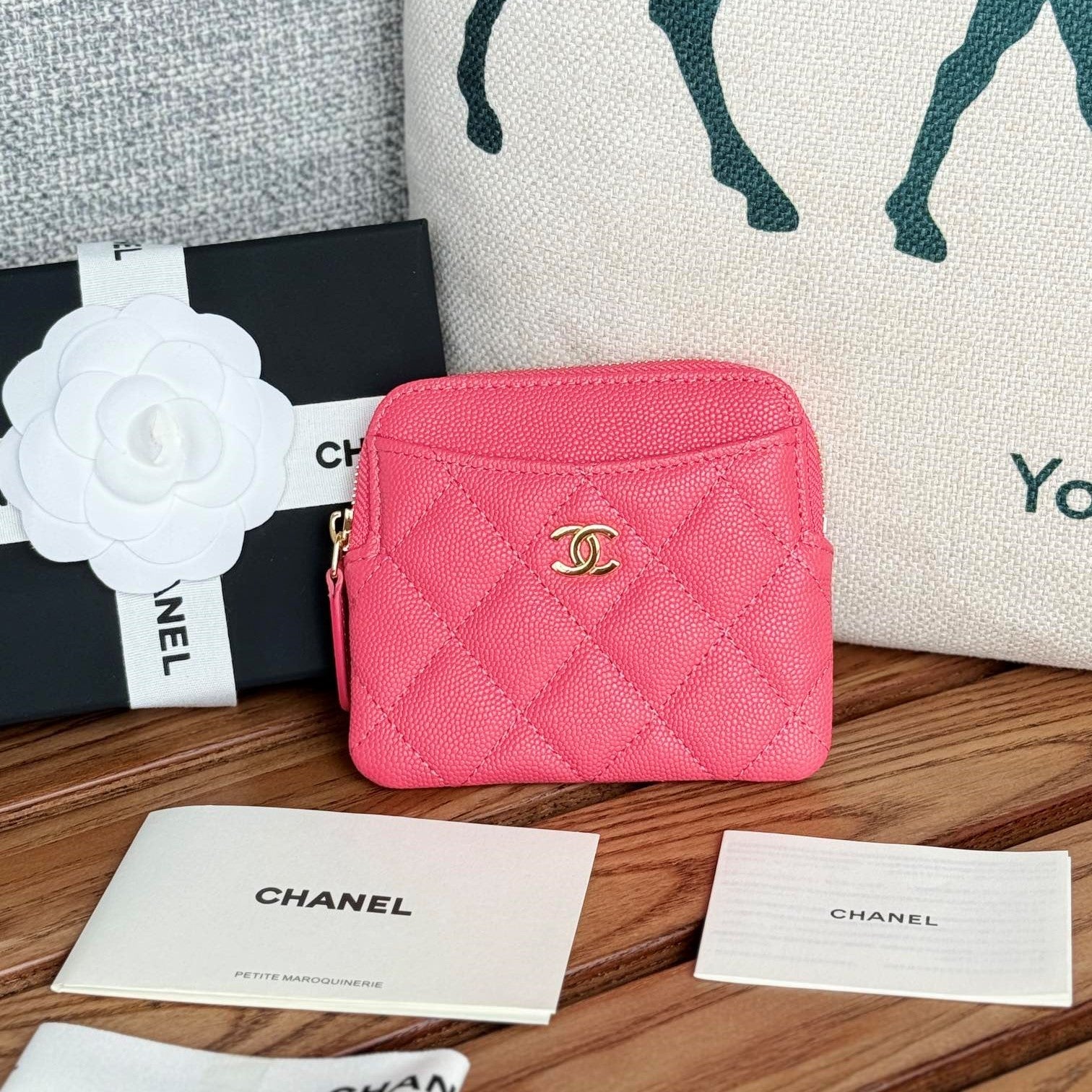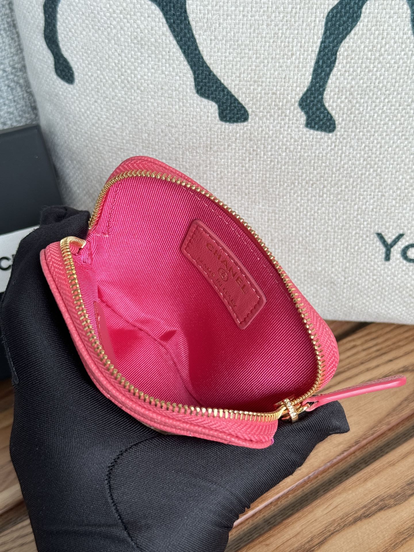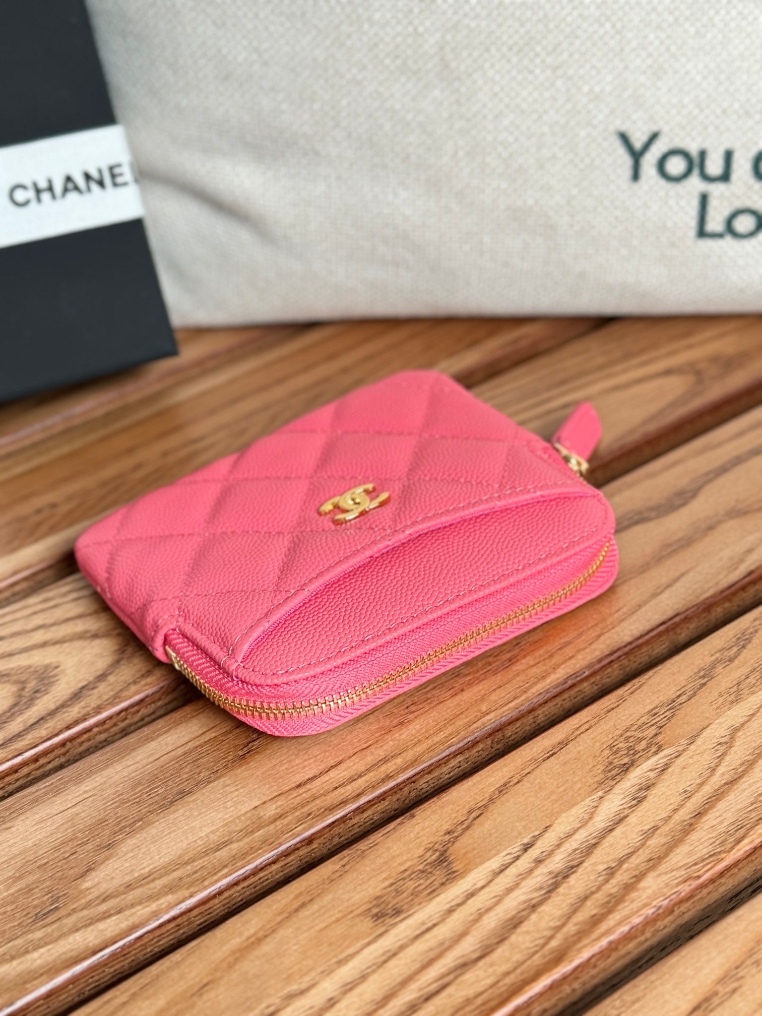 CC Zip Card Holder Wallet Pink Gold Metal Caviar 240613