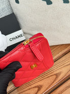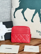 CC Zip Card Holder Wallet Red Gold Metal Caviar 240609