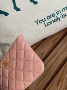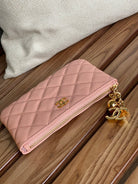 cc zipped wallet 14cm light pink caviar gold hardware