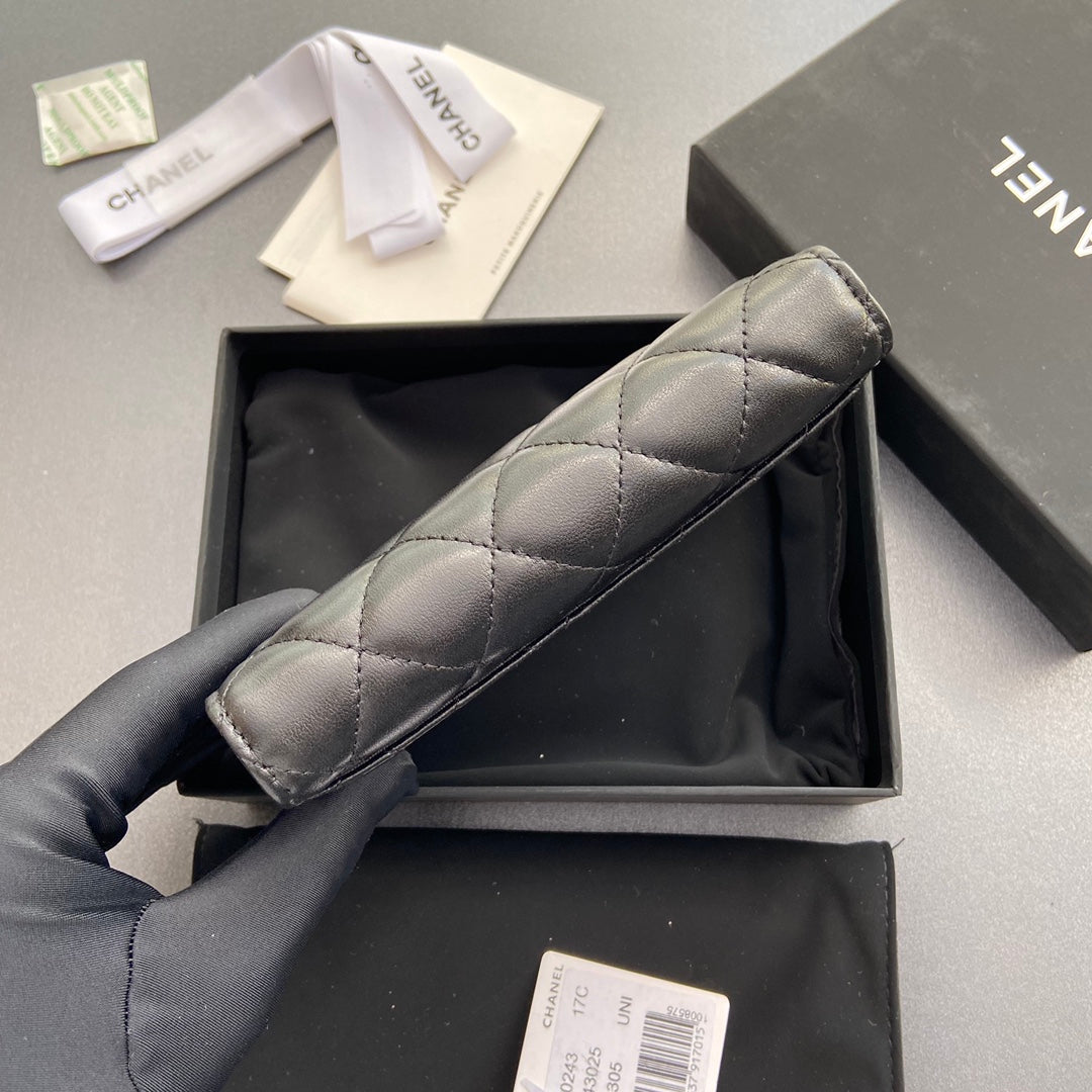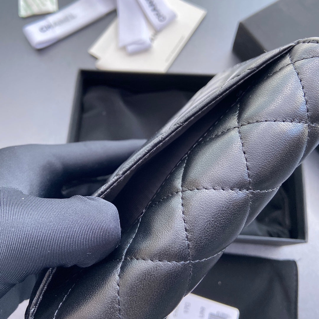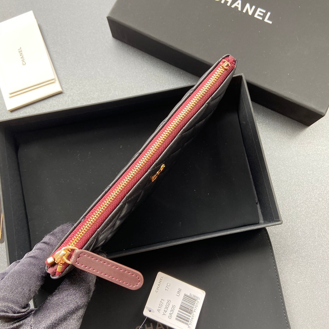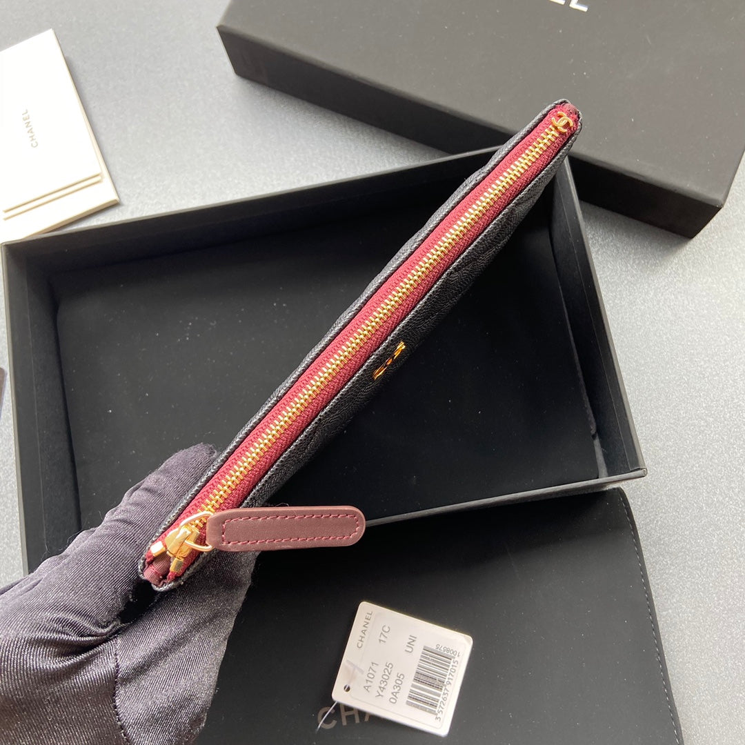 cc 19 zipped coin purse 11cm black lambskin gold hardware