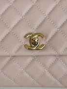 coco handle flap bag 24cm pastel pink red quilted caviar leather