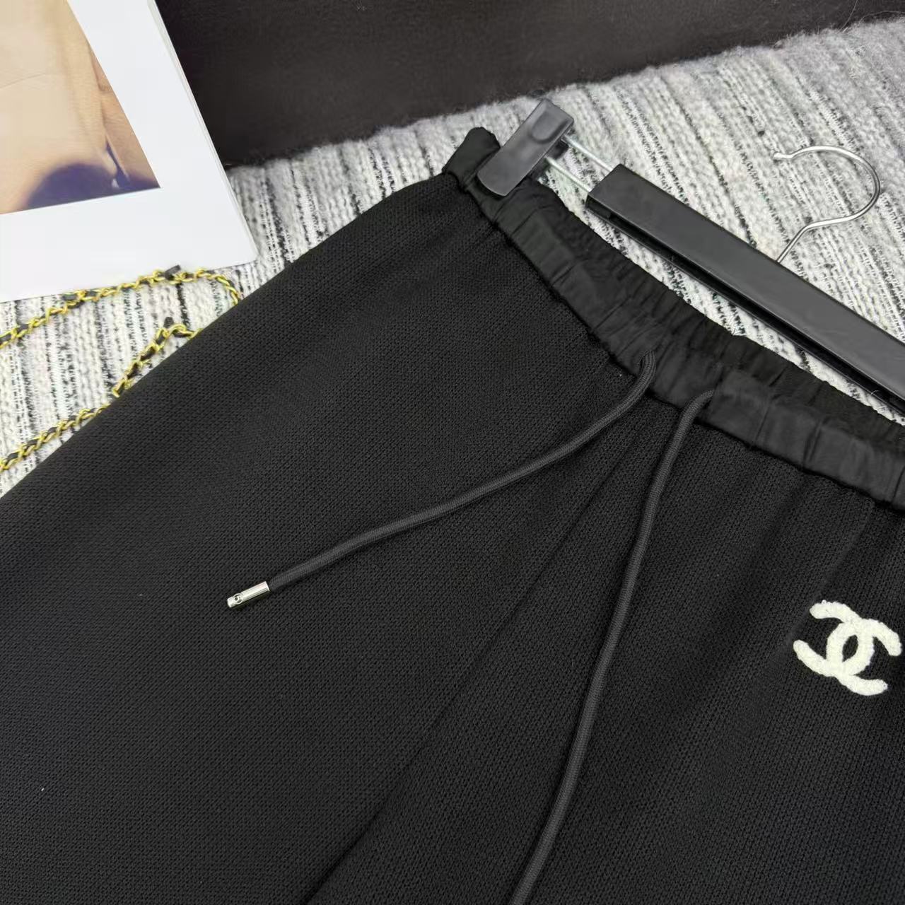Chanel 2025 Gold Buckle Two-Piece Skirt Black Woven Tweed Fabric 319481