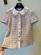 CC 25 Doll Collar Top Pink Green Tweed Fabric