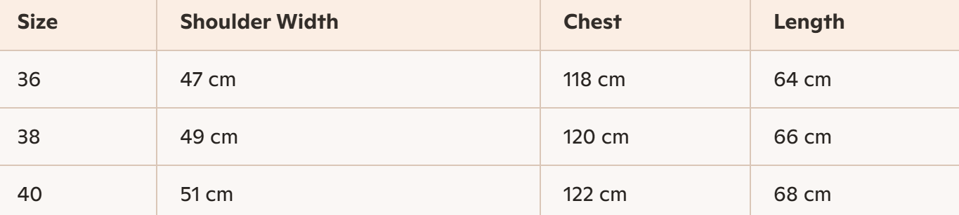 - Size : 36, 38, 40
