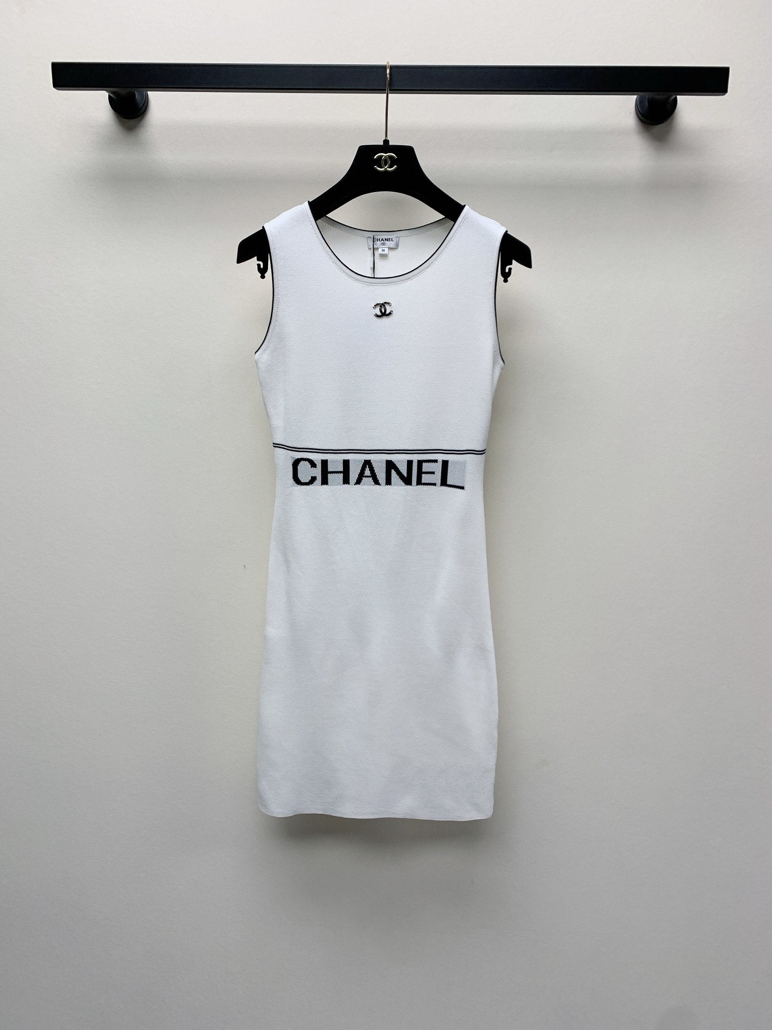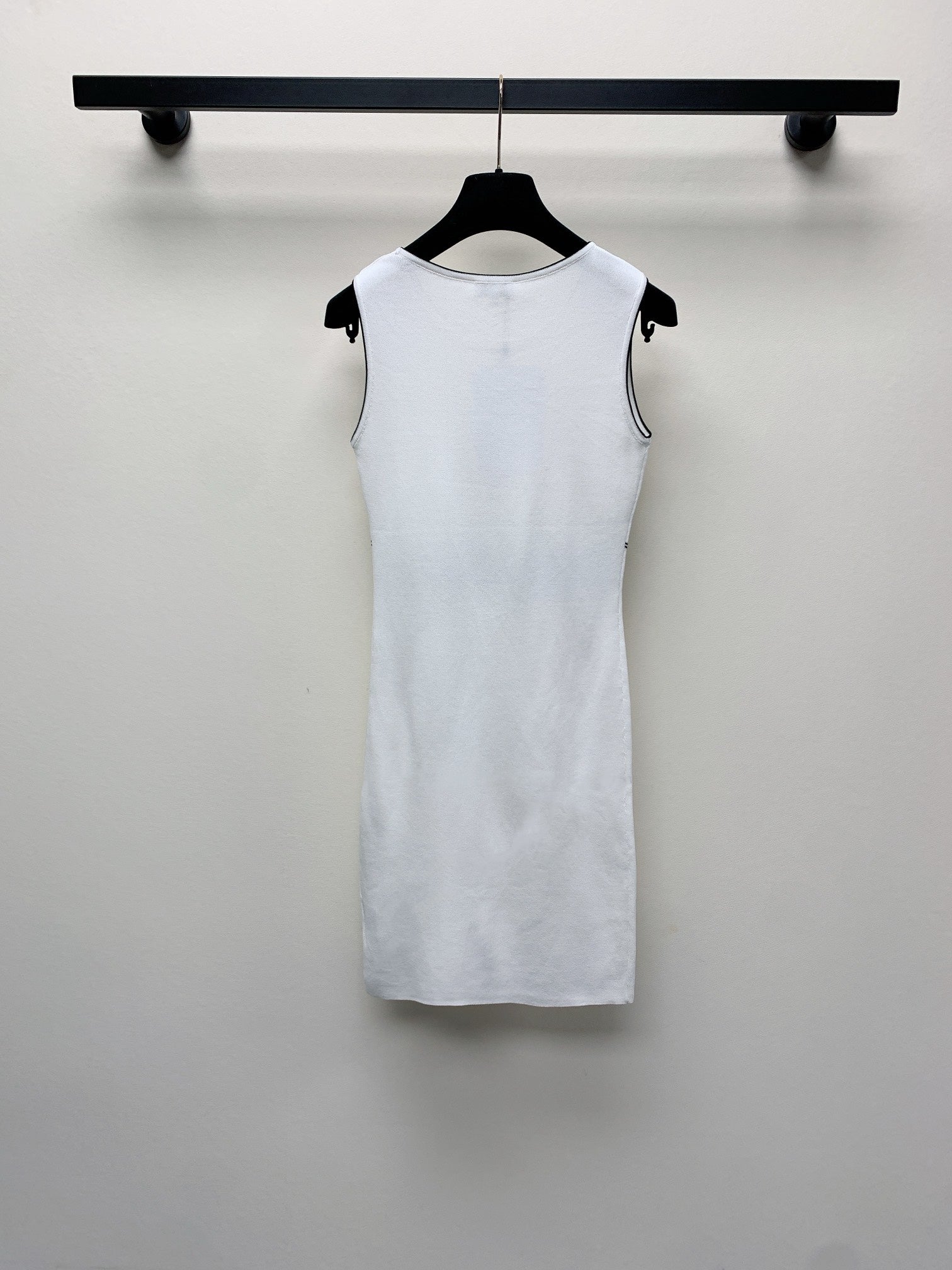 CC 25 Round Neck Knitted Embroidered Logo Vest Dress in White 277584