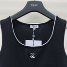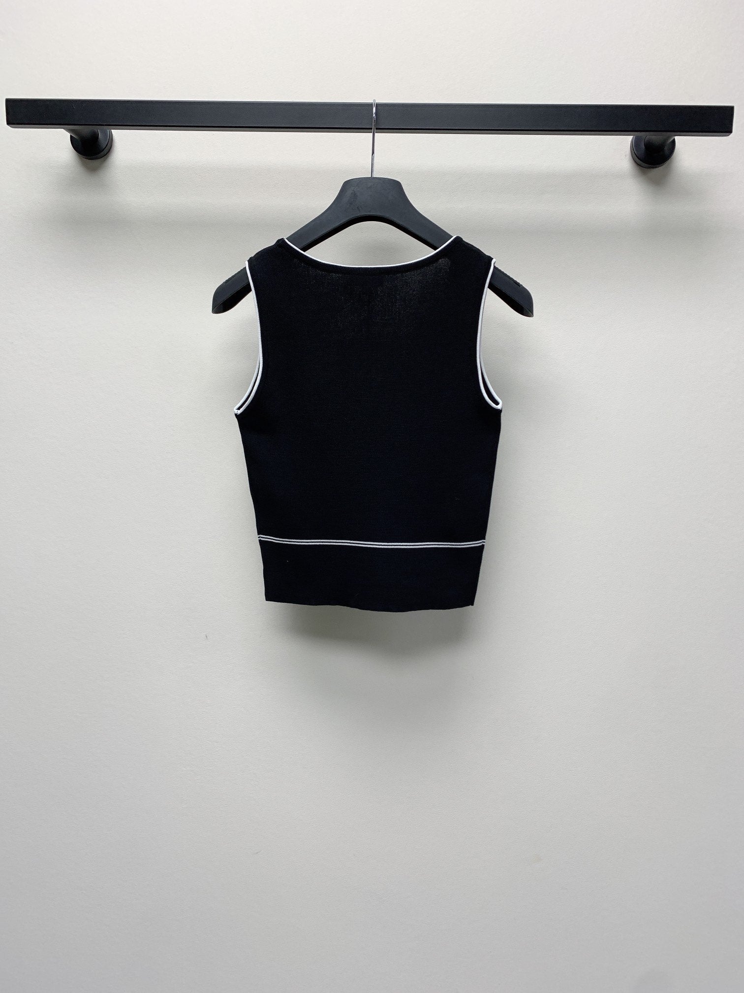 CC 25 Round Neck Knitted Embroidered Logo Vest in Black 277577