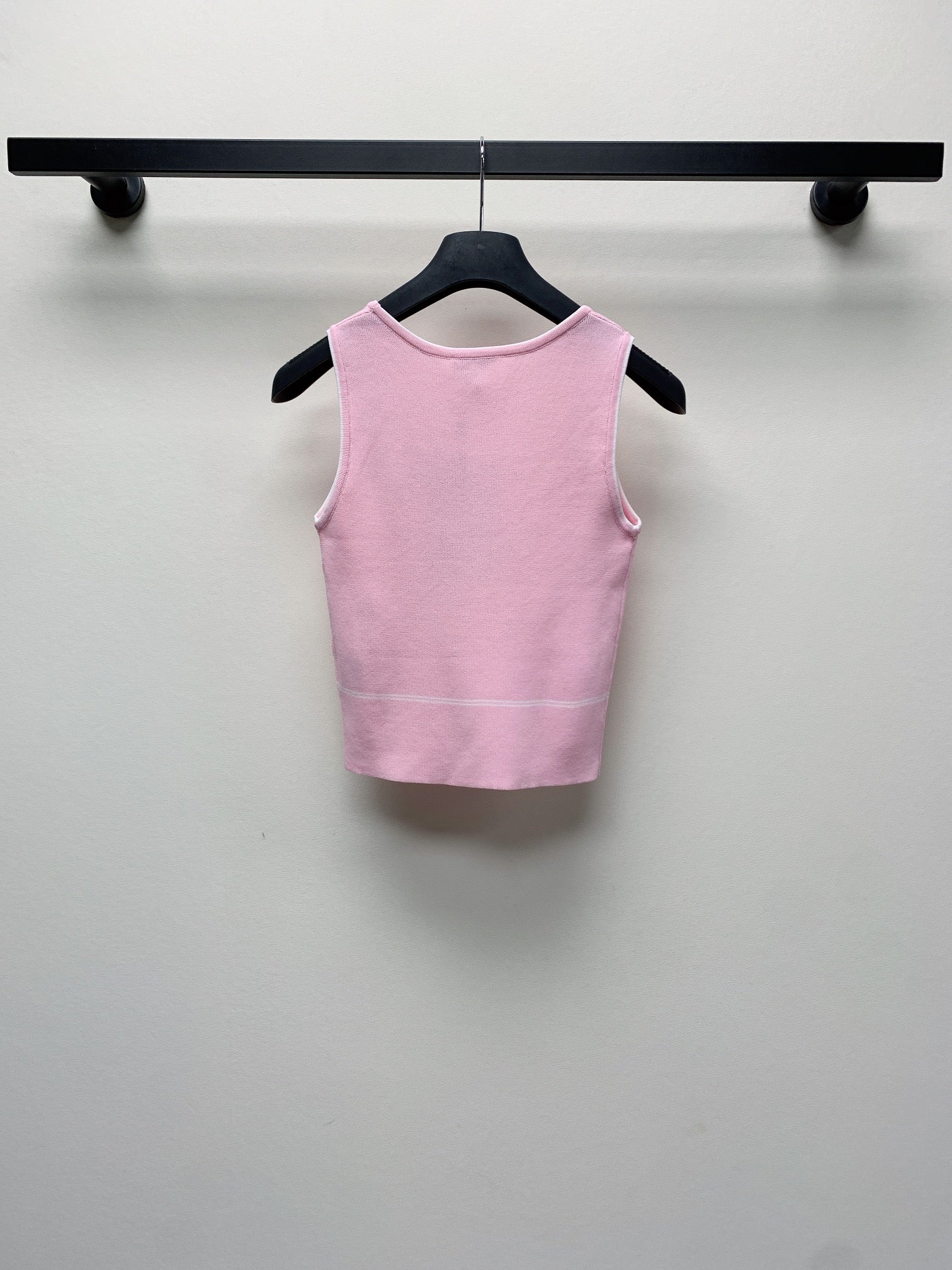 CC 25 Round Neck Knitted Embroidered Logo Vest in Pink 277576
