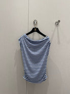 CC 25 Striped One-shoulder Short-sleeved T-shirt Cotton