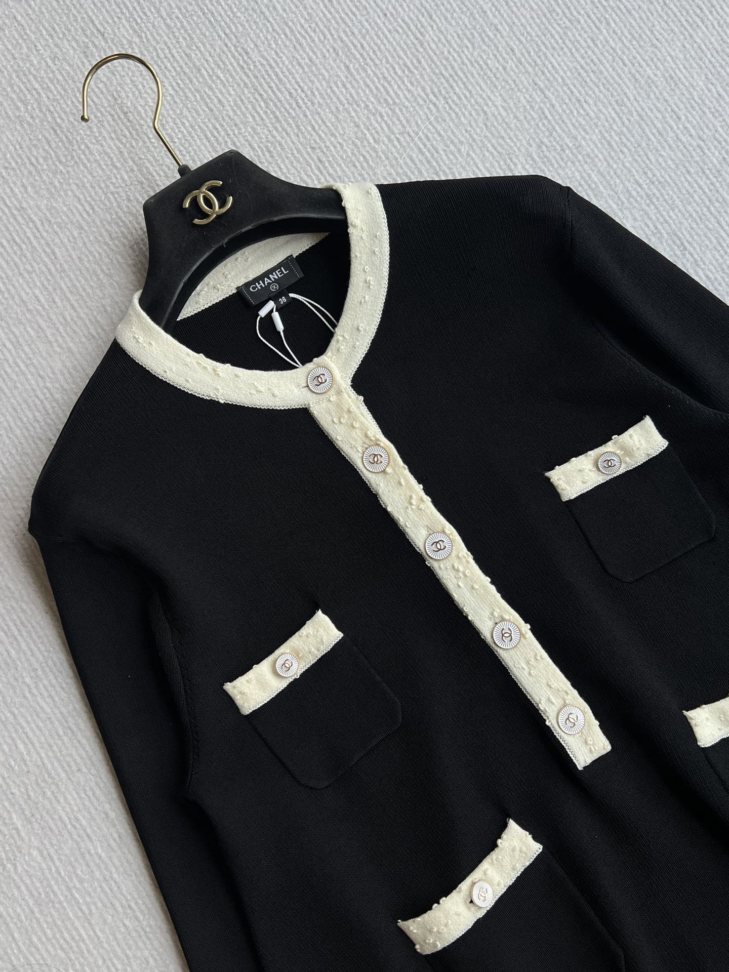 CC 25A Babydoll Dress Viscose Pure Black With White Threaded Edging 277247