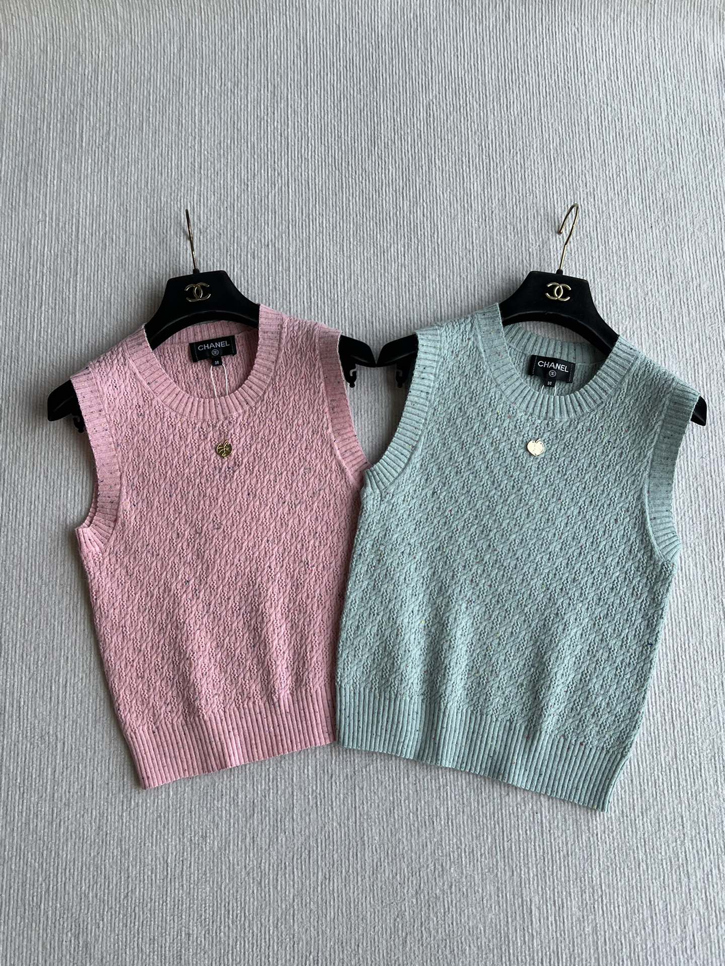 CC 25A Round Neck Sleeveless Vest In Pink Wool 269549