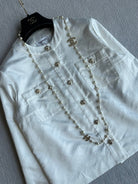 CC 25SS Round Neck Jacket in White Silk Jacquard 277155