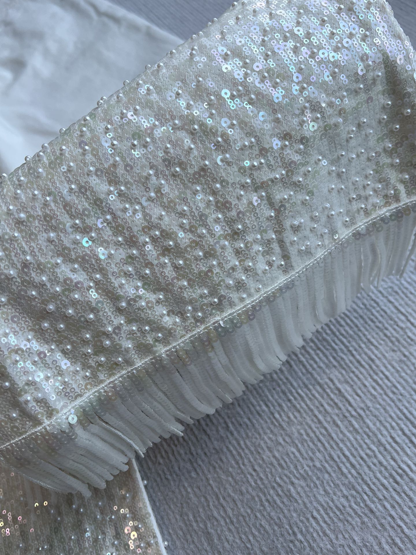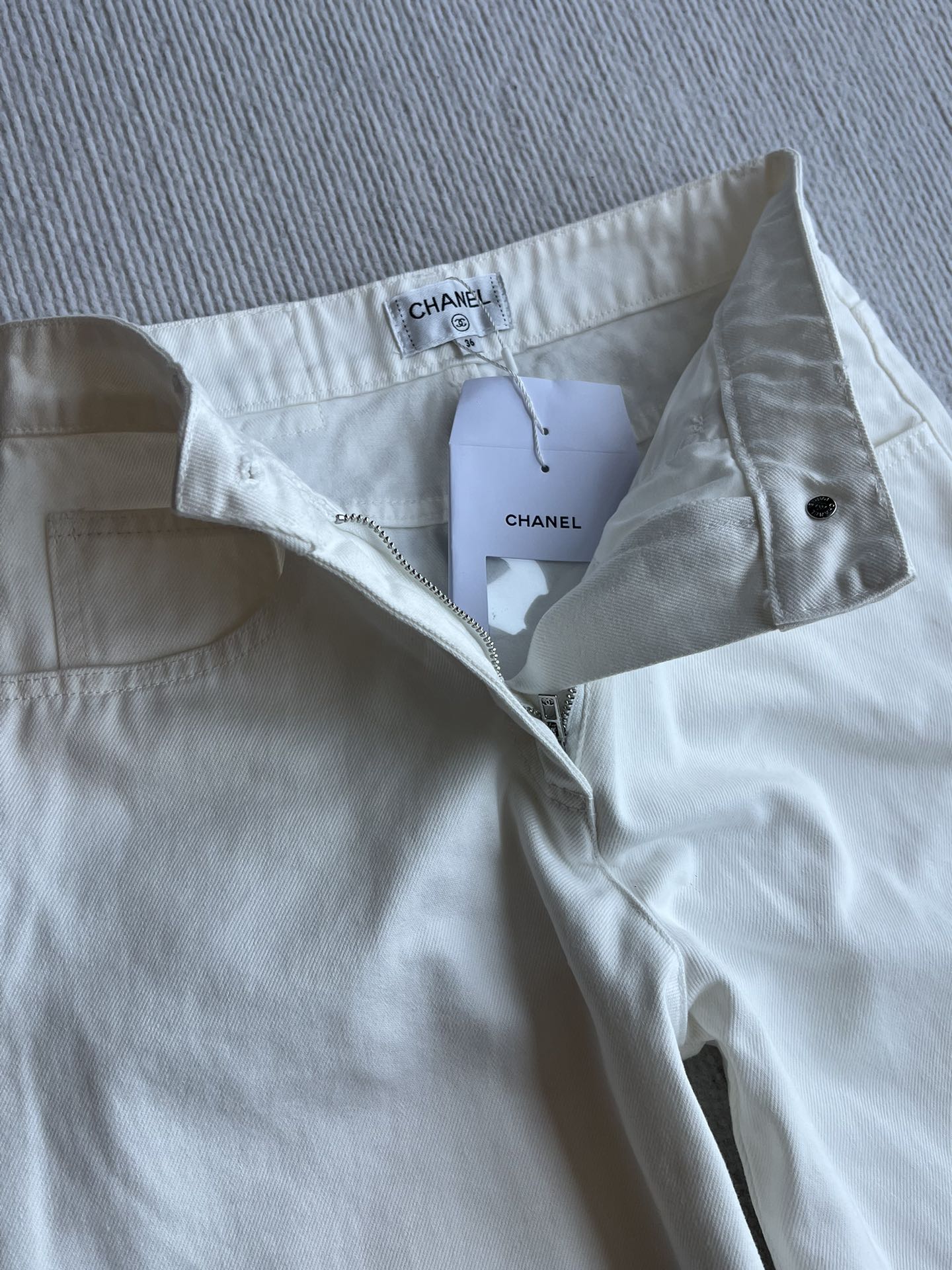 CC 25SS Wide-Leg Pants Beaded Tassel White Denim 277238