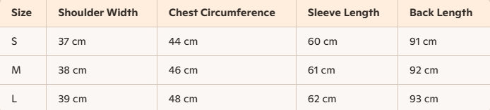 - Size : S, M, L