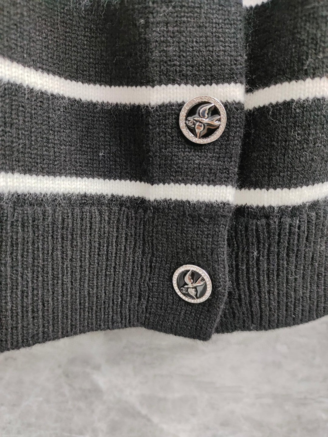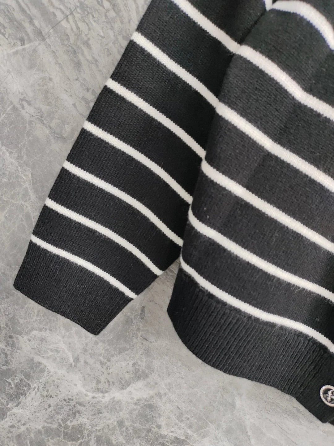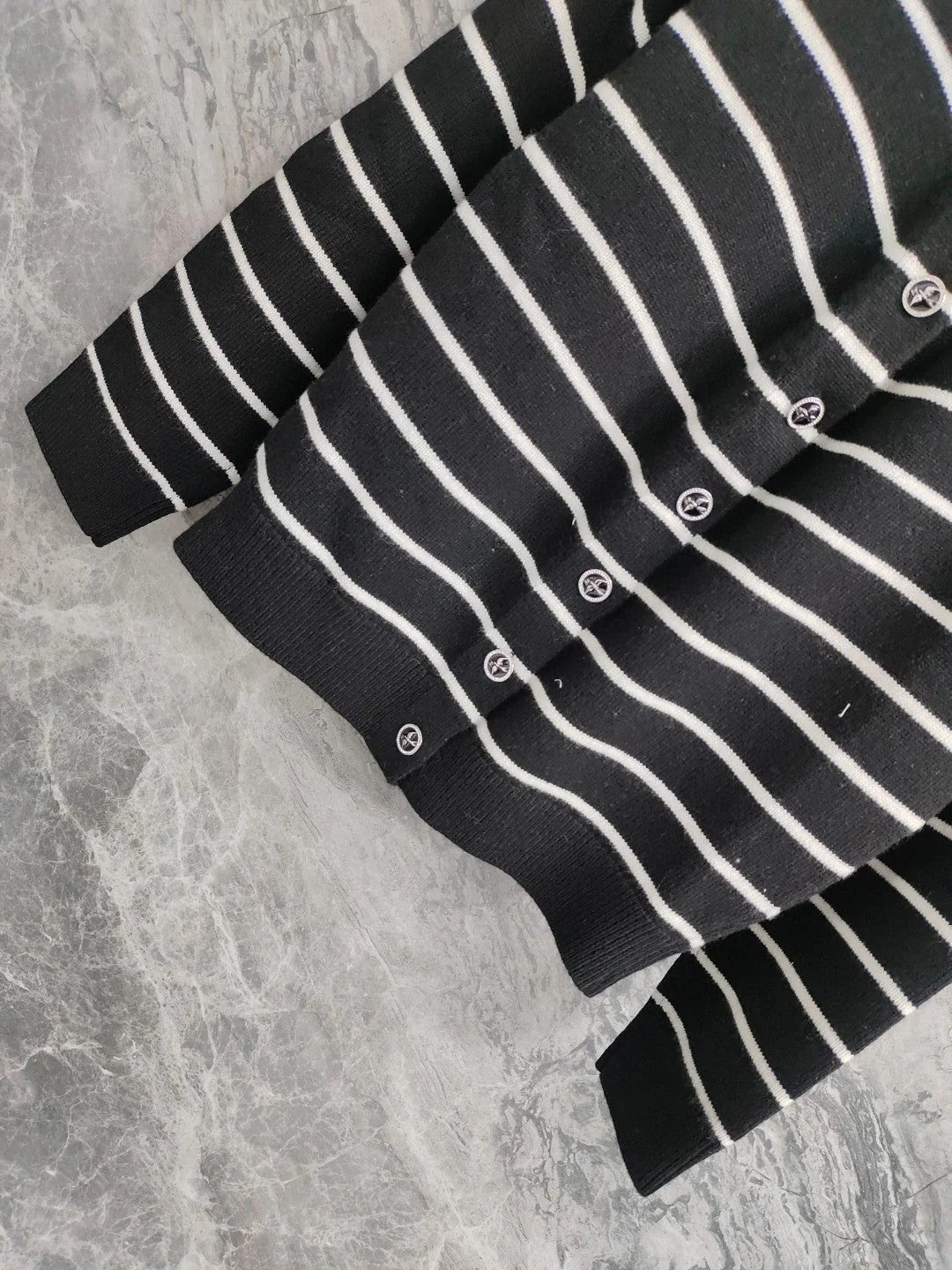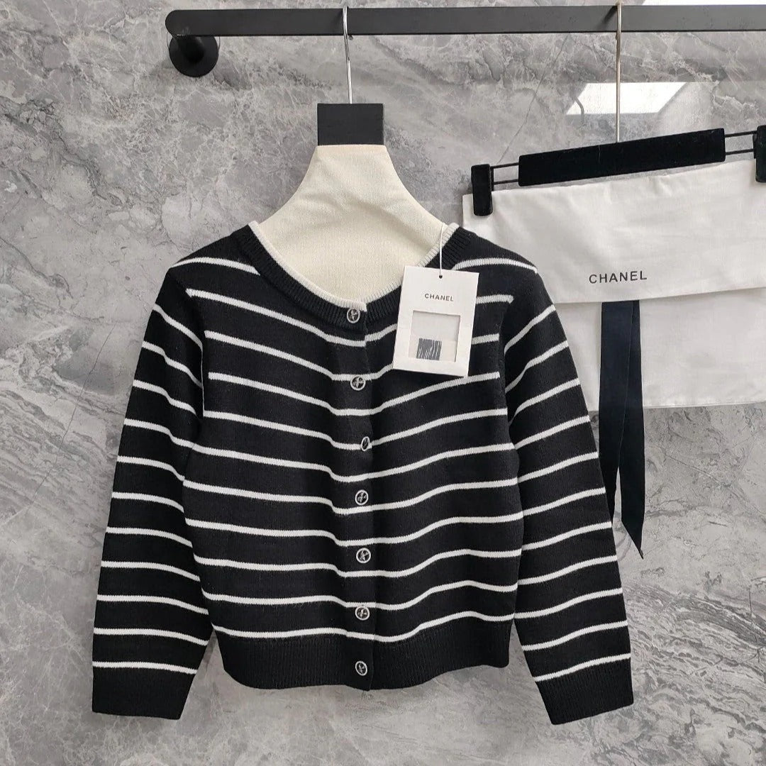 CC NAUTICAL CARDIGAN IN BLACK AND WHITE COTTON KNIT WITH STRIPED DESIGN WITH CC BUTTONS
