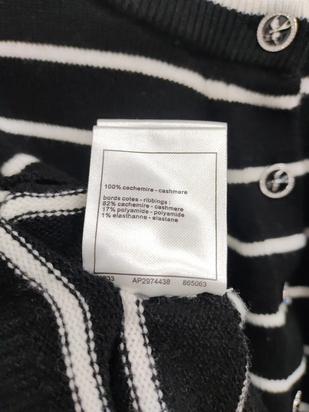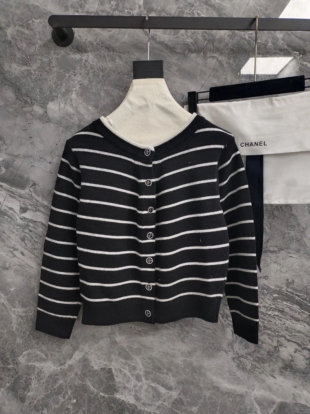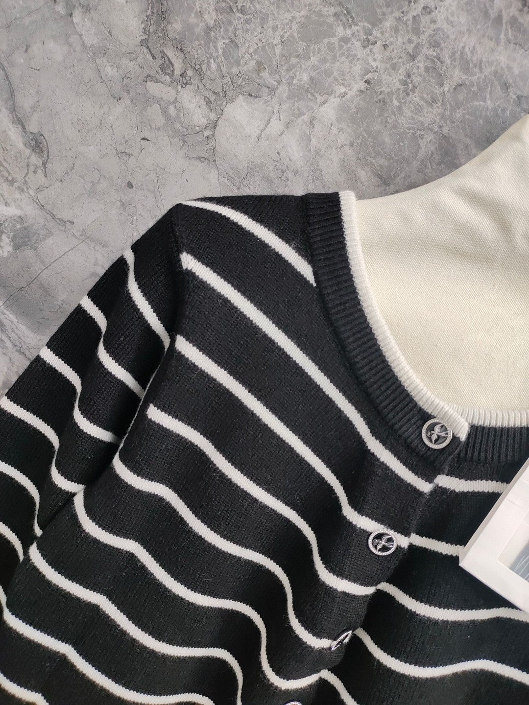 CC NAUTICAL CARDIGAN IN BLACK AND WHITE COTTON KNIT WITH STRIPED DESIGN WITH CC BUTTONS