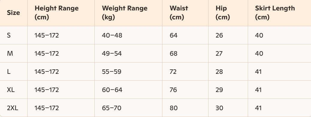 - For more information, please see the size guide below
