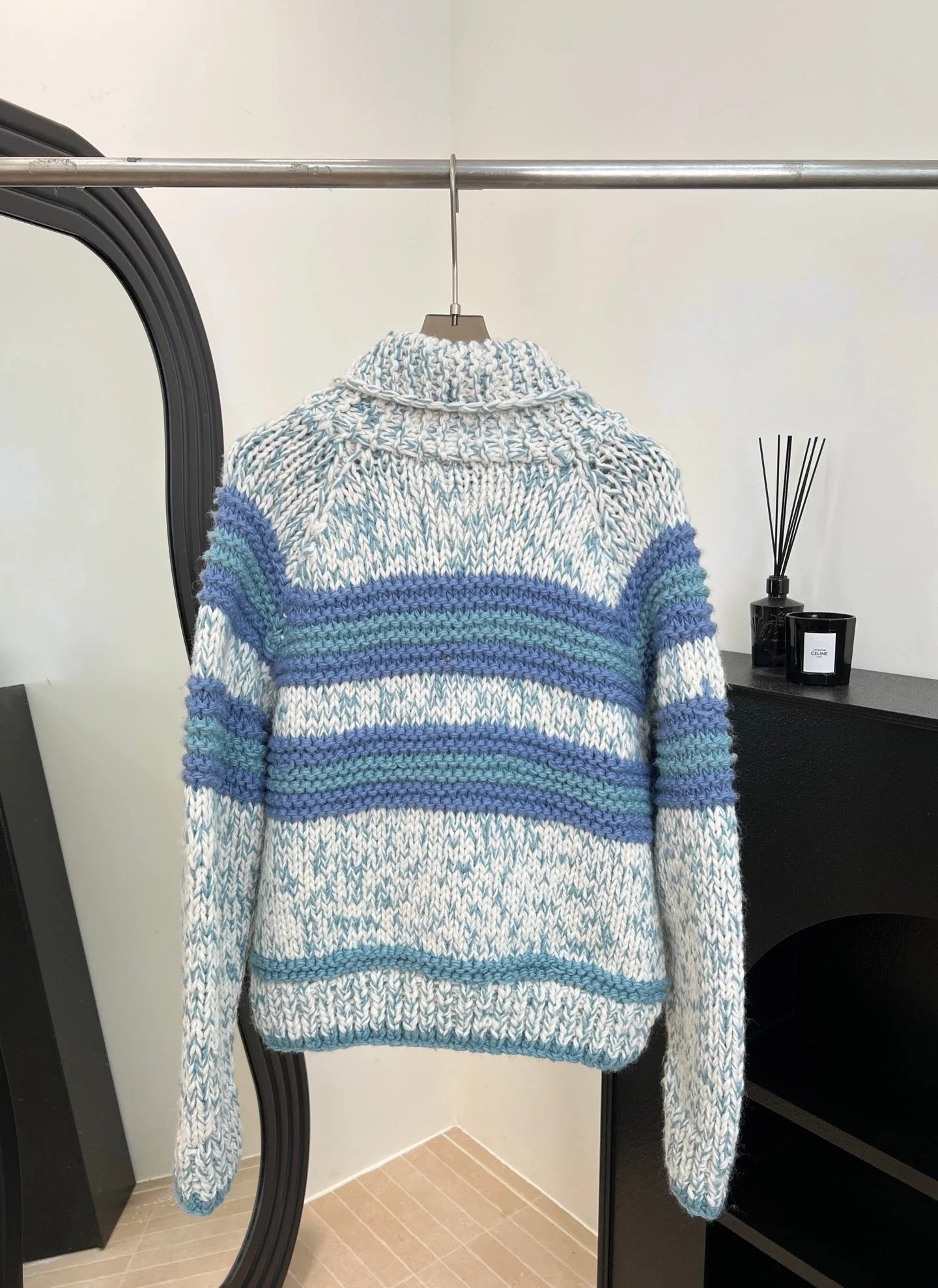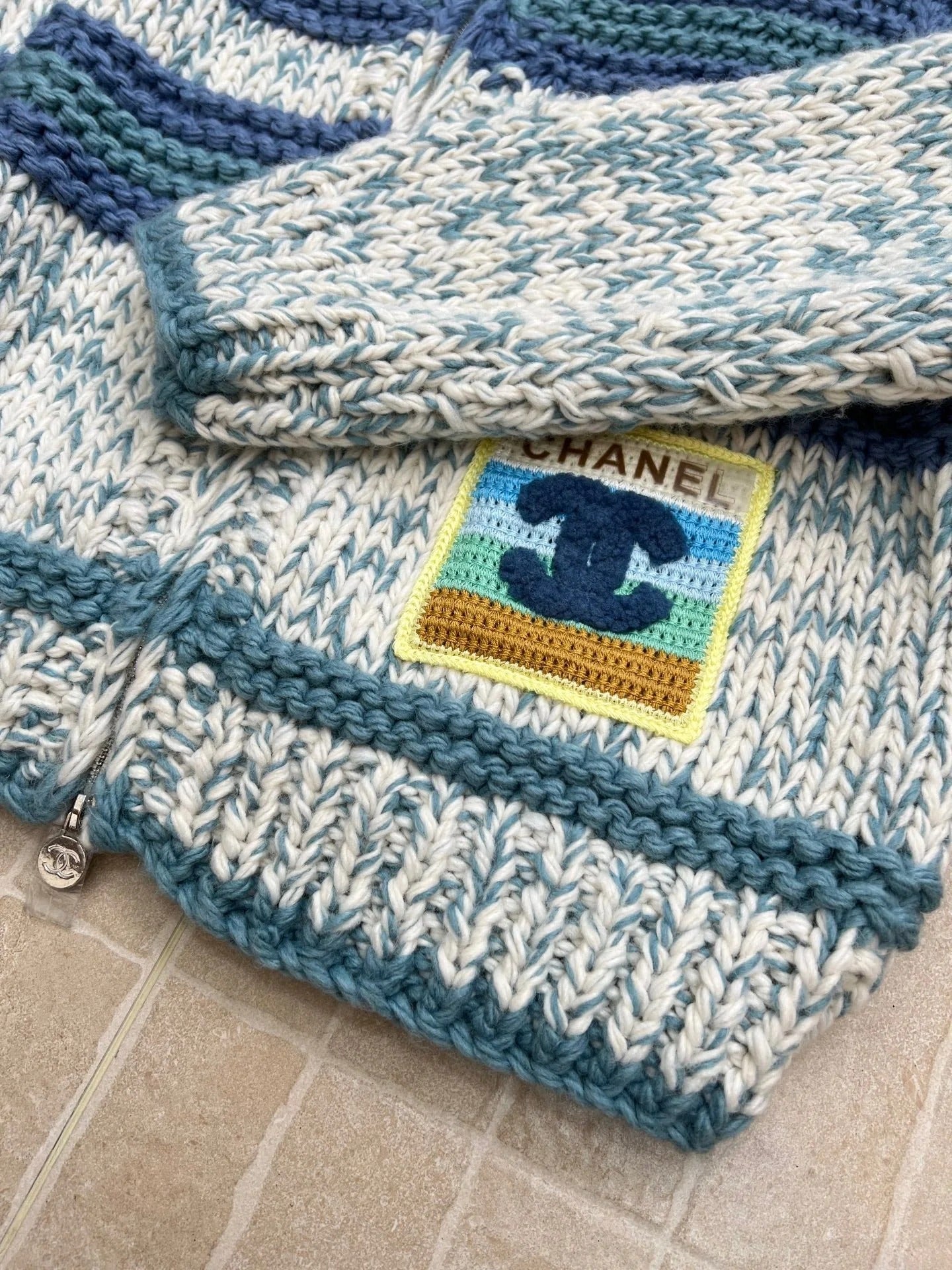 CHANEL 25S BLUE STRIPED CARDIGAN 620415