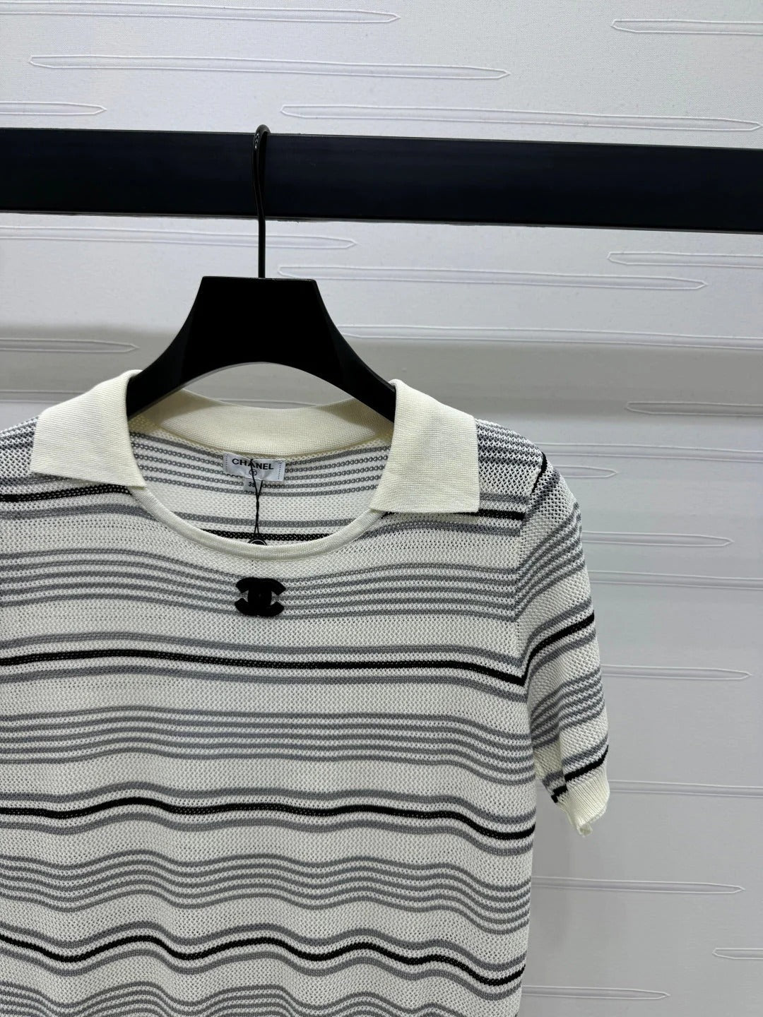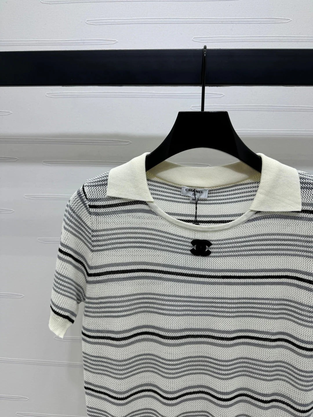 CHANEL 25S HOLLOW WOVEN POLO SHIRT 264075