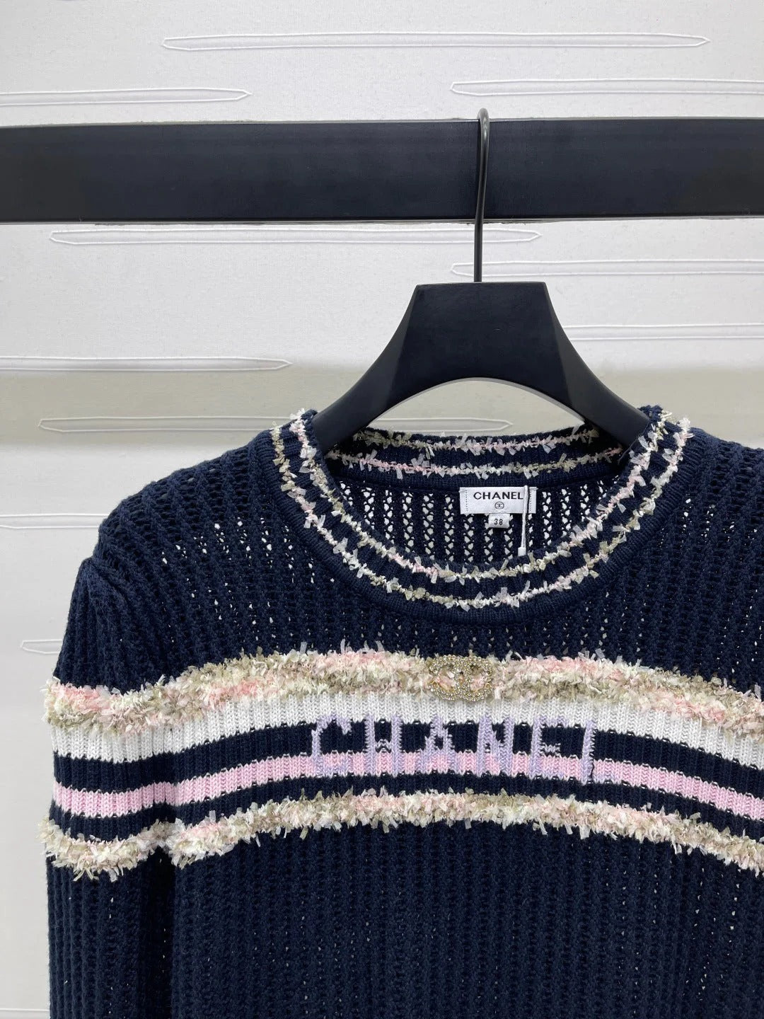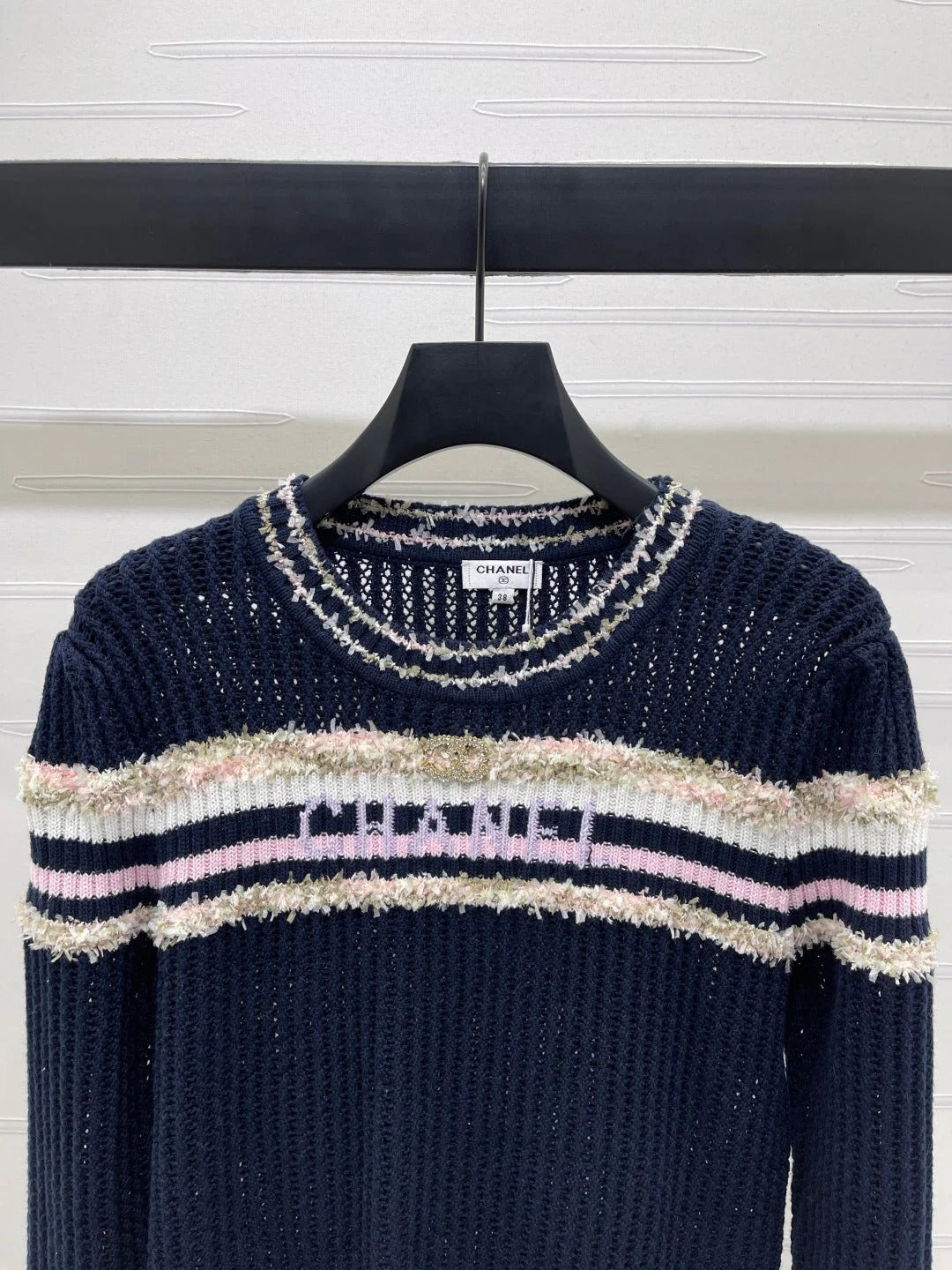 CHANEL 25S LONG SLEEVE OPEN-KNIT SWEATER STYLE 162