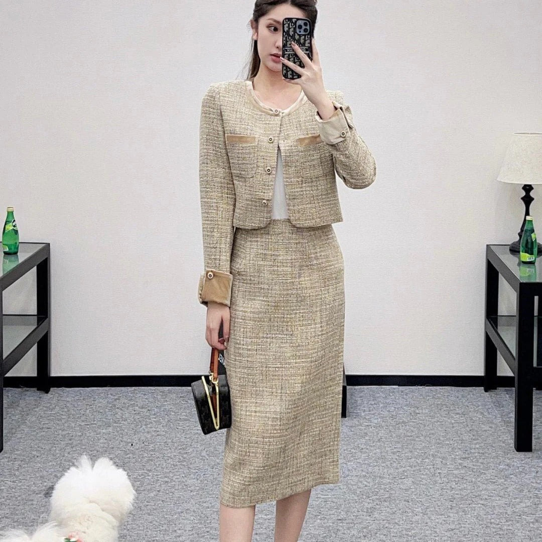 CHANEL 25S VELVET-TRIM JACKET AND SKIRT SET 398