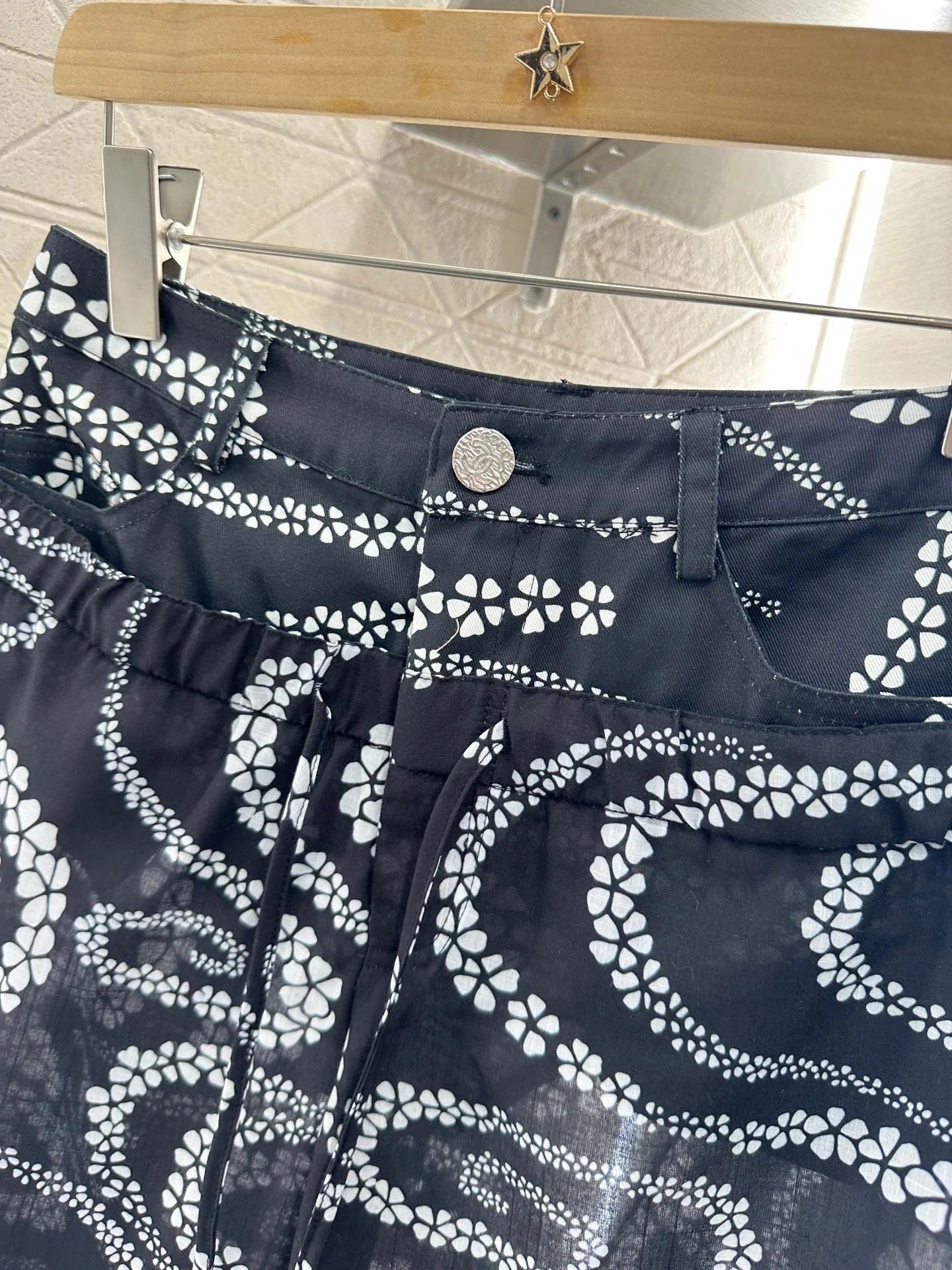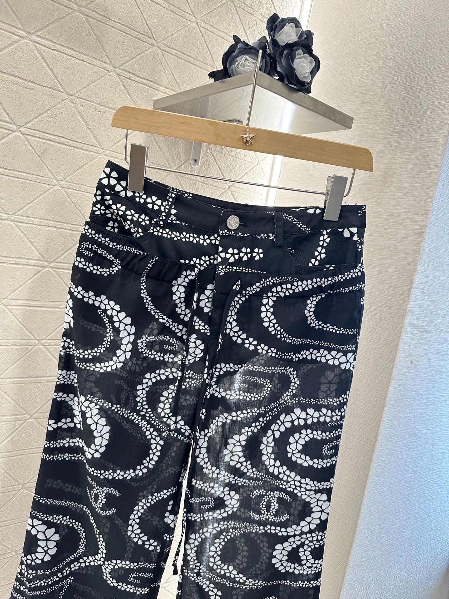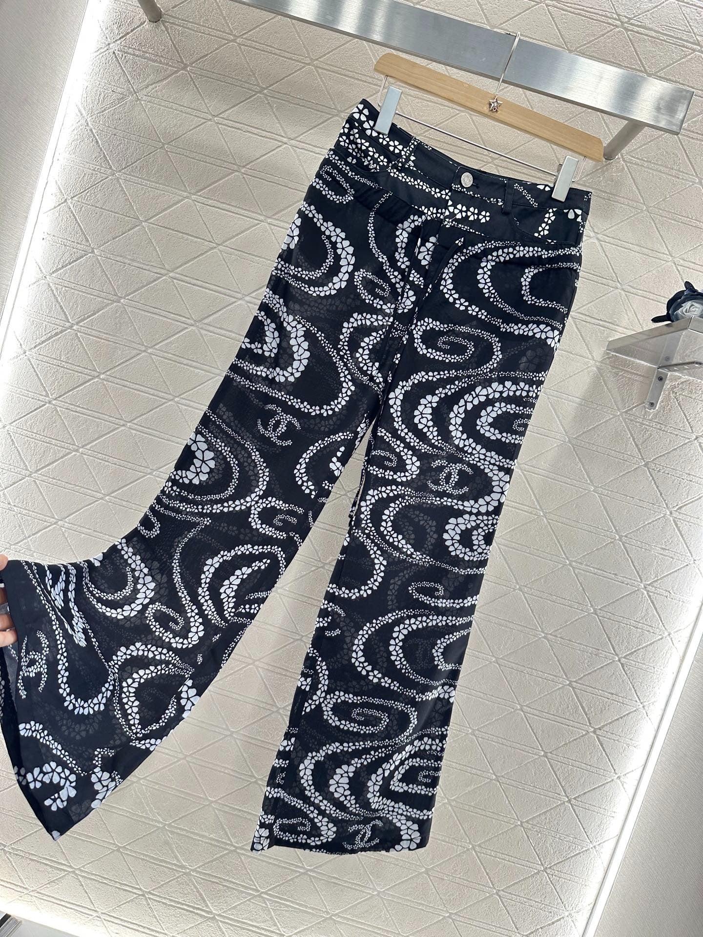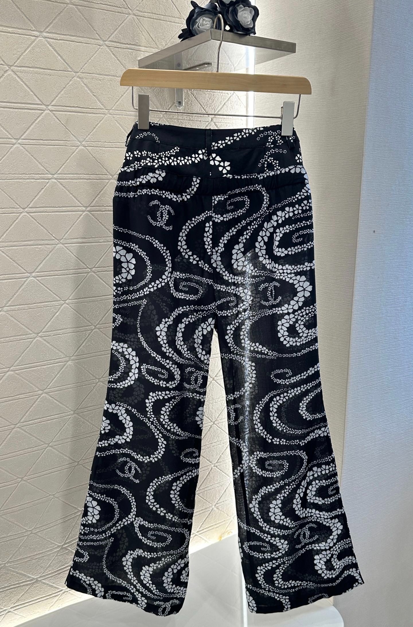 CHANEL BLACK PRINTED DENIM PANTS