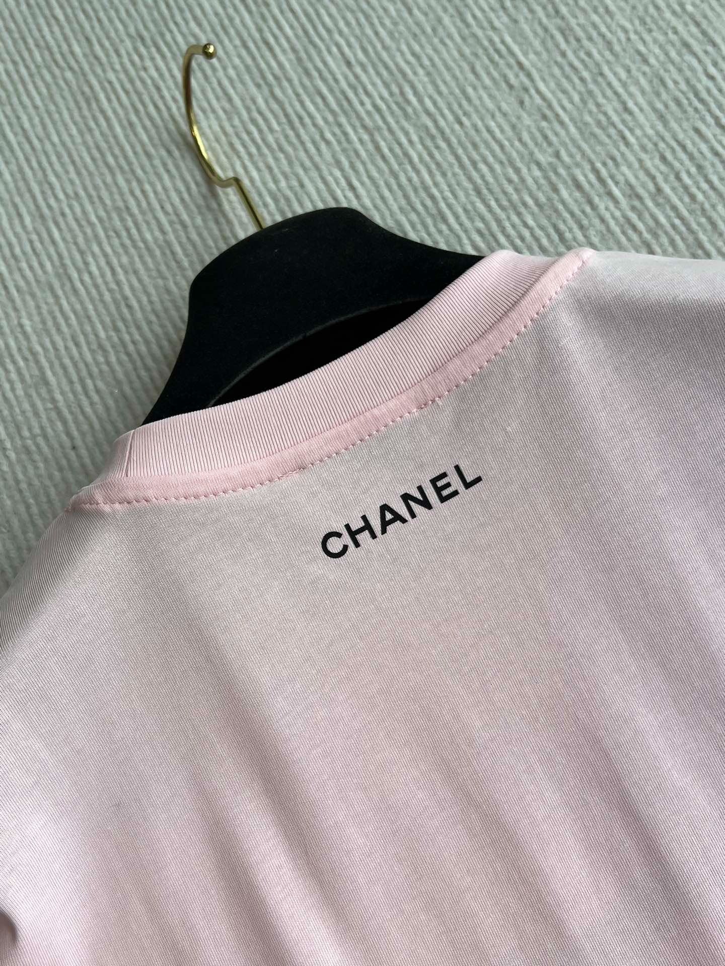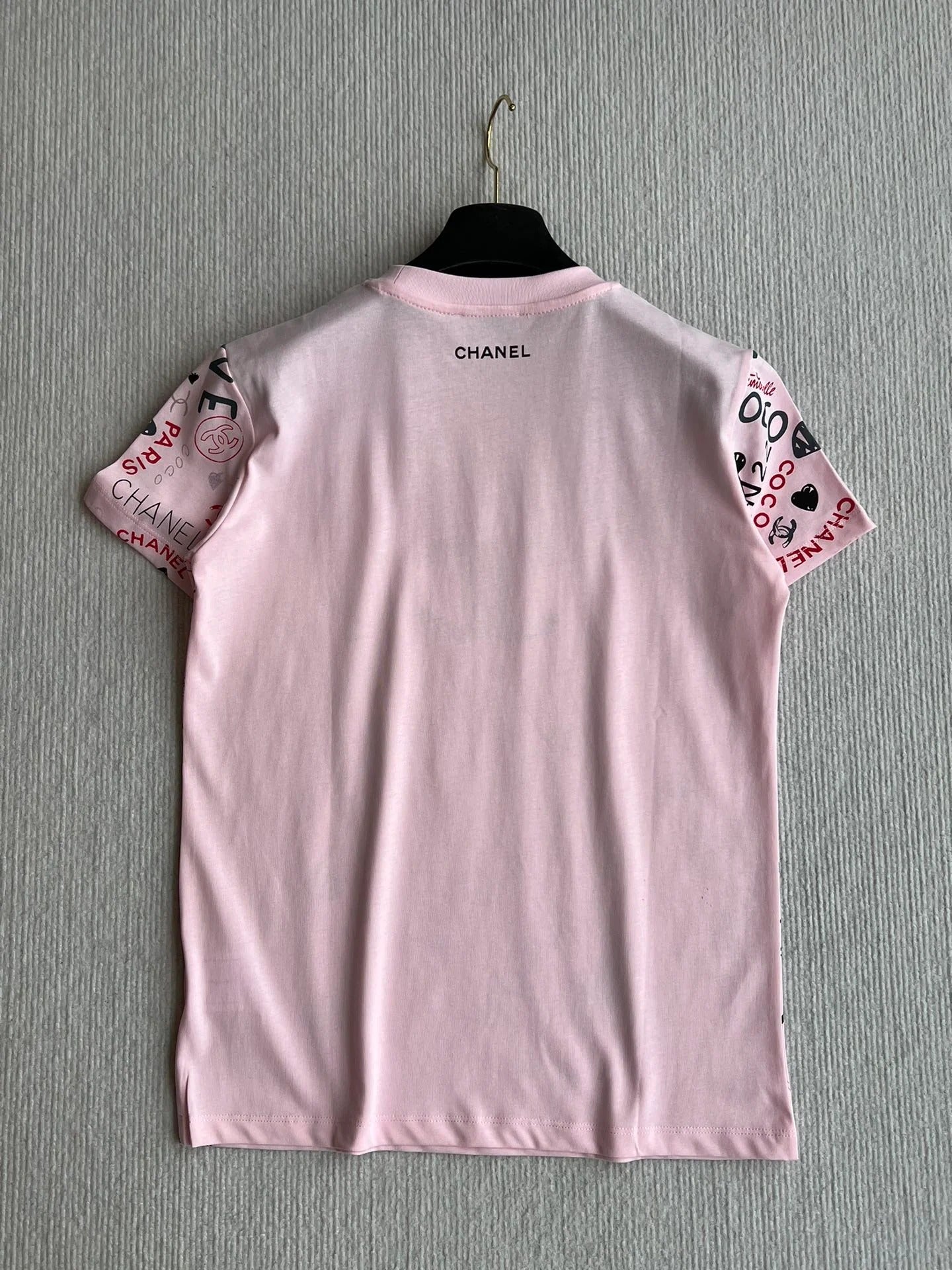 CHANEL PINK LOGO PRINT T-SHIRT
