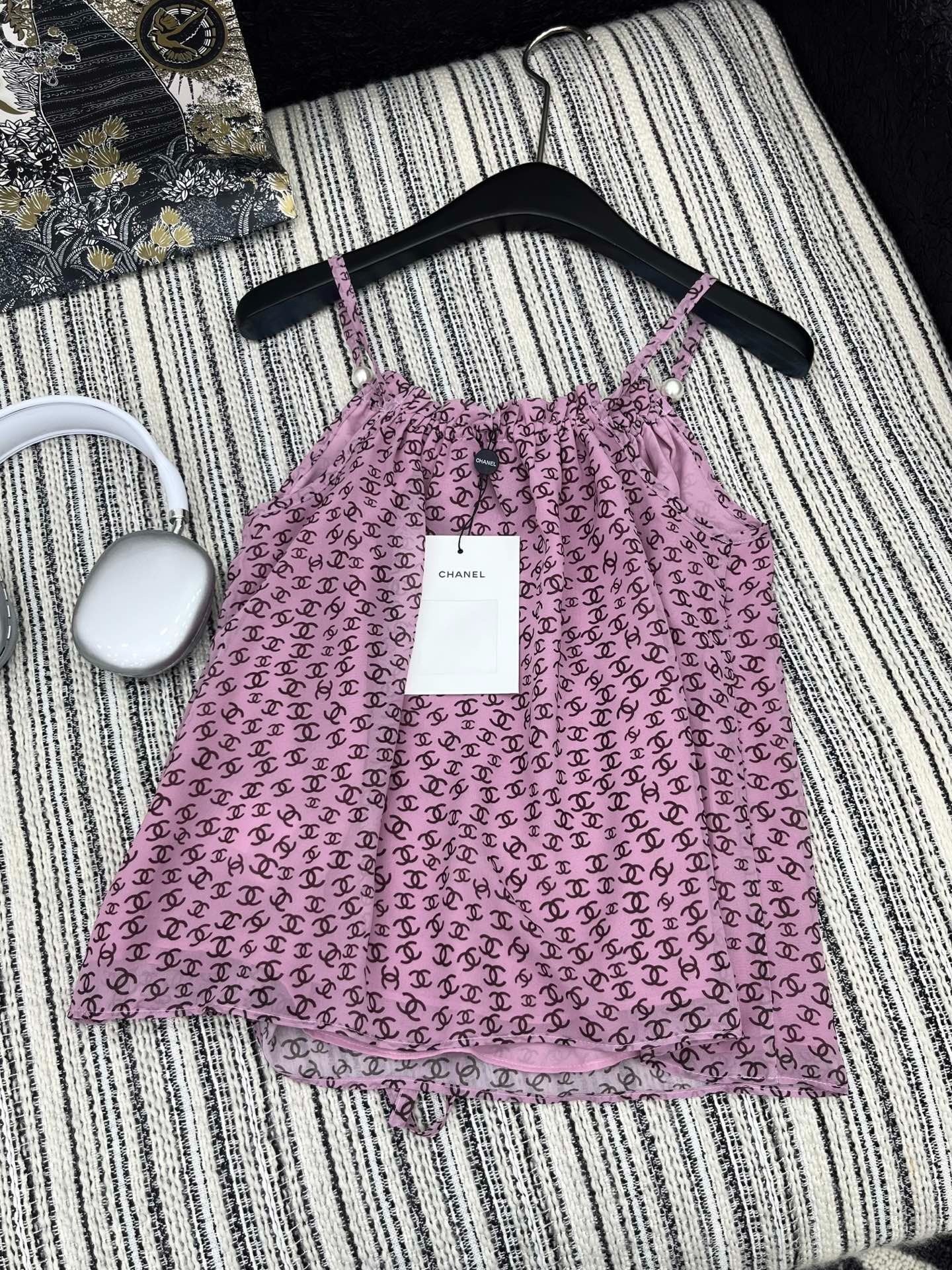 CHANEL PINK PEARL-EMBELLISHED CAMISOLE