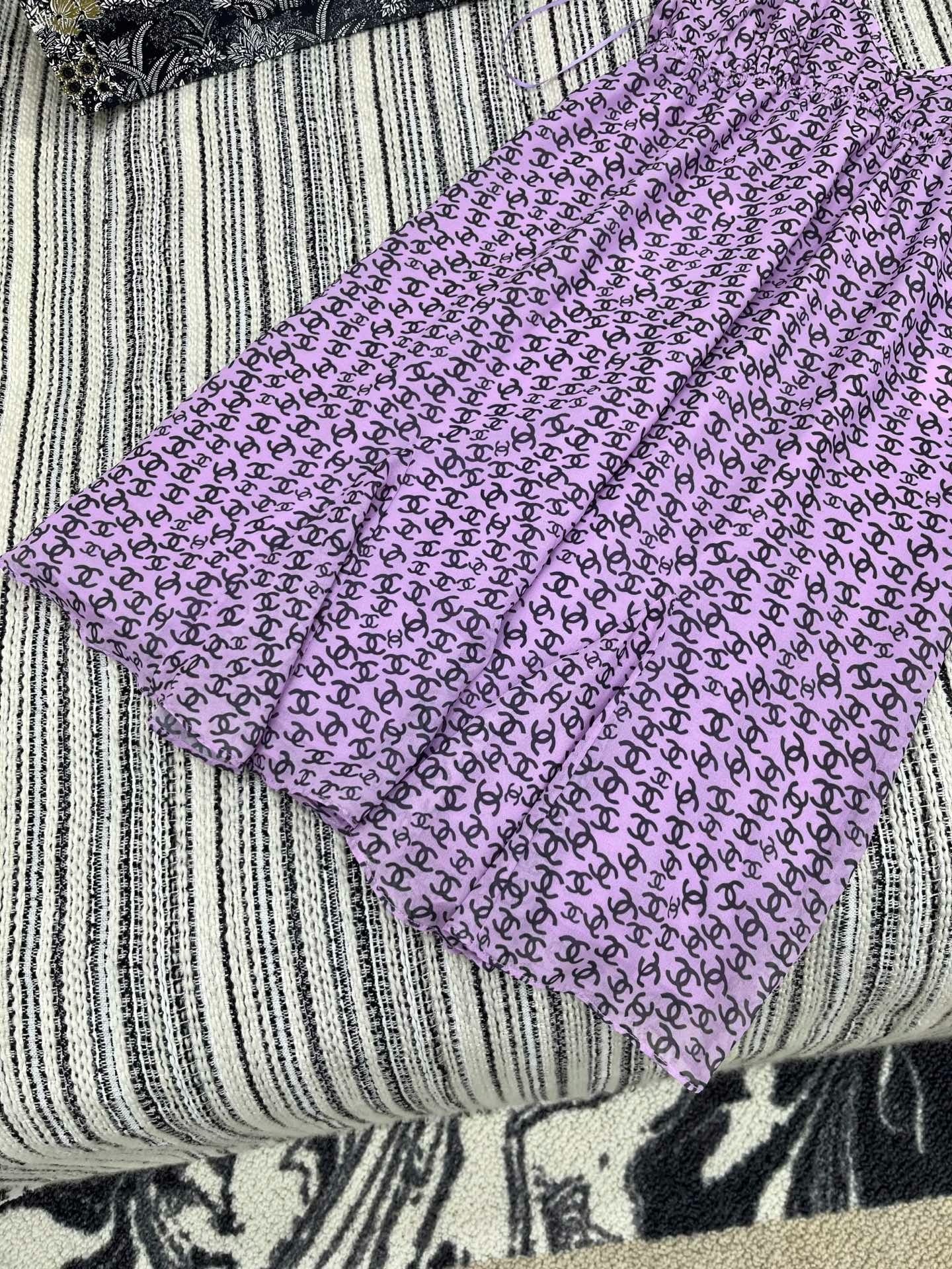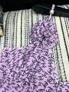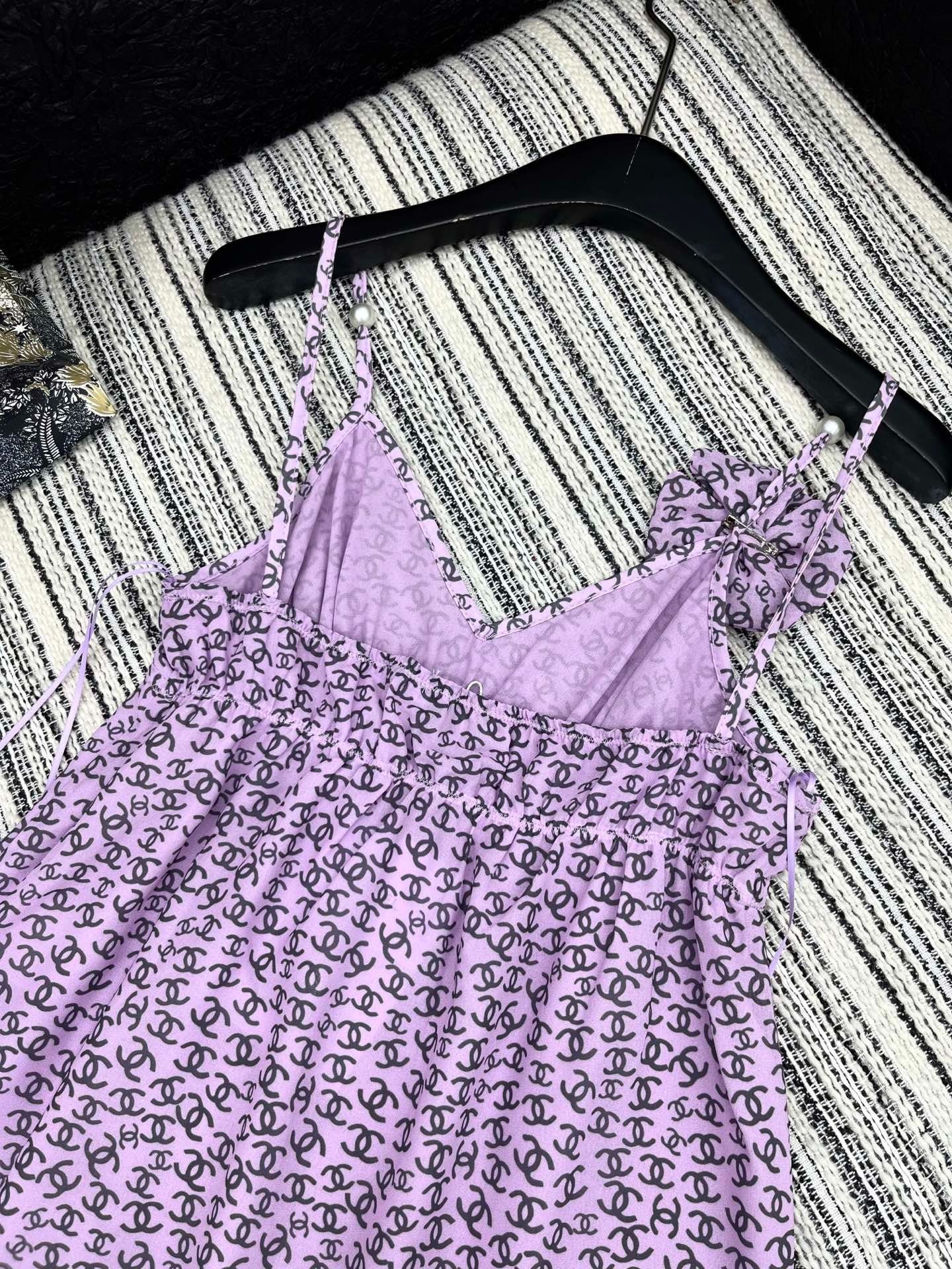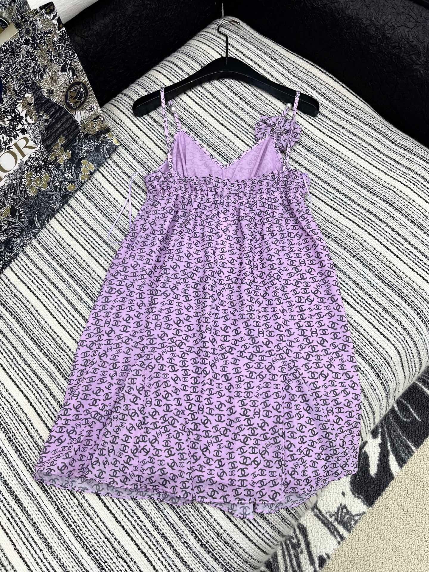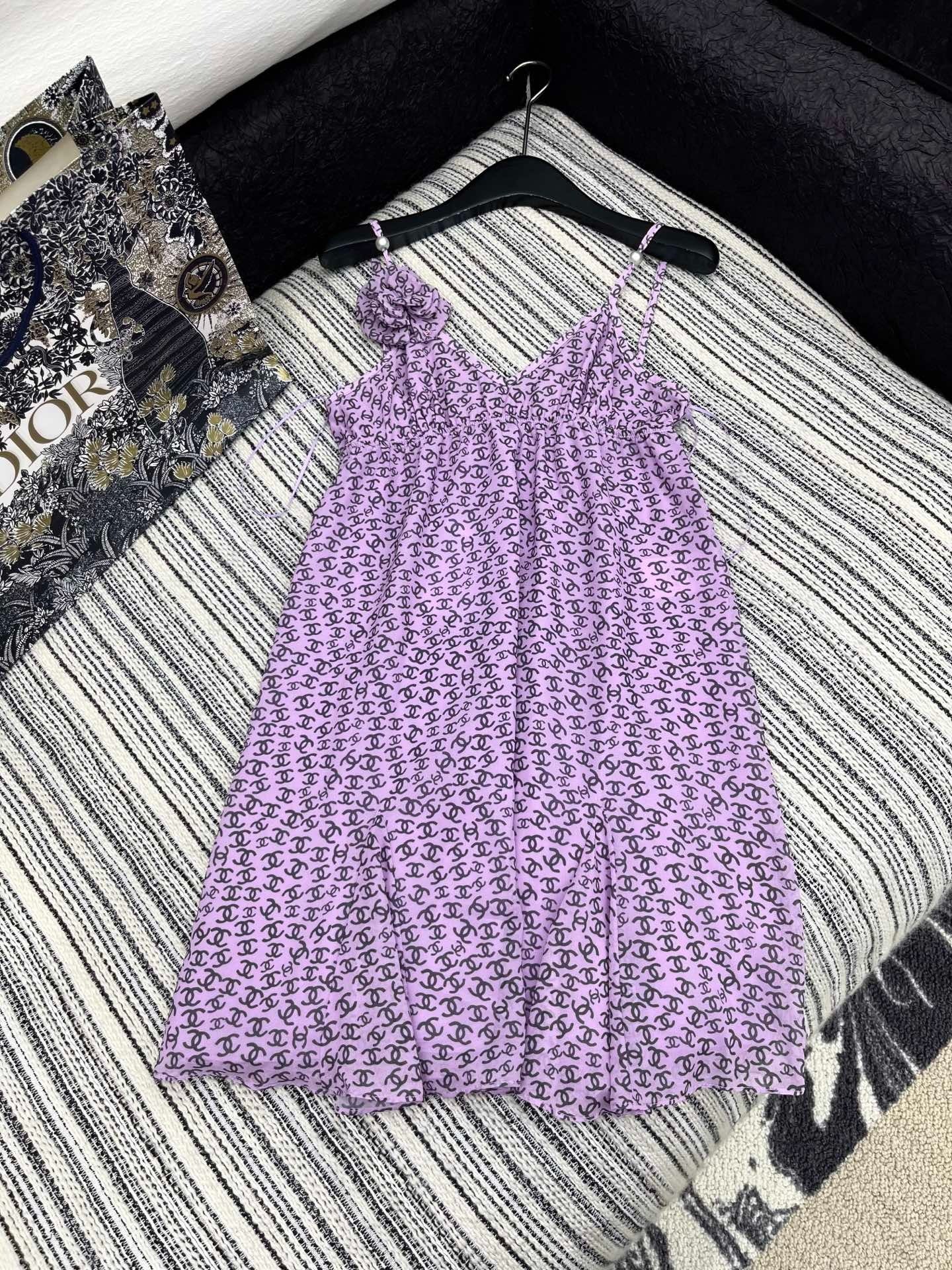 CHANEL PURPLE SILK CAMELLIA DRESS WITH PEARL DETAILS