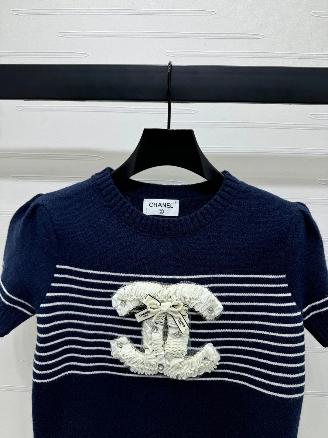 CHANEL SHORT-SLEEVE KNITTED PUFF-SLEEVE TOP 274951