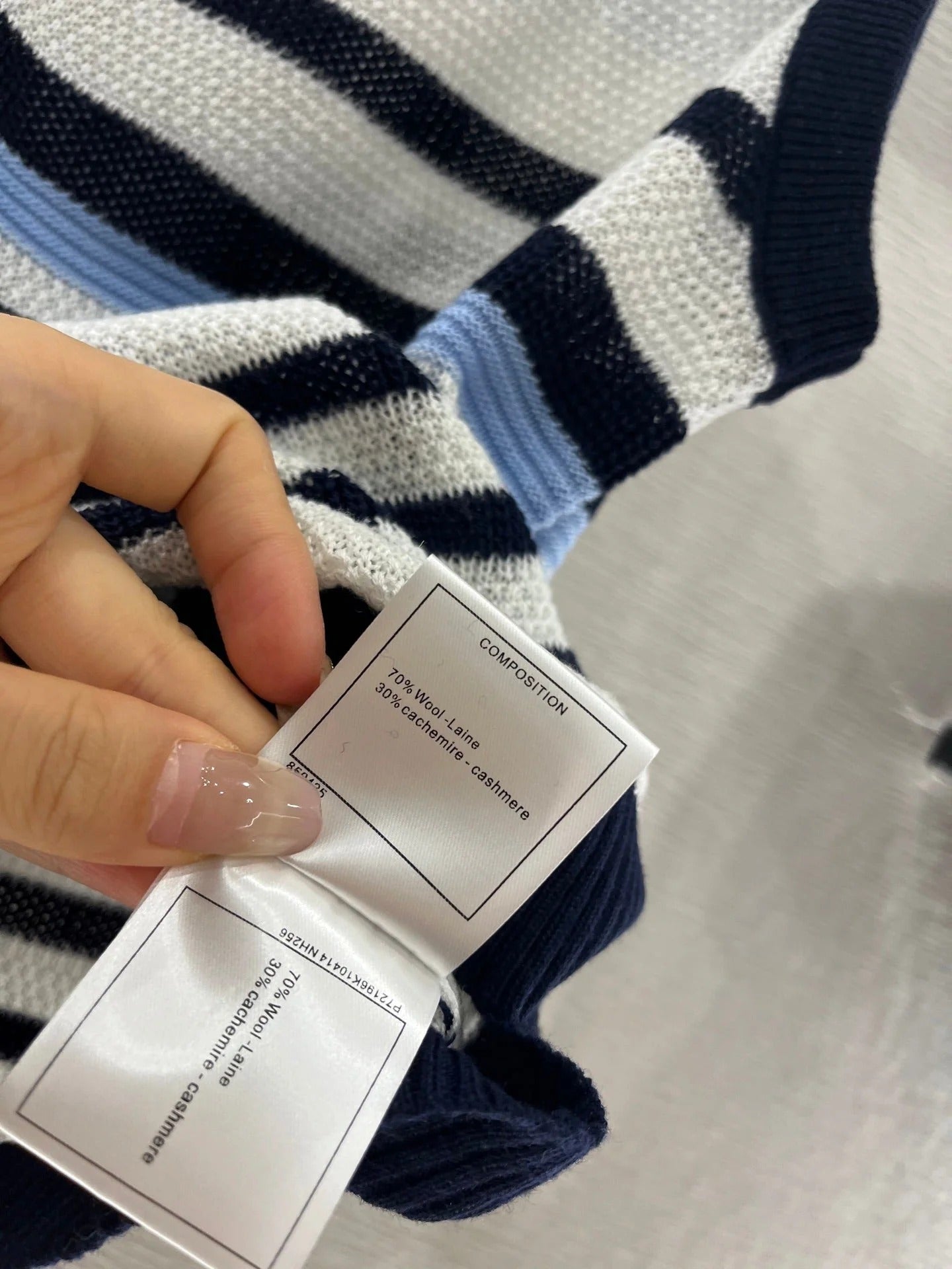 CHANEL STRIPED SLEEVELESS KNIT TOP 263401